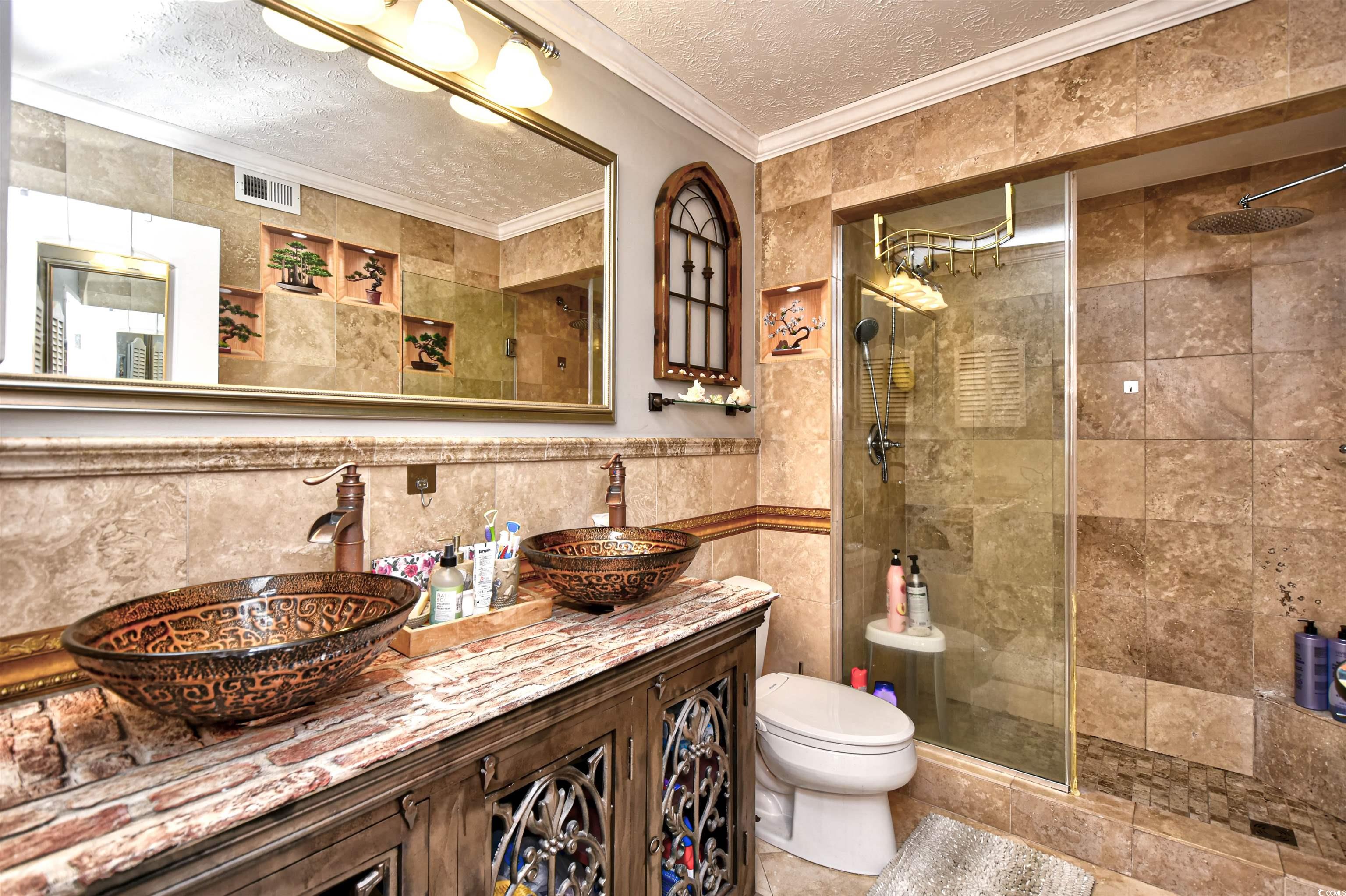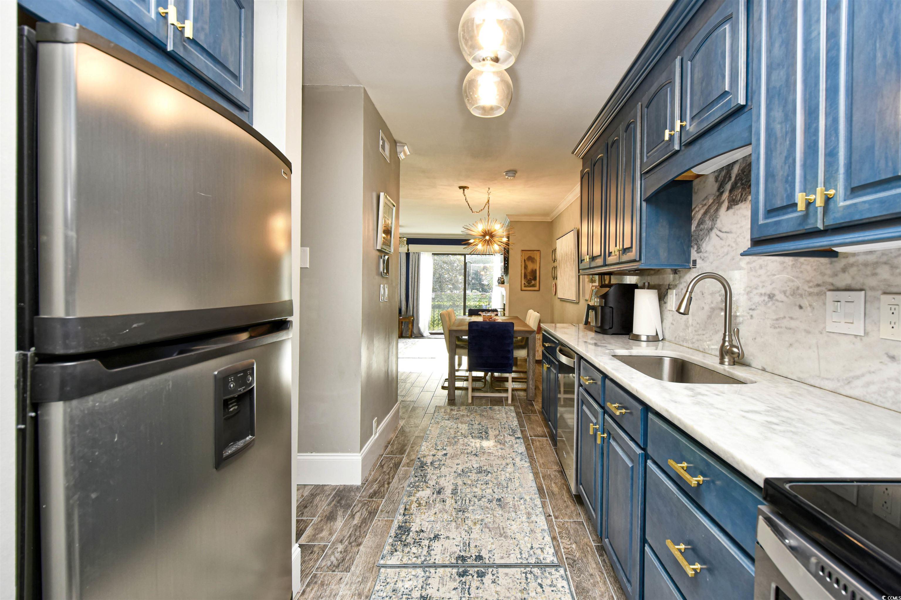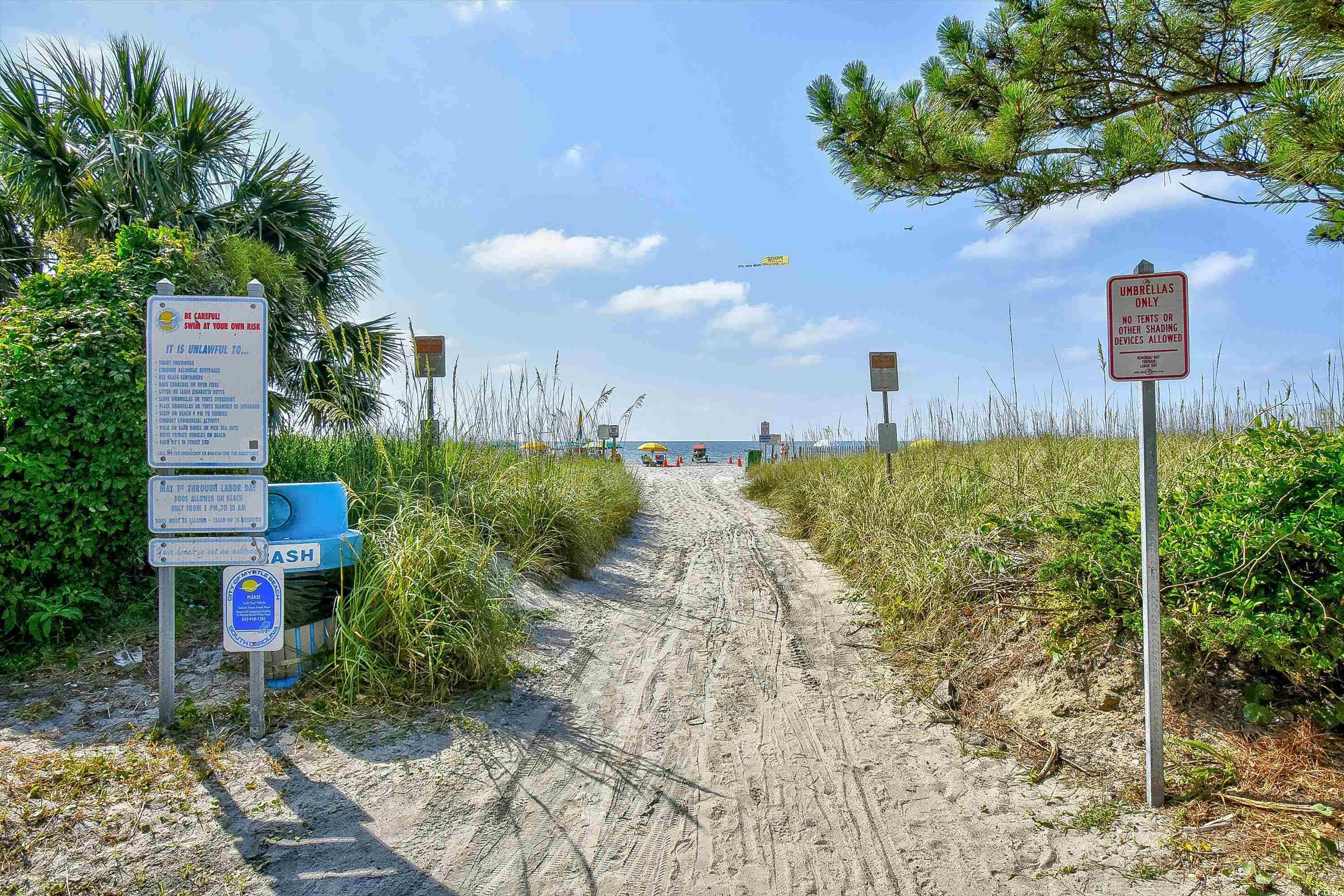 Location, location, location!!! Absolutely stunning 2 bedroom 2 and a half baths condo located only one block from the beach on the North end of Myrtle Beach. This is a rare opportunity to own a fully updated condo with water views in the exclusive section of the beach where everything is at your fingertips. You'll enjoy watching wildlife which includes otters, raccoons, herons and egrets off your balcony. Conveniently located just a short walk or golf cart ride to everything you would need. The new upgrades include all new marble/granite, new stainless steel appliances, new tile wood floors, 6" baseboards and crown molding, new light fixtures and more. The primary bedroom is massive and offers a walk-in closet and bathroom with custom shower and double sinks. The second bedroom is also very spacious and accommodates a king size bed beautifully. The guest bedroom has an attached bath and the unit is equipped with a half bath for guests located on the first level right off the living room. The laundry room has recently updated customs cabinets along with new granite/marble. The new on demand tankless hot water heater is a great feature! Do yourself a favor and schedule a tour to view this piece of Paradise!