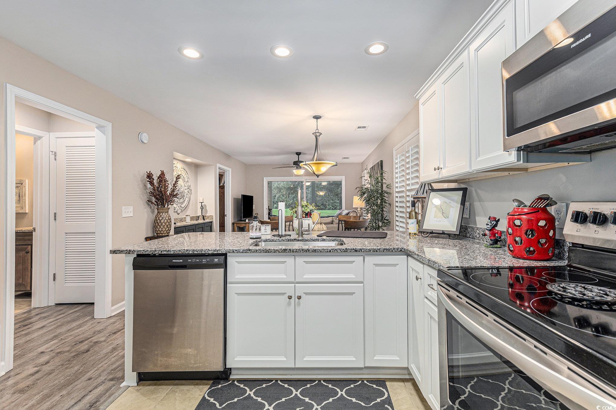 Looking for a beautiful condo on the golf course? This perfectly maintained two bedrooms unit is situated on the 9th hole of the Highlands. With the Magnolia trees providing extra shade and privacy this location may be the best in the community. There is upgraded flooring as you enter with newer kitchen cabinets and granite counter tops throughout the home. There is a tiled walk-in shower in the master bedroom and plantation blinds throughout the home. A comfortable porch and outside storage for your beach toys, three pools, putting green, pickle ball court and trash pickup make living here a must. Call myself or your agent and come see this gem!