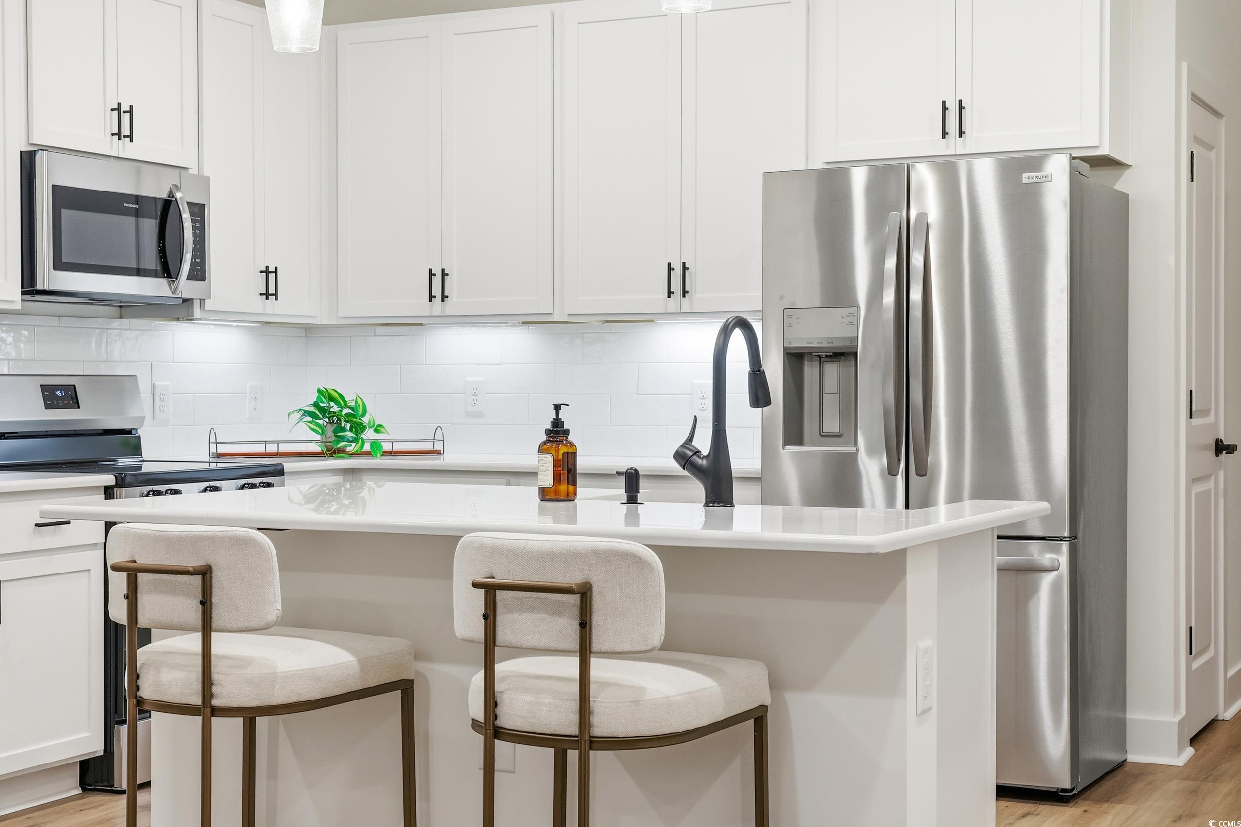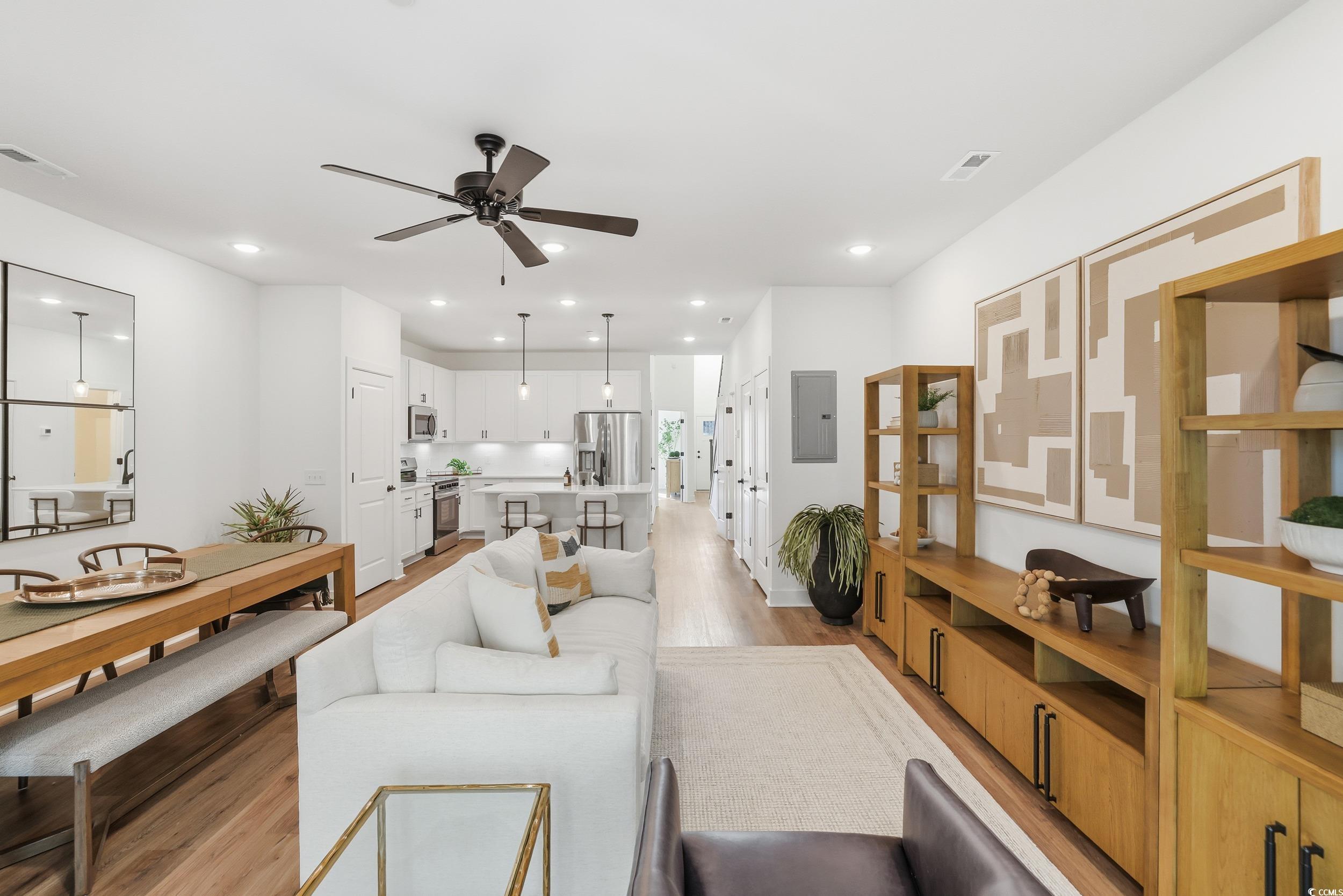 Get ready to move into your brand new and beautifully crafted townhouse-style condo offering the best of coastal living just minutes from Barefoot Landing! This newly constructed unit is a 3-bedroom, 3.5-bath home that combines thoughtful design, modern finishes, and a peaceful setting just outside the city limits for a peaceful, rural feel. The first floor features a spacious primary suite complete with a walk-in closet and an ensuite bath with dual vanity, ceramic tile flooring, and a tub/shower combo. The open-concept kitchen boasts a center island, ample counter space, a farmhouse sink, and flows effortlessly into the living and dining area, perfect for entertaining or cozy nights in. Hookups for a stacked washer/dryer adds extra practicality, while the screened-in patio and open-air extension provide perfect spots to relax and enjoy the breeze. Upstairs, you’ll find two additional bedrooms including a second ensuite with a walk-in closet another ceramic tile bathroom, a versatile loft area, a balcony overlooks the first floor, and there is a bonus storage closet to help keep everything in its place. Whether you’re searching for your forever home, a vacation getaway, or a smart investment, this new construction home delivers coastal charm, thoughtful design, and unbeatable location. Enjoy the dining, shopping, and entertainment of Barefoot Landing just minutes away then come home to peace, privacy, and plenty of space. Ask your agent about preferred lender incentives. Interior photos shown are of a professionally staged model unit and may differ from the actual property. Click the link above for the virtual tour!