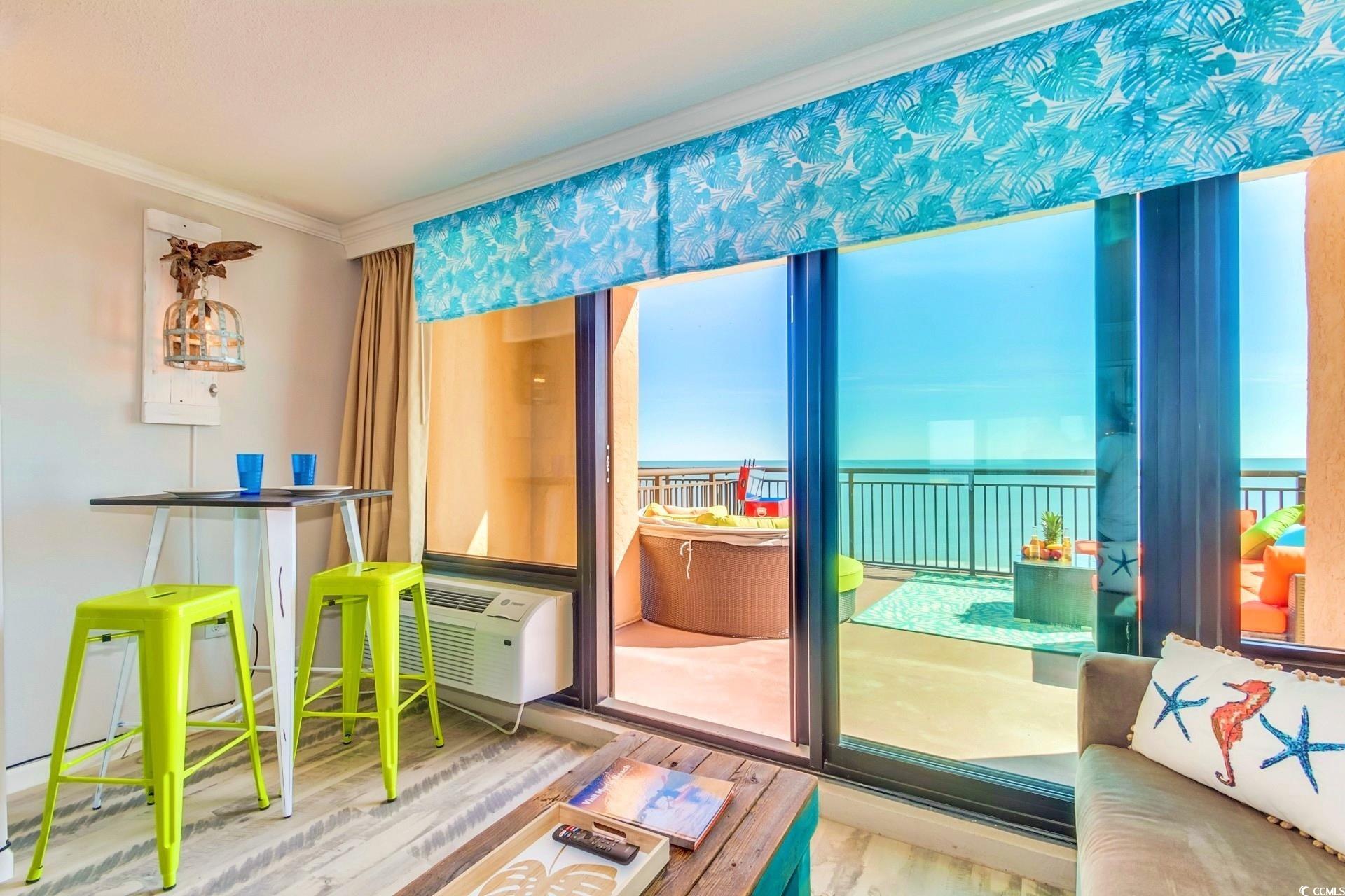 One of the rarest properties in Myrtle Beach, The 5th floor sun deck units at Caravelle are known as the holy grail of private rentals in Myrtle Beach. This units product income like no other in the area. This beautiful unit is tastefully decorated with custom tile flooring, large tv with fireplace king bed, and a sleeper sofa. The large open private balcony has a sectional sofa, swing, and a patio daybed . The unit has smooth ceilings and granite in the kitchen and bathroom. Act fast as this amazing property will go quick. The Caravelle is located on 69th Ave N in Myrtle Beach, close to everything but just a little quieter than the hustle of downtown. A multitude of water features and amenities, fitness center, arcade, ice cream shop, restaurant & bar, all located right at your Resort. Just a great price for an oceanfront condo, with some solid income potential.