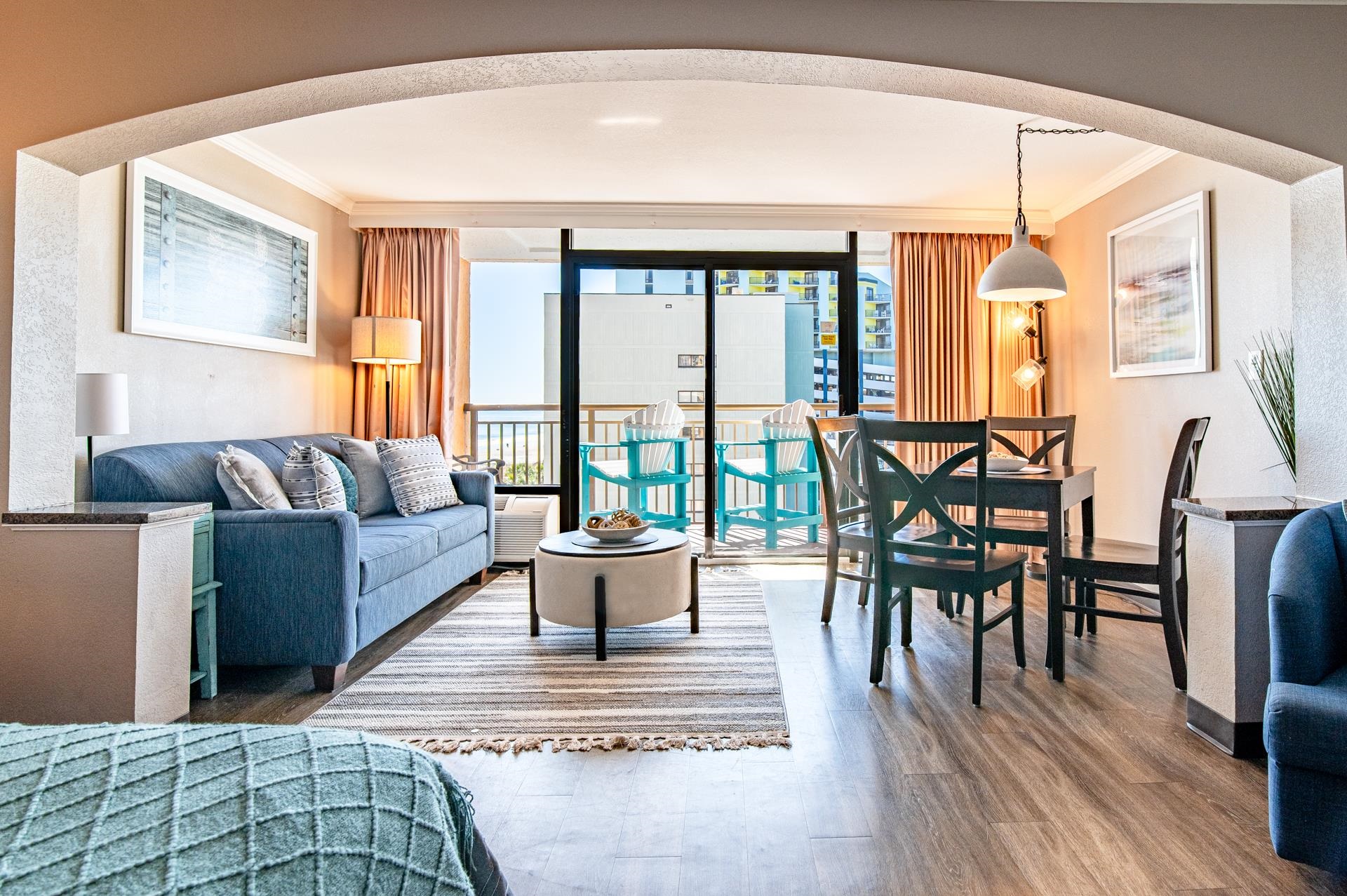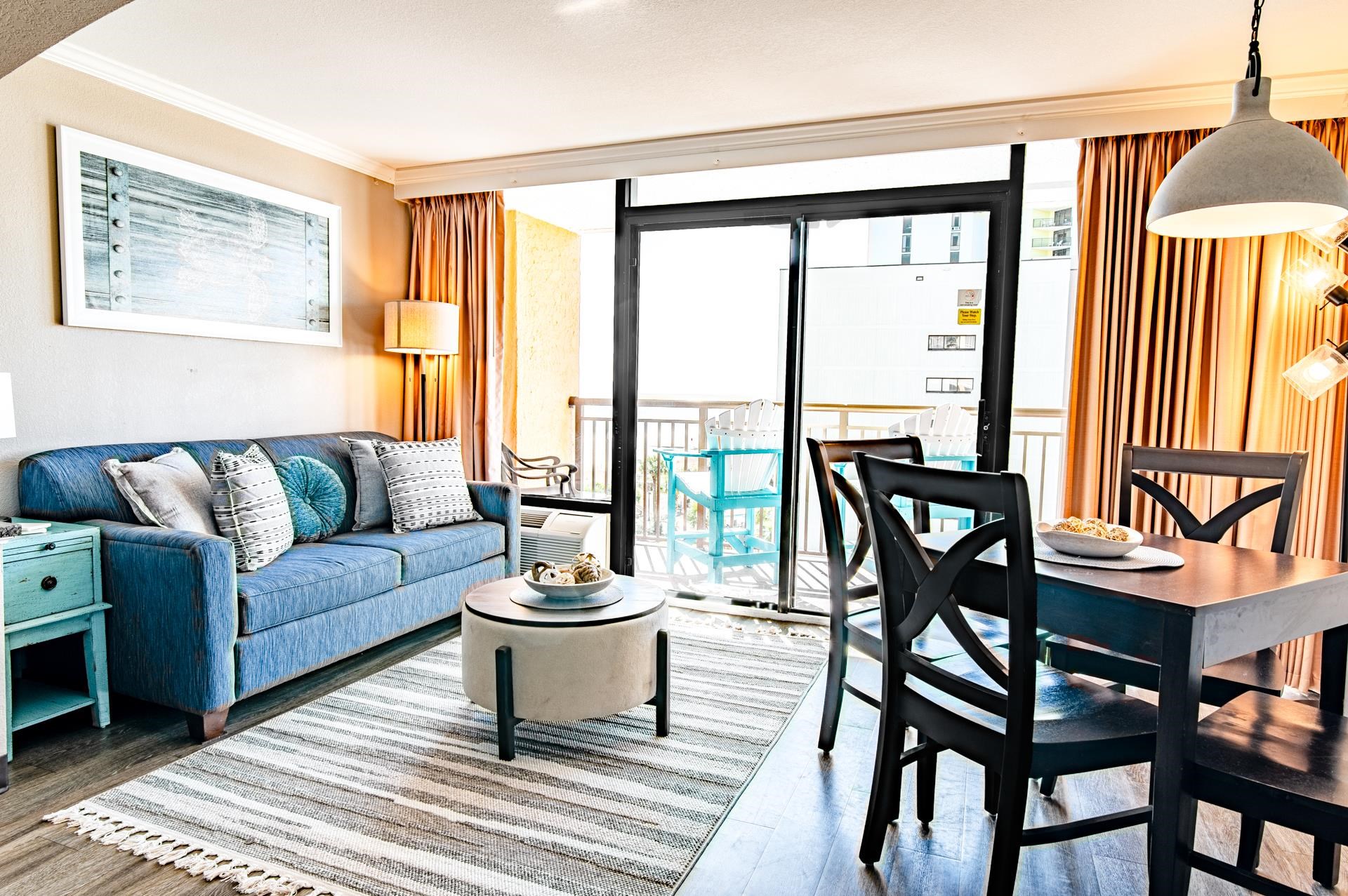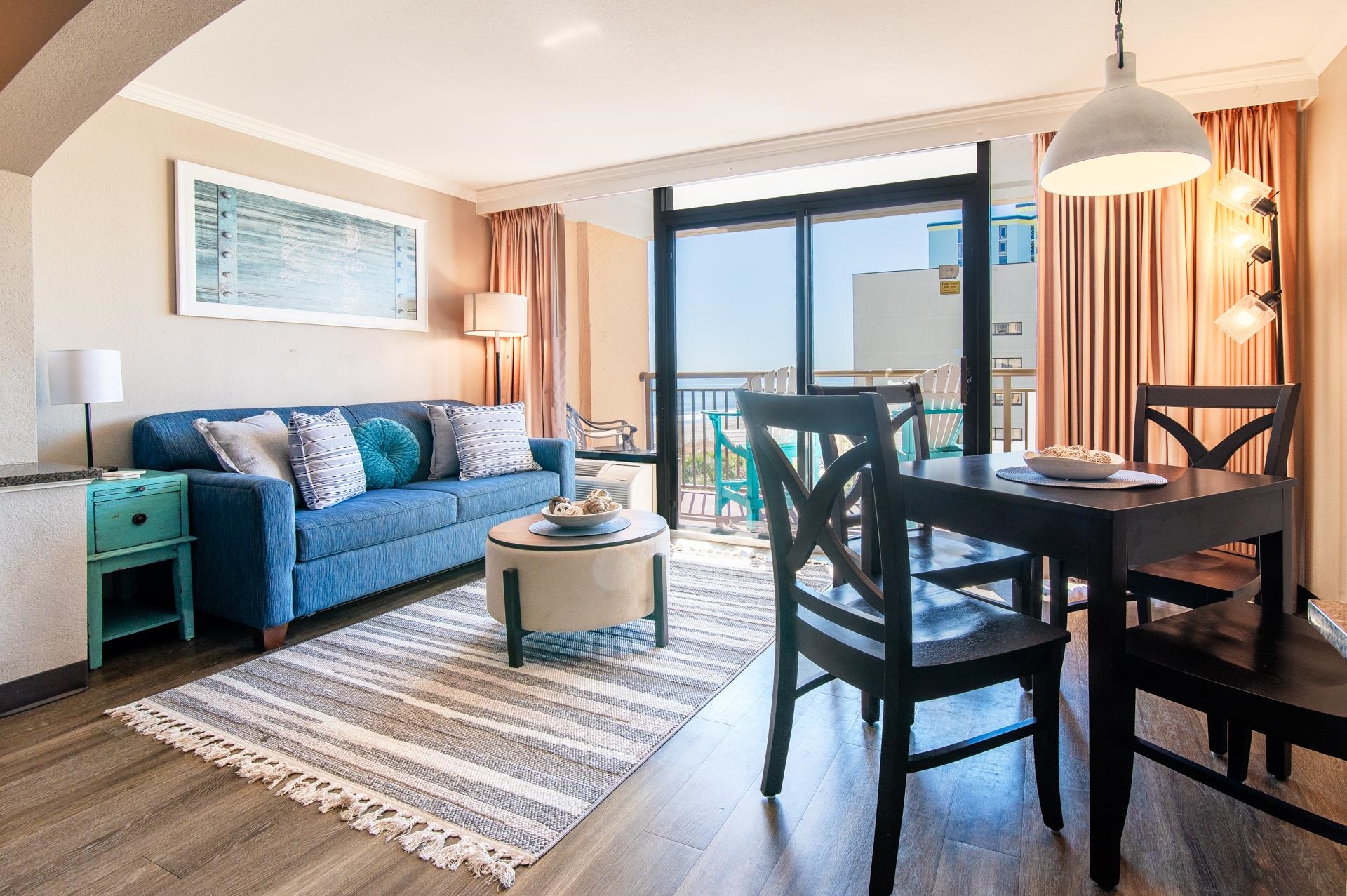 Enjoy sparkling ocean views from this magnificent Caravelle Resort efficiency unit. From the cheerful kitchen to the well-appointed bath, and complete with a comfortable living/dining area featuring sliding glass doors to a private balcony and sleeping area featuring a luxurious king-size bed, this spacious unit offers the perfect backdrop to your Myrtle Beach experience. The resort itself offers so many amenities, you may never want to leave the property! Take a dip in the indoor and outdoor pools, splash in the waterpark, or float around the lazy river. Enjoy a bite to eat in the onsite restaurant or cool off with an ice cream at the soda shop. You can even pick up a Myrtle Beach t-shirt at the resort gift shop. The seventh-floor sundeck overlooking the ocean is relaxation-ready with complimentary hammocks. This delightfully decorated condo offers easy access to the beach and is located next to all the best Myrtle Beach has to offer, including delicious eateries, a bevy of golf courses, award-winning off-Broadway shows, public fishing piers, and intriguing shopping adventures along the Grand Strand. Also conveniently located close to your everyday needs, including grocery stores, banks, post offices, medical centers, doctors’ offices, and pharmacies, this space is perfect for both a vacation getaway and longer stays. Checkout our state-of-the-art 3-D Virtual Tour.