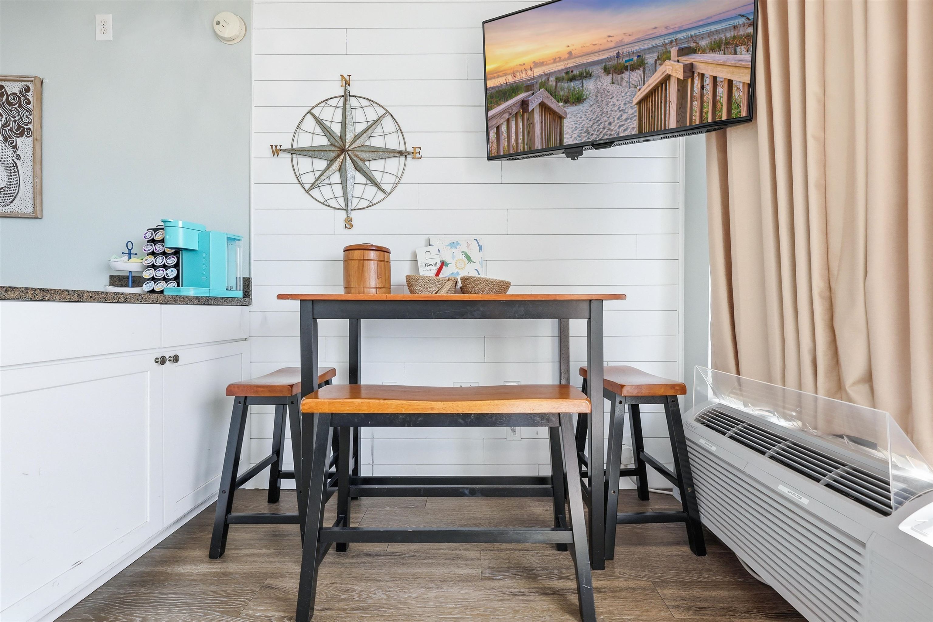 Welcome home to this gorgeous one bedroom, 1 bath, ocean view condo. This fully furnished, 9th floor unit offers everything you need, just bring your clothes and bathing suit and enjoy the indoor or outdoor pools, lazy river, or one of the multiple hot tubs. The kitchen has everything you need for dining in, or just head out to one of the many, amazing, local restaurants. Beautifully decorated, shiplap walls, granite countertops, ample closet space, easy pull down Murphy bed in the family room overlooking the expansive deck with great ocean views!!! Huge sun deck on the 7th floor overlooking the beautiful ocean! The HOA covers EVERYTHING… Water, sewer, trash, Internet, cable, Wi-Fi, building insurance, even electricity. You only need an H06 insurance policy covering your personal belongings. This unit would be great for any reason…whether a second home, primary home, short or long term rental. The Caravelle Resort is a 15 story oceanfront, high rise building offering so many wonderful amenities…including a game room, workout room, breakfast café, gift shop, lazy river, indoor pool with glass roof, outdoor pool. You don’t want to miss this one! Call today for your private showing.