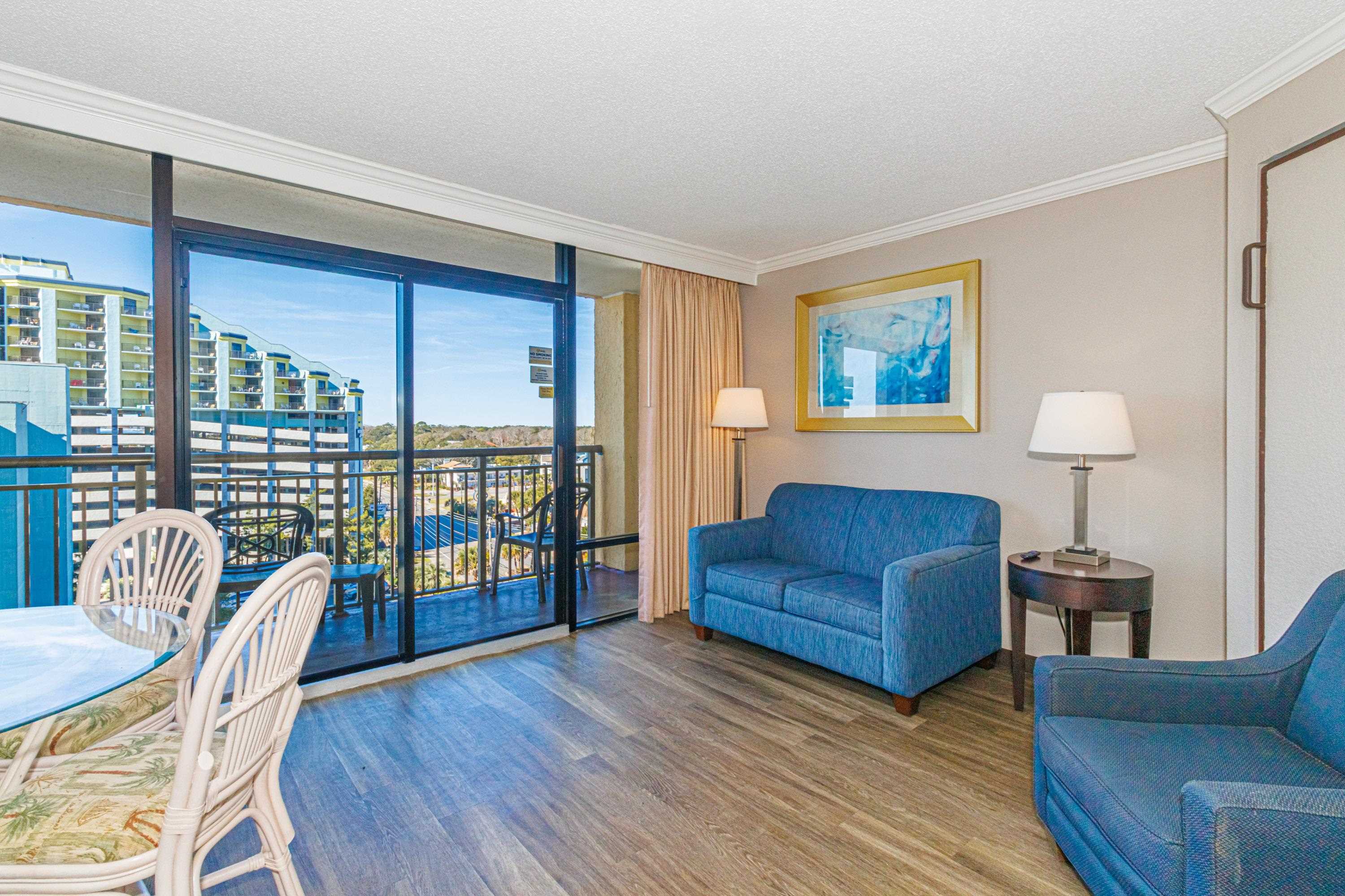 Well-priced oceanview 1BR in the popular Caravelle Resort, ideally positioned on the southern side of the building for stunning ocean and sunset views from the 8th floor. This unit is exceptionally clean, well-maintained, and completely turnkey—ready for immediate enjoyment or rental. Featuring durable LVP flooring and granite countertops in both the kitchen and bath, the layout offers a desirable separation between the private bedroom and the main living area. The open living room and kitchen flow seamlessly onto a spacious balcony, perfect for taking in the coastal views. A unique bonus is the oversized closet with direct bathroom access from the living area—allowing guests to use the bathroom without passing through the bedroom. Located on 69th Ave N in the quieter northern end of Myrtle Beach, Caravelle Resort offers an impressive lineup of amenities including indoor and outdoor pools, on-site dining, and more—all just steps from the beach. An excellent opportunity to secure a well-positioned, income-producing property just in time for the spring and summer rental season.