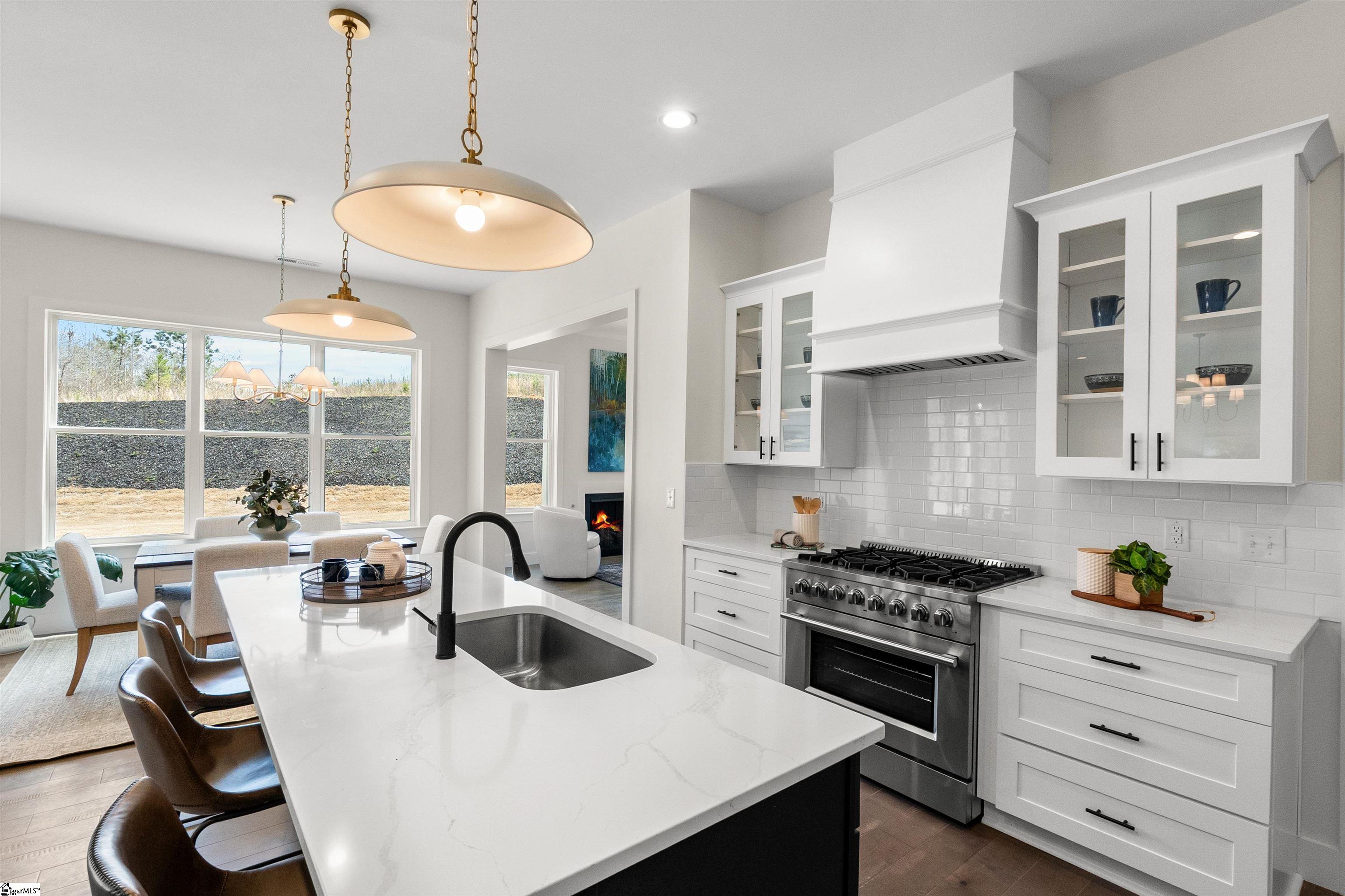 If a newly built home with privacy is your goal - - this stunning home will help you achieve it! This gorgeous over 3,600 sq. ft. transitional home sits on over 2.5 acres in a peaceful country setting off Mountain View Road. You will love the lifestyle of this open concept floorplan that is flooded with natural light. Designed with a beautiful lighting package, engineered hardwood and sanded marble floors, this home offers a warm and inviting atmosphere. Located just 15 minutes from the charming town of Travelers Rest and the Swamp Rabbit Trail, and less than 5 minutes from North Greenville University, this home provides both convenience and tranquility. Featuring four bedrooms, three and a half baths, and a spacious three-car garage, this home is designed for comfort and style. Stepping inside you are greeted to a large foyer that extends to a generously sized living and dining area. The gourmet kitchen includes stainless steel appliances, plenty of storage in the cabinetry with soft close doors and drawers and an additional walk-in butler’s pantry. You will love entertaining with family and friends in the keeping room with fireplace just off the kitchen. The primary bedroom on the first floor is an at-home oasis. You will feel you have stepped into a spa when entering the primary bath. The oversized counter space feels so luxurious! The closet is large to keep your clothes neat and tidy. Upstairs is a loft area and additional nook that is perfect for relaxing. The additional three bedrooms are generously sized. The “movie room” is a great spot to spend time when the day winds down. Outside there is an oversized covered back porch with vaulted wood ceiling, perfect for outdoor entertaining and enjoying the private back yard waiting for you to bring your creativity to the space.
