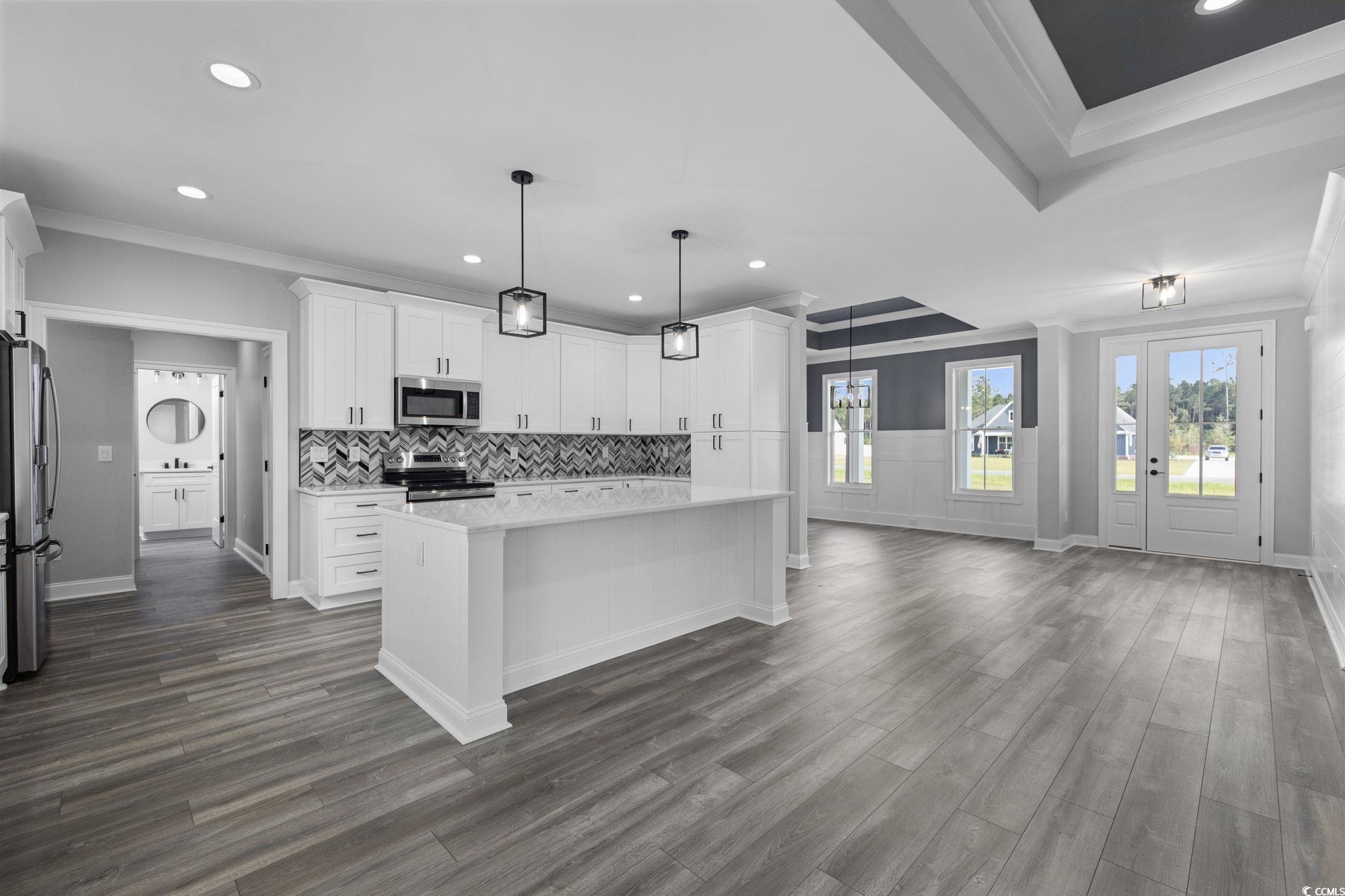 Looking for a new home without the wait? Come get away from the traffic and crowds. This home is located approximately 12 miles from downtown Conway. Immaculate - 4 bedroom, 2 1/2 bath modern farmhouse style home available. You will be taken back at the gorgeous exterior, cozy front porch and 3-car side load garage. Inside, a desired open floor plan is present with tons of natural light pouring in through the windows and with back door leading to the screened back porch overlooking pond and enormous backyard. The kitchen is a chef's dream with an abundance of cabinet and counter space including a large work island and quartz countertops. A split bedroom plan is provided, and the master suite is your own personal oasis. It boasts tray ceiling with a beautiful pond view including a fountain. Master bath has dual sinks, a tile shower and his and her walk-in closets Home has a huge yard with sod and is irrigated.