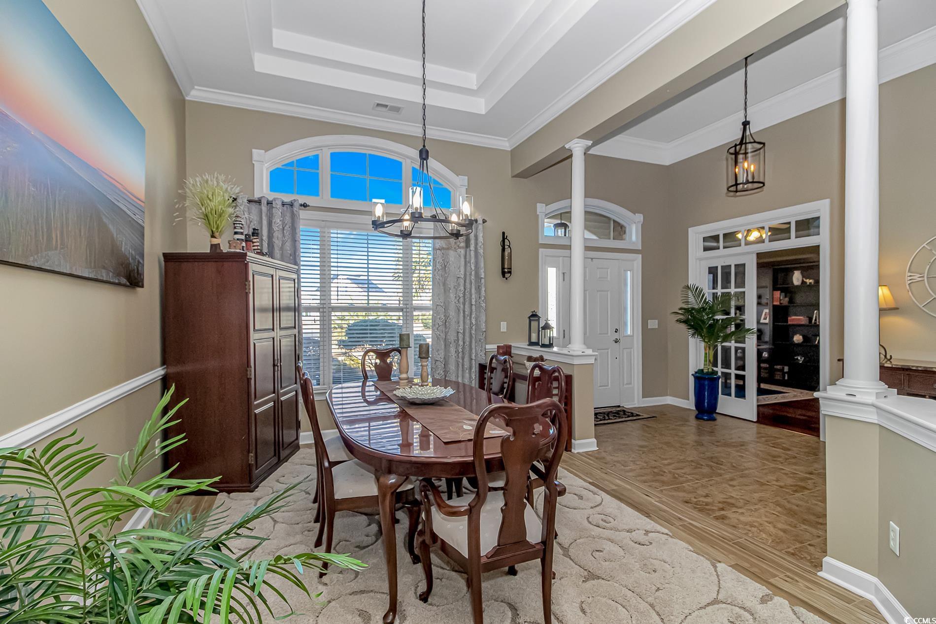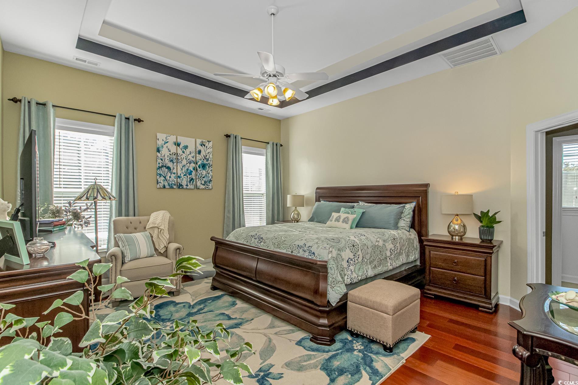 If you've been looking for a true luxury home in a highly desire golf course community, look no further. This stunning property is located in the highly desired Meadowlands Golf Course. Sitting on a private water lot in a cul-de-sac, this home leaves no stone unturned. When you enter the home, you'll immediately notice the high ceilings and open concept. To your right, there is a formal dining area with tray ceiling. To the left, there is a private office with beautiful wood flooring and tray ceiling. This office has a built in Murphy Bed and does have a closet. So this could easily be a 5th bedroom if you need additional bedroom space. What is great about this home, is that every single bedroom has its own private bathroom and there is also a half bath for guests. There are two bedrooms on the left side of the home and the Primary Bedroom is on the right side of the home, split off from the others for privacy. The living room is huge and the high ceilings make it feel even larger. Each area of the home has its own zoned air conditioning, so there are 4 thermostats throughout the home for temperature customization. Off the living room, there is a huge Carolina Room for more entertaining space. The Primary Bedroom is also massive and has a tray ceiling and gorgeous wood floors. The Primary Bathroom has dual sinks with granite counters, a big walk in closet, a secondary closet, tile floors and a custom tile shower. Off of the Carolina Room, there is an enclosed patio overlooking the water. The patio has an EZ Breeze system installed so you can keep it warm or open the windows and let the air in through the screens. The kitchen is located off the living area and has a breakfast bar, stainless steel appliances, granite counters, pantry, eat in kitchen area and plenty of cabinet and counter space. There is a laundry room off of the kitchen that leads out to the garage. The 4th bedroom is upstairs and has its own bathroom as well as tons of storage. The back yard has multiple patios and one directly overlooks the water. This is a high end golf course community and the HOA fees are very reasonable for all that's included. Tons of amenities out here. Don't miss out on this one, schedule a showing today!!!