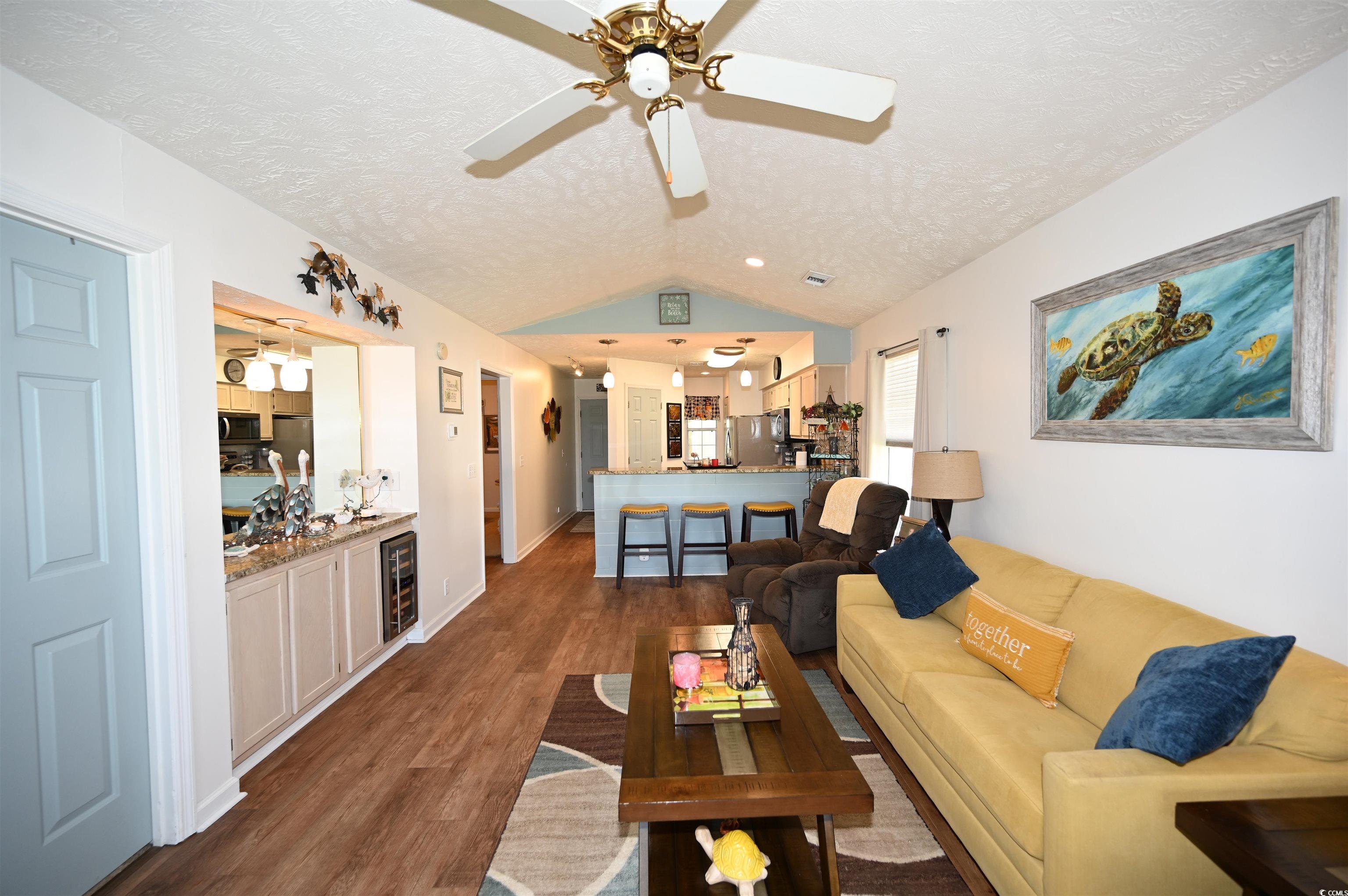 This stunning END UNIT boasts beautiful views of the Aberdeen Golf Course. A charming screened porch to enjoy the serene surroundings. This condo offers a range of impressive features that include granite countertops, wine cooler bar area in the living room, new LVP flooring, and freshly painted interior. This complex also has THREE POOLS and a TENNIS COURT! Conveniently located just 15 minutes from the beach, shops, restaurants, and entertainment of North Myrtle Beach, SC, this condo offers both comfort and convenience. Buyer is responsible for verifying all measurements.