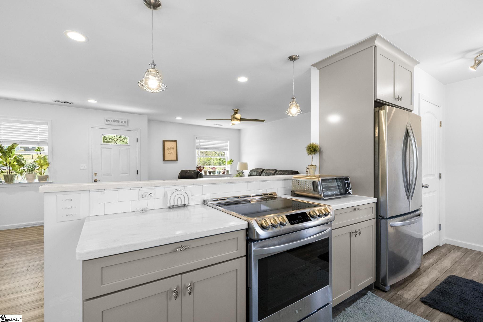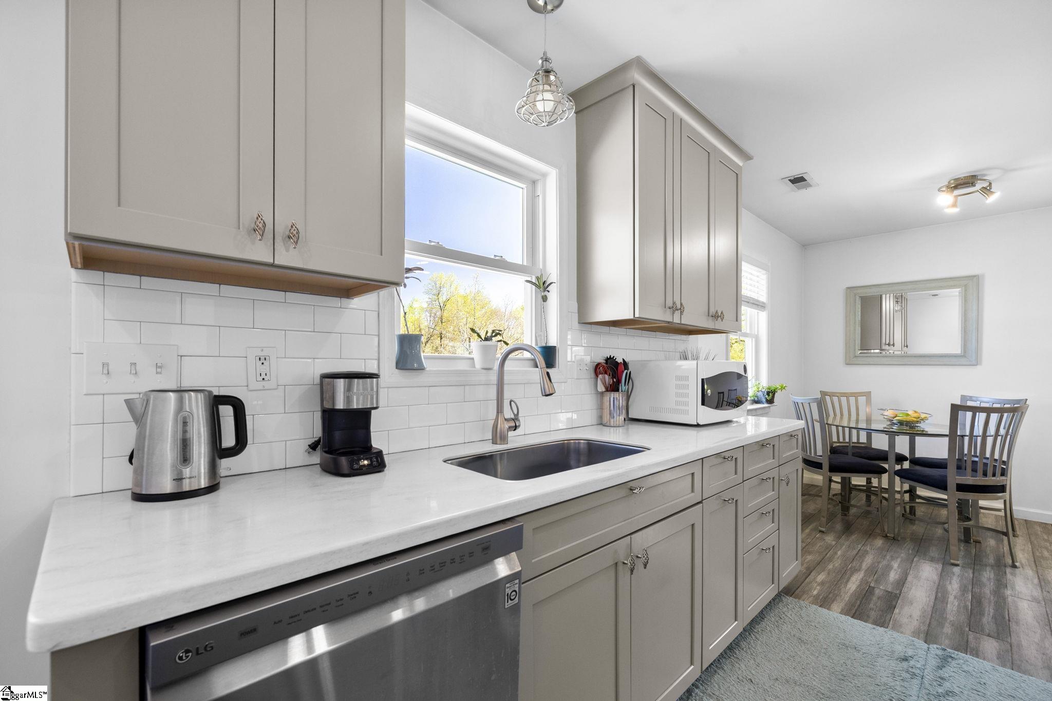 Updated home in Travelers Rest on over one acre lot. Country living at its best! Architectural roof, thermal windows, stainless steel appliances, updated gray cabinets, corian countertops, tile backsplash, granite counters in bathroom, new front and rear exterior doors, brushed nickel ceiling fans and matching hardware throughout. Real hardwood floors! Bathroom includes a soaker tub and a separate shower. Travelers Rest has so much to offer and a great walkable downtown area. Plenty of restaurants, shopping, and the Swamp Rabbit trail!