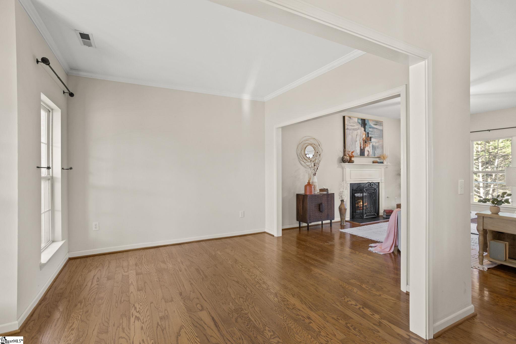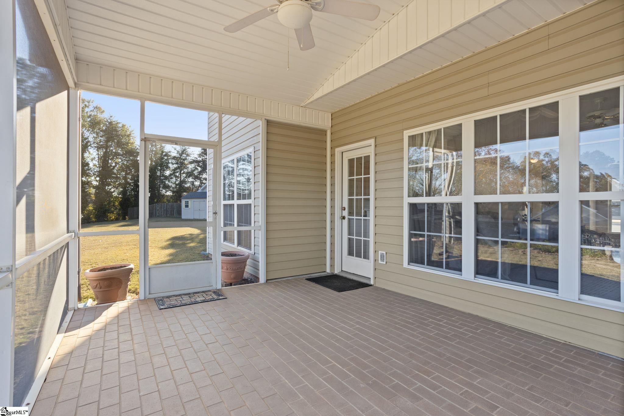 This beautiful, meticulously maintained home in Simpsonville offers unparalleled convenience with quick access to I-385 and Downtown Greenville. Nestled on a quiet cul-de-sac in the established Morning Mist subdivision, this stunning residence features four bedrooms and two and a half baths. Upon arriving, you are greeted by elegant columns outside and high ceilings, and beautiful finishes inside that set the stage for comfortable living and effortless entertaining. The main level flows seamlessly, featuring a chef-ready kitchen with stainless steel appliances and a cozy breakfast nook that overlooks the inviting family room with a welcoming fireplace. A formal dining area and a separate living room provide ample space for hosting. Step outside to enjoy the serene screened-in paver patio, perfect for relaxing while overlooking the private backyard. Upstairs, the spacious primary bedroom awaits, complete with a private ensuite bathroom. Two additional generously sized bedrooms and a full bath complete the sleeping quarters. A versatile room situated over the garage offers excellent potential as a recreation room, home office, or even a fourth bedroom. Ready for you to move in, this house is waiting to become your new home.