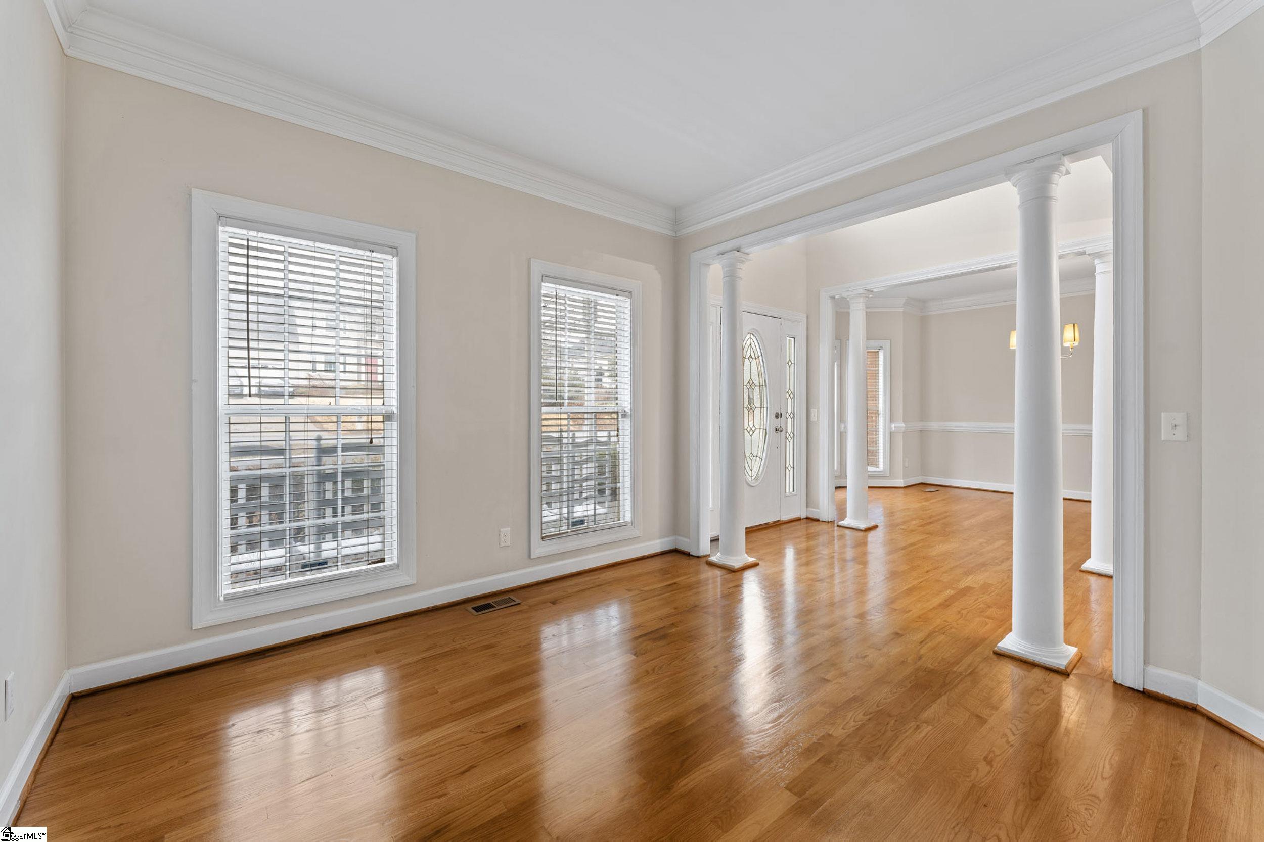 Move-in ready 4 bedroom, 2.5 bath home located on a quiet cul-de-sac lot with a large, private backyard and Mauldin High School within walking distance. This beautifully maintained home features refinished hardwood floors throughout the main level, offering both style and durability. The main floor includes a flexible front living space perfect for a home office, formal living room, or sitting area, along with a separate formal dining room. The spacious family room with fireplace opens to the kitchen, creating an ideal open-concept layout for entertaining and everyday living. The kitchen features an eat-in breakfast area and overlooks the living room, providing excellent flow and functionality. The primary bedroom is conveniently located on the main level, showcasing tray ceilings and abundant natural light. A half bath and laundry room complete the main floor. Upstairs, you’ll find three additional bedrooms and a full bathroom with double vanity. This home offers exceptional storage, including large walk-in closets and central vacuum. Enjoy outdoor living in the private backyard, all tucked away on a peaceful cul-de-sac, while still being close to schools, shopping, and dining. This home offers the perfect combination of space, functionality, and location a must-see!