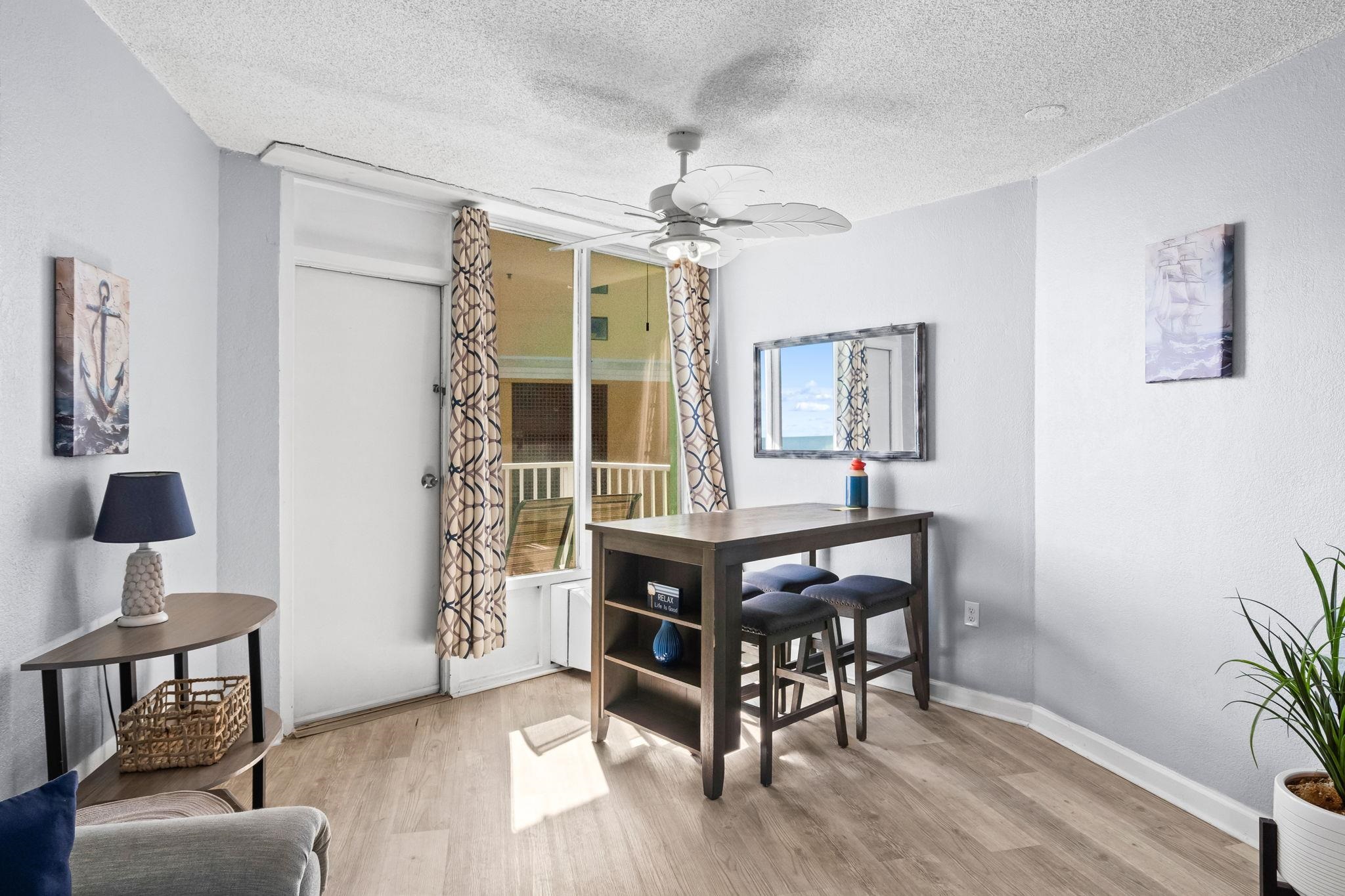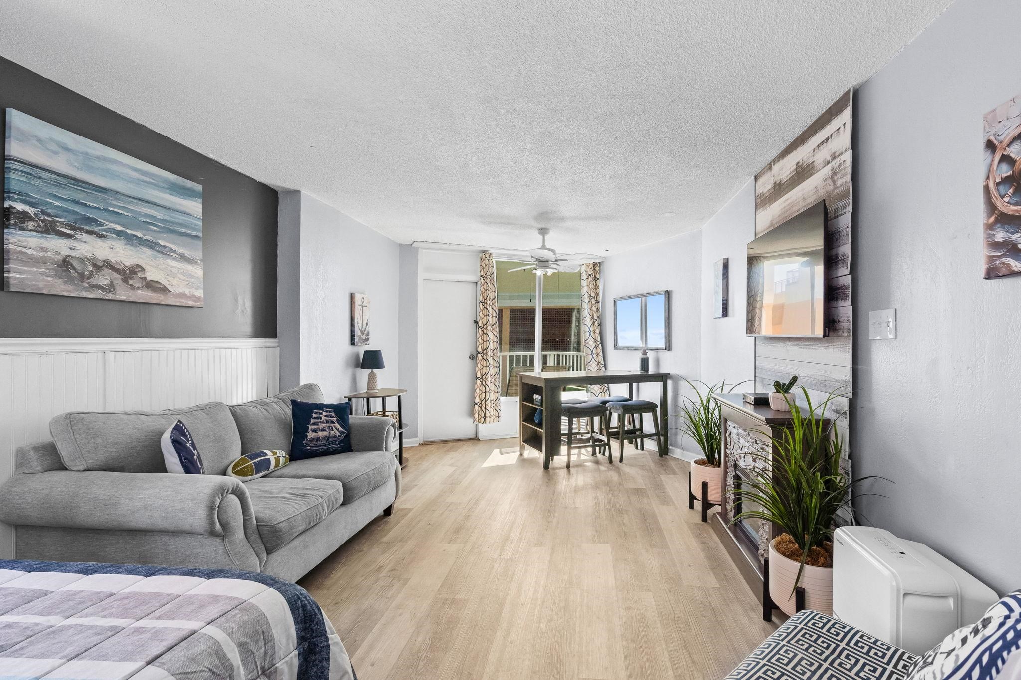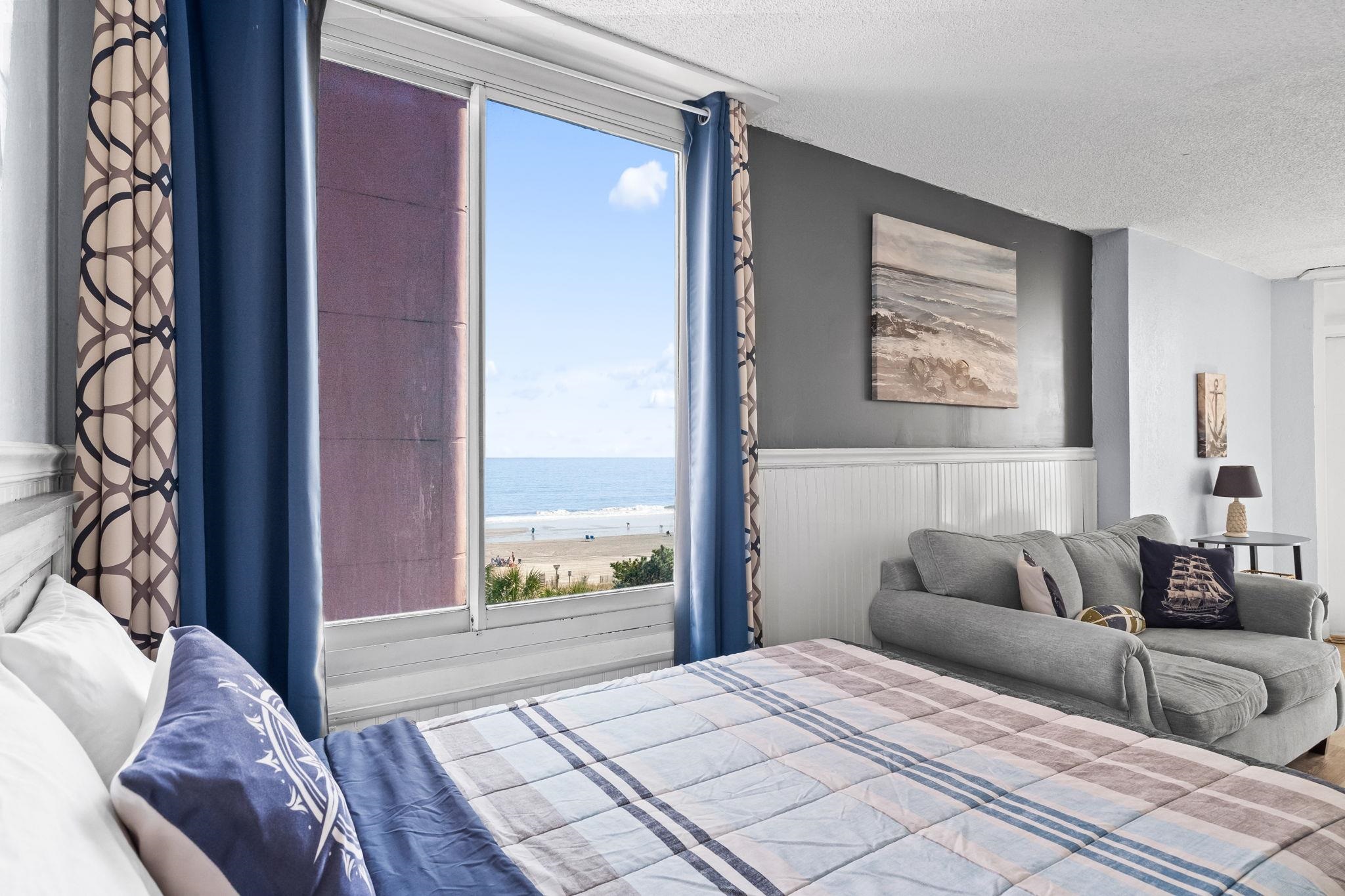 Wake up to beautiful ocean views from your bedroom, living room, and private balcony at Caravelle Tower, where beach living and amenities come together. Enjoy morning coffee while listening to the waves or unwind in the evening with the ocean breeze just steps from the shoreline. Inside, the bright and comfortable layout offers a relaxed coastal feel with space designed to accommodate guests. The sleeping area features two beds and large windows that bring in natural light while showcasing views toward the ocean. Neutral coastal tones and easy-care flooring create an inviting atmosphere that works well for both personal beach getaways and vacation rental use. The bathroom includes a convenient double vanity along with a tub and shower combination, allowing multiple guests to get ready with ease after a day at the beach. Furnished. Caravelle Tower offers an indoor/outdoor pool.Whether you’re looking for the perfect second home by the beach or a rental property, this is a must-see unit. HOA includes building insurance and all utilities! Pet friendly, ask for details. Building has welcoming lobby and on-site laundry room. Enjoy direct and convenient access to everything the Grand Strand has to offer, from pristine beaches to vibrant local attractions and a diverse range of dining and entertainment options. HOA information has been provided to the best of our ability. All information should be verified and approved by the buyer. Square footage is approximate and not guaranteed. Buyer is responsible for verification.