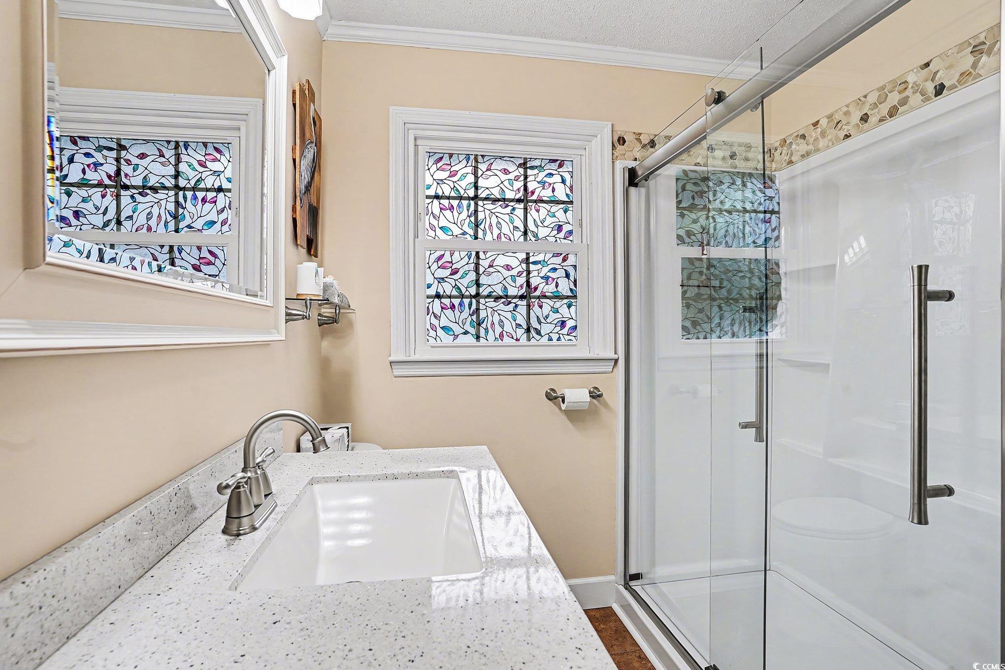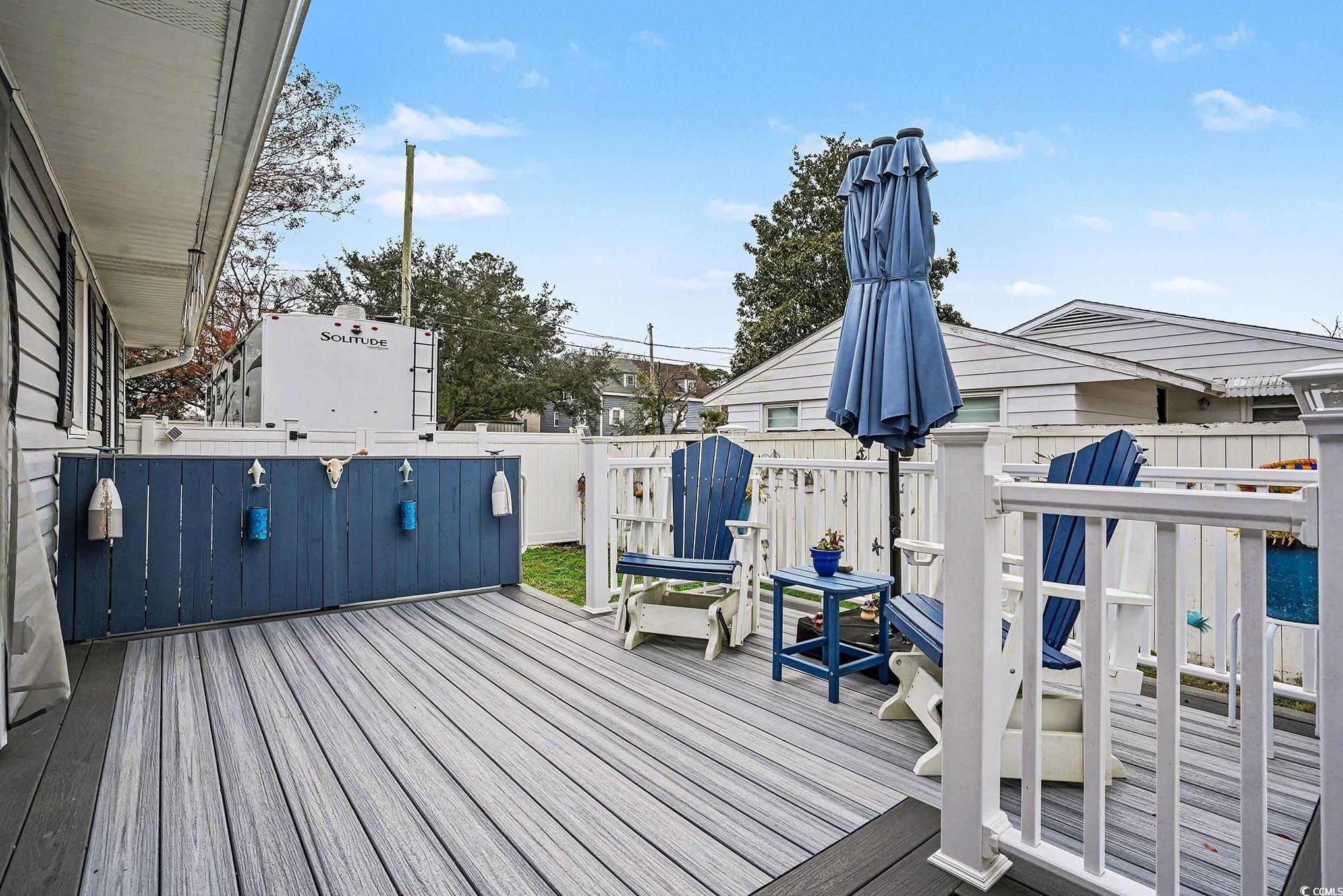 This spacious, beautiful 3-bedroom, 2-bath home sits on a corner lot with no HOA, offering freedom and flexibility just a few short blocks from the beach in the heart of the Grand Strand. Highlights include a privacy-fenced backyard, custom landscaping, an oversized driveway ideal for RV or boat parking with full electric and sewer hookups, and a welcoming living room with a wood-burning fireplace. Additional features supply excellent value with all appliances under two years old, fully replaced water pipes, a Rheem tankless water heater less than one year old, detached storage sheds, air-conditioned storage, and a covered space for your golf cart. This terrific home makes an excellent primary residence, investment property, or vacation getaway, with easy golf-cart access to the beach and close proximity to shopping, dining, and entertainment.