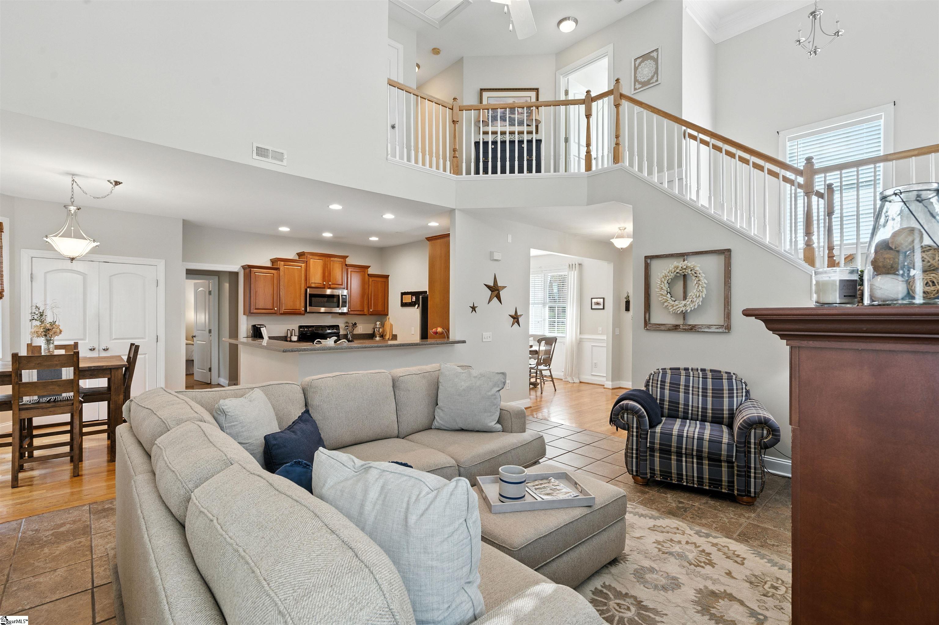 New price on this wonderful home in the community of Chestnut Hills Plantation in Greer. All homes were custom built. Home has been beautifully maintained by current owner. Great curb appeal and a private back yard that contains screened porch, deck and a wooden swing in the yard. Homes main level features two story foyer, dining Room, great room with fireplace and volume ceilings, kitchen with panty and breakfast area. Main level also includes a guest bedroom and full bath. Upper level offers expansive master bedroom with sitting area that could be used for home office or exercise. The adjoining master bath features a separate shower, double sinks and a soaking tub. There are two additional bedrooms, a hall bath, and laundry located on the second level. The garage has built in storage for containers, bikes and tools. Garage floor features a rubberized mat covering the floor. Add this home with its many features to YOUR list of MUST see.