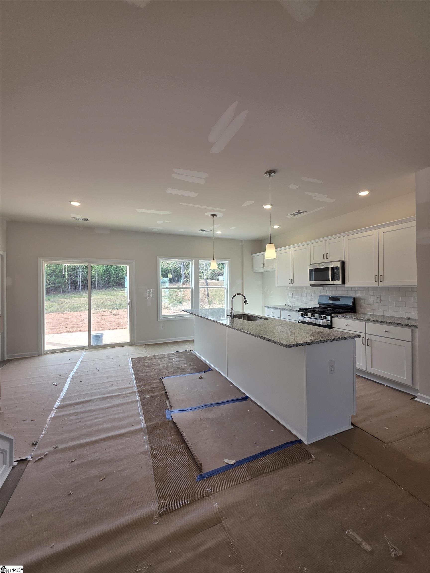 READY IN NOVEMBER! This home will impress you from the moment you see its modern white vinyl exterior with blue accents. You can easily envision yourself sitting on the large front porch. Upon entering, you will find a spacious family room that is perfect for entertaining family and friends. The upgraded kitchen features stainless steel gas appliances, shaker-style white cabinetry, and granite countertops. At the back of the home, there is a versatile flex room that can serve as a home office or playroom. The windows allow for great natural light and offer glimpses of the wooded backyard, which is over half an acre. Upstairs, there is plenty of space to spread out, with a spacious loft ideal for movie nights and three secondary bedrooms that provide ample storage. The primary suite is equally impressive, boasting plenty of closet space, quartz countertops with dual sinks, and a five-foot shower. Come see this wonderful home today in Fairview Falls!