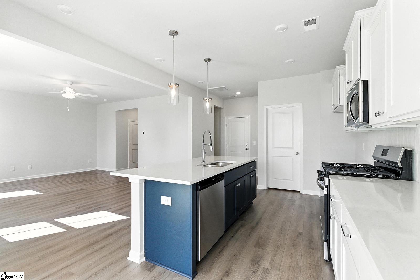 MAJOR INVENTORY SALE!! A beautiful semi-custom home, in a peaceful neighborhood with views of trees, rolling hills, and MOUNTAIN VIEWS. Each home is hand-designed and this one is exceptional. Nestled in Boiling Springs, it boasts quick and convenient access to all that Boiling Springs and Spartanburg have to experience! The two-story foyer sets a grand tone as you come inside. Luxury vinyl plank flooring flows throughout the first floor, offering durability for kids, pets, and hosting gatherings. Here, you will have a beautiful kitchen, with luxurious features such as staggered cabinets, stainless steel appliances, a gas range, pendant lights over the large island, and quartz countertops. Real hardwood stairs lead you to the second floor, where there are three bedrooms, a loft, and a laundry room, not closet. The primary suite offers a lovely trey ceiling, spacious double vanity and walk-in tile shower. Outdoors, you have a generous patio with space for barbecuing and hosting, and a peaceful view with gentle slope and trees. Privacy and luxury are yours at Landmark.