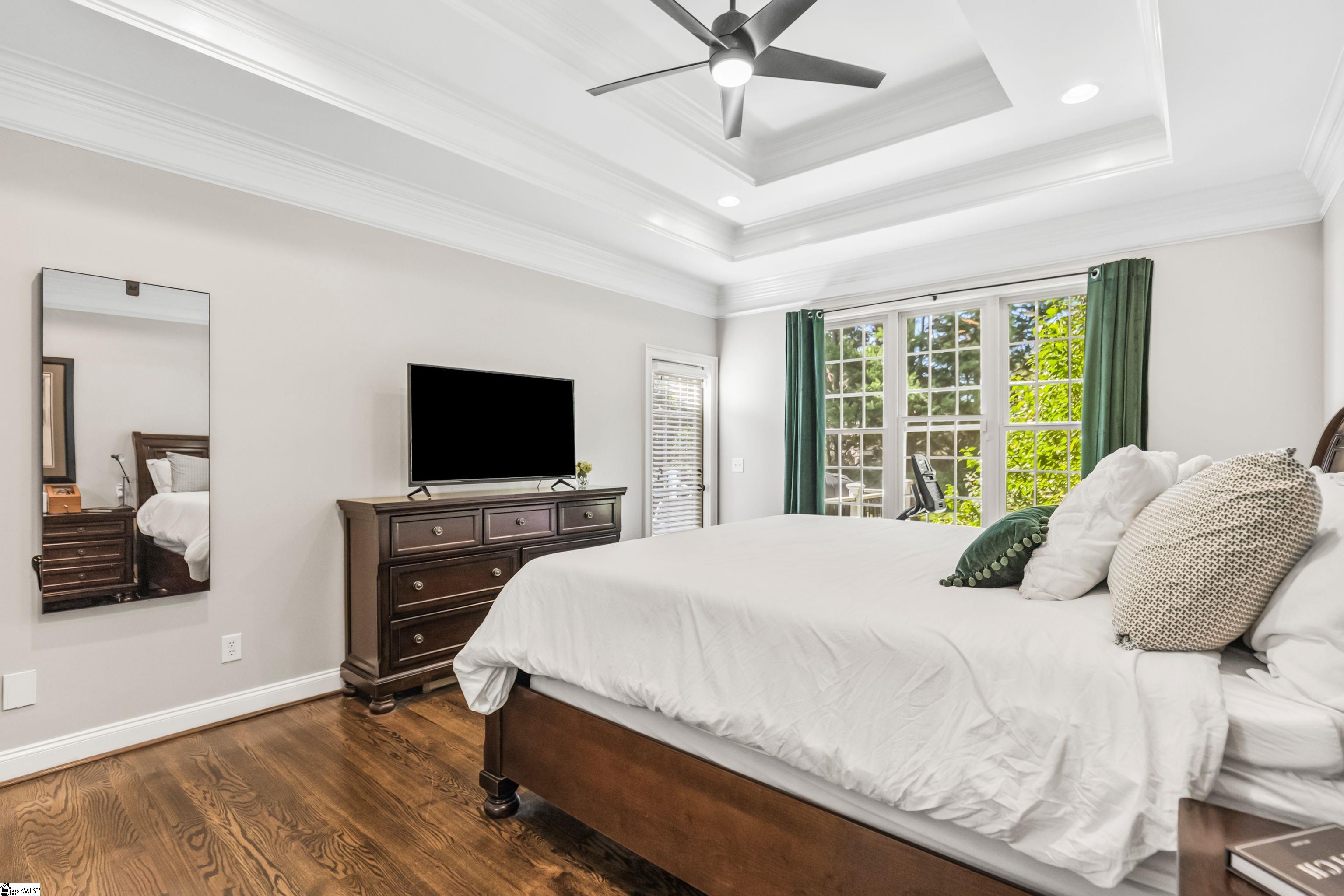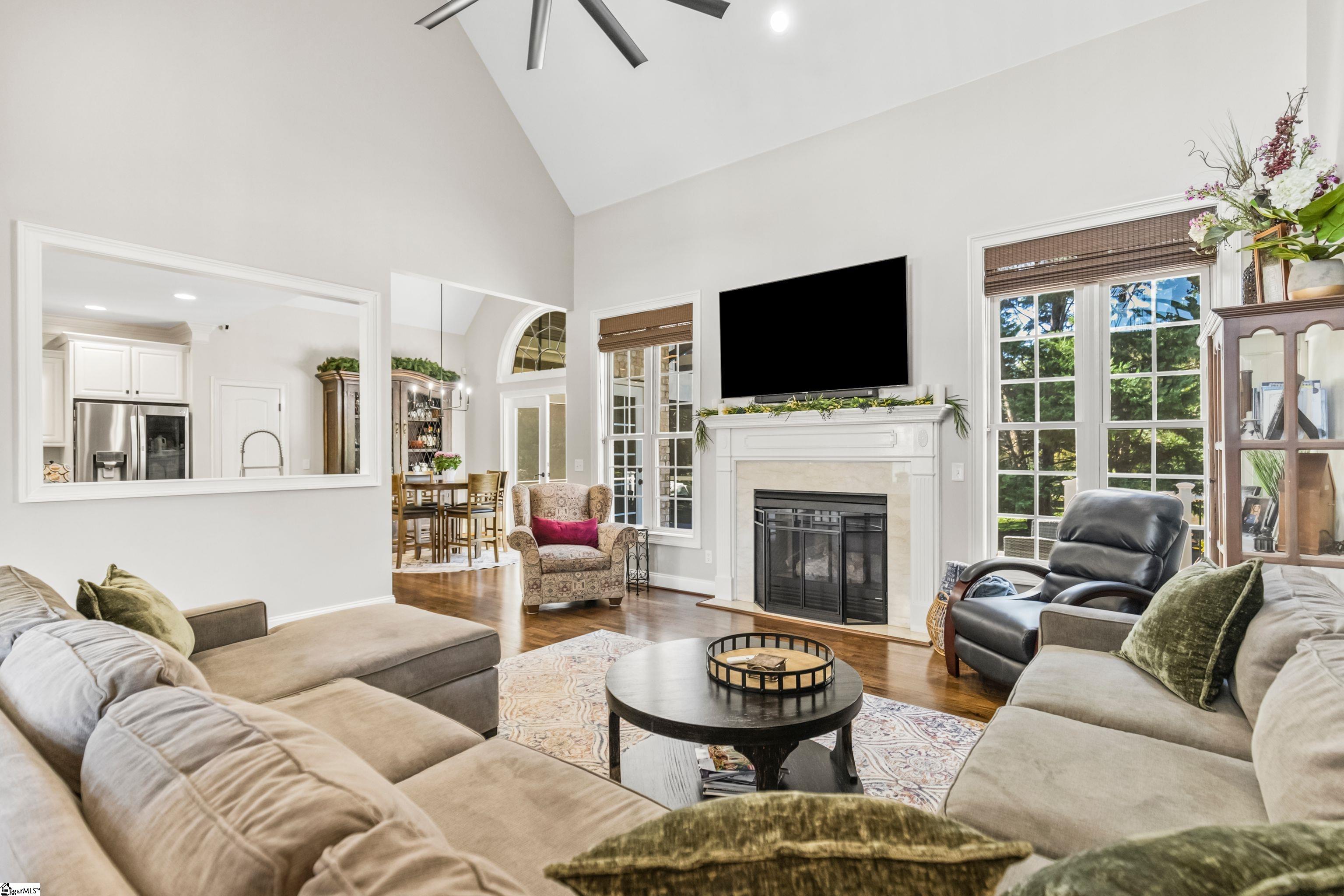 703 Carolina Bay Ct is one of those homes that simply has it all — space, upgrades, style, and access to rare community features that turn every day into a staycation. Located on the back of a quiet cul-de-sac in one of Simpsonville’s most desirable communities this all-brick, turn key, home offers 4 bedrooms, 3 full bathrooms, an impressive screened-in porch, and exceptional upgrades inside and out. Step through the custom 10’ front door and into the 2 story foyer and you’ll immediately feel the quality. From the beautifully refinished gleaming hardwood floors, tall ceilings, extensive crown molding, fresh interior paint, open-concept floor plan, created by removing a wall in the formal dining room and the kitchen, this home is move-in ready and tastefully done. The formal dining space features chair rails, wainscoting, tray ceiling and 3 new Anderson windows that allow the natural sunlight to pour in. The spacious kitchen provides all new stainless steel appliances, 4-burner gas stove, beautiful granite countertops with a convenient layout that flows right into the 2 story great room, complete with tall windows flanking a gas log fireplace and new remote controlled ceiling fan. Let’s step outside, through the new French doors, to discover the incredible 11x13 screened-in porch with wood look tile floor, vaulted bead board ceiling and gabled roof. Then head toward the custom built Trex deck with plenty of room to entertain, plus extensive landscaping that frames it all perfectly. The main-level primary suite includes a triple tray ceiling, recessed lights, private access to the back deck, a remodeled en suite full bathroom, with a vaulted ceiling, deep soaker tub, tile shower, glass door, updated tile flooring, and a spacious walk-in closet with a custom storage system. Another fantastic feature of this wonderful floor plan is a second bedroom and full bathroom on the main level that would be perfect for an office or for guests. The laundry room, complete with storage cabinets and utility sink, is also located conveniently on the first floor. Let's head upstairs via the impressive wooden staircase boasting iron rod balusters, where we will discover more beautiful hardwoods leading us to bedroom 3 and 4, both with spacious closets and updated remote controlled ceiling fans. Bedroom 4 even comes with an en suite full bathroom. Next you will find the (18x31) rec room which provides enough space for infinite possibilities and additional storage. Other notable features include are new roof, gutters & guards (2023) new Anderson windows on the front of the home, new carpet in bedroom 3 and the rec room, updated light fixtures and window treatments throughout , new water heater (2020), new garage door opener (2021), new smoke/CO2 detectors, automatic blower fan on the fireplace, dehumidifier with a built-in humidistat in the crawl space, oversized 2.5-car garage with ceiling storage racks, garage sink, central vacuum system, and fiber optics internet. The HOA amenities include a community pool and clubhouse, 3 private lakes, stocked with fish, that are exclusive to this community and scenic walking trails providing a peaceful outdoor spaces to unwind and recharge. This is the perfect blend of comfort, function, and luxury, all tucked into a quiet setting that’s still close to top-rated schools, medical facilities, shopping and dining for all tastes. Be sure to schedule a private tour today!