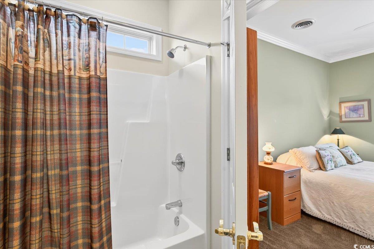 Welcome to 7035 Bloomsbury Court SW, an elegant, brick waterfront home nestled within the prestigious gates of Ocean Ridge Plantation. From the moment you arrive, the manicured landscaping and peaceful pond views set the stage for a home that blends refined design with serene coastal living. Step inside to a light-filled great room where windows frame the tranquil pond and fountain beyond. The open layout features tile floors, crown molding, and trey ceilings, seamlessly connecting the spacious living, dining, and kitchen areas. The kitchen is both functional and inviting, offering stainless-steel appliances, granite countertops, abundant cabinetry, and a comfortable breakfast nook perfect for morning coffee or casual dining. All three bedrooms are conveniently located on the right side of the home, providing privacy and a natural flow for single-level living. The primary suite feels like a retreat, complete with a generous layout and spa-inspired ensuite bath. Step out to the three-season porch overlooking the pond—a peaceful setting to unwind, entertain, or enjoy the sound of the fountain as the sun sets. Beyond the home, Ocean Ridge Plantation is a lifestyle like no other. Golf enthusiasts can enjoy four premier courses, two driving ranges, multiple putting greens, and three clubhouses featuring restaurants, bars, and pro shops. For beach lovers, residents have exclusive access to a private oceanfront Beach Club at Sunset Beach, complete with parking, showers, dressing areas, kitchenettes, ocean-view decks, and an elevator for convenience. Spend your days soaking in panoramic ocean views, dining al fresco, or simply relaxing in one of North Carolina's most beloved coastal destinations. Those with a green thumb will also appreciate the community gardens and greenhouse, where residents can grow herbs, vegetables, or flowers, or simply relax under the shaded porch near the fountain while chatting with neighbors.