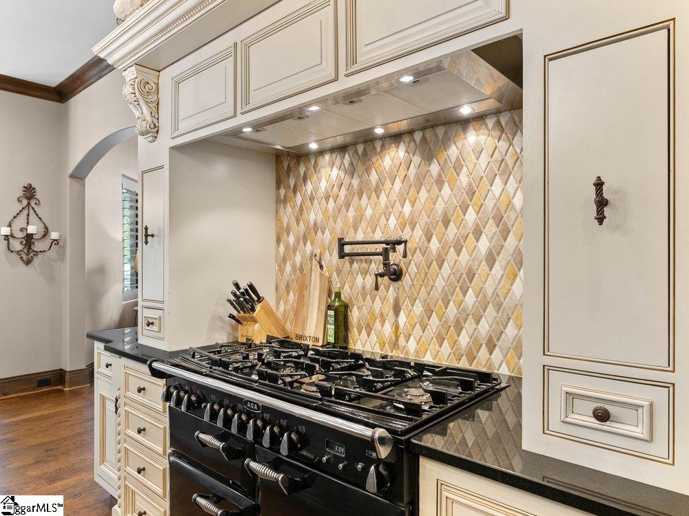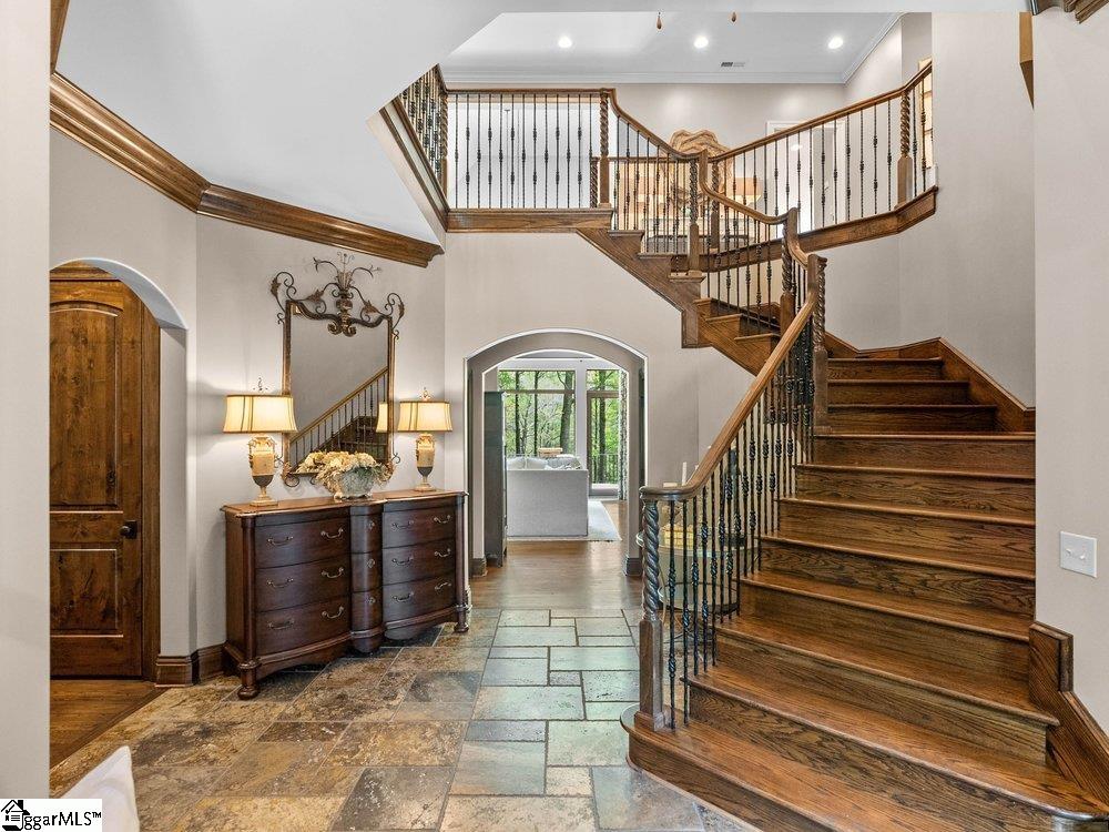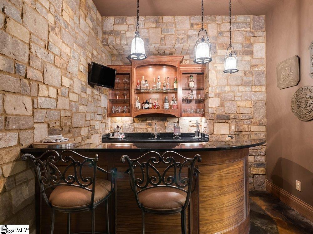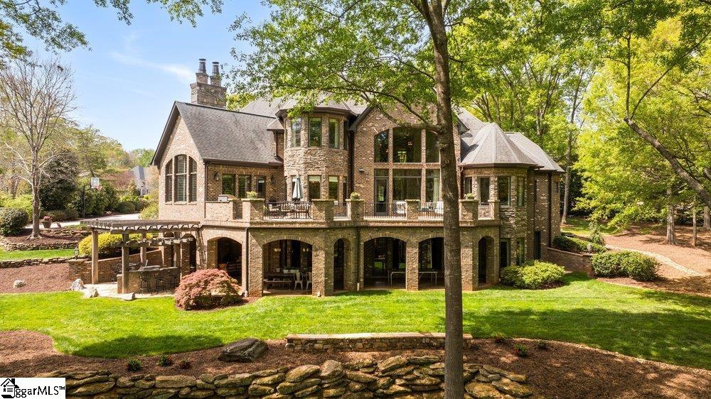 Welcome to one of Cobblestone’s most exceptional offerings— 704 Brixton Circle- where timeless architecture, refined craftsmanship, and resort-style living converge in a truly unforgettable park like setting. The custom 5BR/5.5BA estate immediately captivates with its striking stone and brick façade and commanding presence. This home simply sprawls across the 1.5 acre creekfront homesite, nestled among mature trees, & beautifully curated landscaping all tiered down to the fire pit and creek via the natural stone retaining walls and stairs! Entering through the European courtyard you are immediately greeted by a grand two-story foyer with a sweeping staircase that sets the homes tone—elegant, warm, and effortlessly sophisticated. Thoughtfully designed for both everyday living and elevated entertaining, the main level unfolds with gracious living spaces, rich hardwoods, detailed millwork, and soaring ceilings that invite natural light throughout. The great room is a showpiece, anchored by exposed beams and a stately fireplace, while walls of windows frame serene views of the surrounding landscape. The kitchen is as functional as it is beautiful—featuring custom cabinetry, a substantial center island, high-end appliances, and seamless flow into inviting gathering spaces. From intimate dinners to large-scale entertaining, every detail has been carefully considered. The primary suite offers a private retreat with a spa-inspired bath and tranquil views, while additional bedrooms and living areas provide both comfort and flexibility for family and guests. The lower level is a destination all its own—designed for both entertaining and retreat. A private, richly appointed pub-style lounge, is the perfect spot for hosting a wine tasting. Enjoy evenings around the billiards table, gather for cards, or unwind in the dedicated fitness room. An additional private suite on this level offers ideal accommodations for guests or multigenerational living, all wrapped in the same elevated finishes found throughout the home. Step outside and experience a setting that rivals a private resort. Expansive terraces, covered outdoor living spaces, outdoor kitchen, and multiple entertaining areas overlook a picturesque, park-like backyard complete with a firepit gathering space and lush natural surroundings. Every inch of this home reflects intentional design, quality craftsmanship, and a level of care rarely found. Hidden within the gates of one of the Upstate’s most sought-after communities, this is more than a home—it’s a lifestyle. The Five Forks location is just minutes away from great restaurants, shopping, entertainment, great schools, major highways & GSP International Airport, making it the perfect abode for those who demand the very best in luxury and convenience.