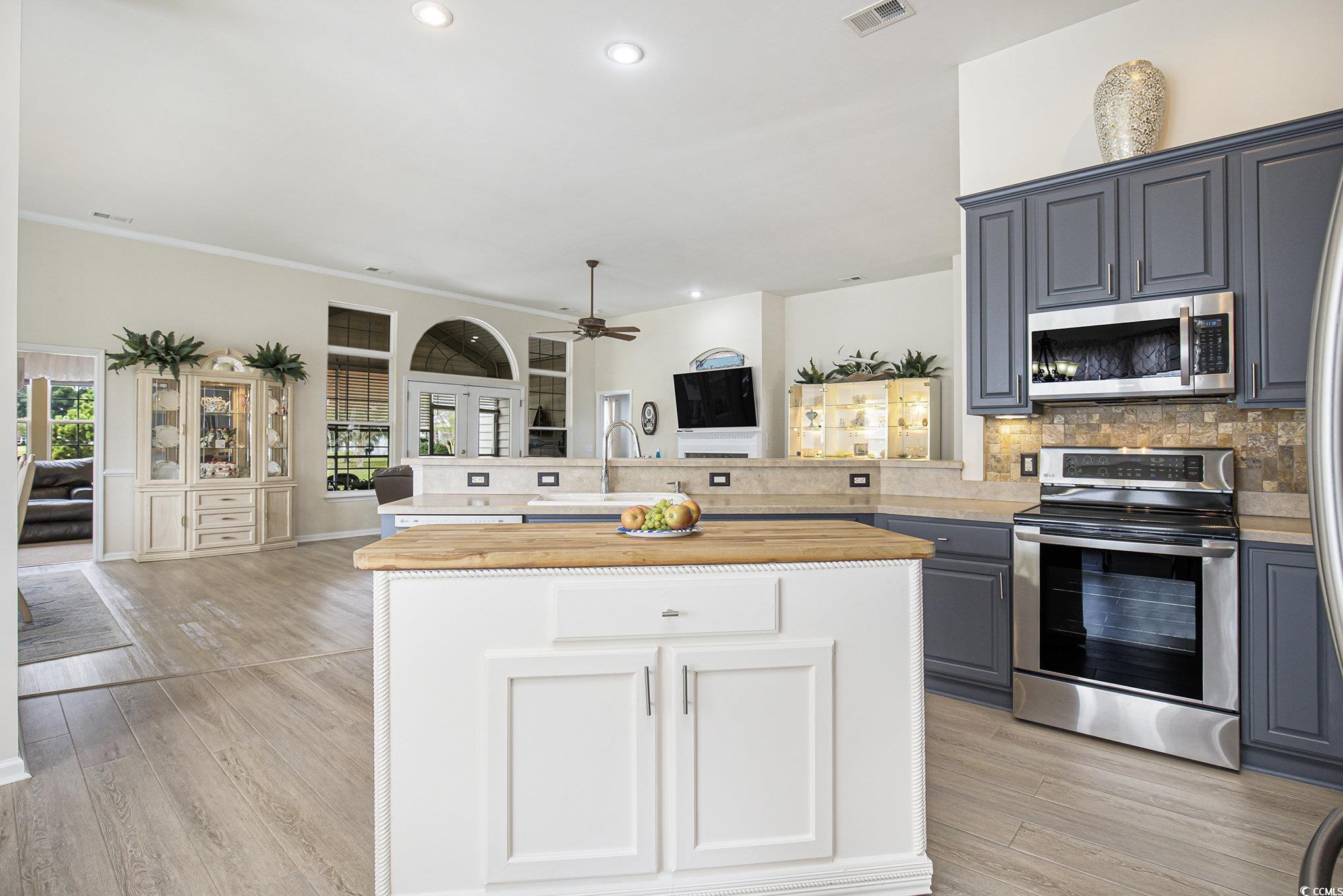 Welcome to this beautiful 3-bedroom, 2.5-bath home in the desirable Carriage Lakes community! This open-concept home is move-in ready and has been lovingly cared for, and it shows. You?ll love the upgrades throughout?LVP flooring in the main living areas, cozy carpet in the master bedroom and office/den, custom hurricane shutters, and a bright kitchen with resurfaced cabinets, solid surface countertops, a butcher block island, stainless steel appliances, a breakfast nook, and pantry. There?s also a separate dining room and a cozy gas fireplace in the living room. The spacious Master suite features its own private bath with double sinks, a large walk-in closet, and plenty of natural light?your own peaceful retreat at the end of the day. The other 2 bedrooms have plenty of space for your family or your guests! Step out back to a peaceful screened-in patio that overlooks a serene pond?perfect for relaxing with your morning coffee or unwinding in the evening. Tucked away in a quiet cul-de-sac, this home also features a 3-year-old Trane HVAC system with a transferable warranty and a 2-year-old water heater. Carriage Lake offers great community amenities too! Residents can enjoy access to the neighborhood pool and fitness center. Best of all, you're just 5 minutes from the beach and Main Street in North Myrtle Beach, home of the shag dance and tons of fun! Shopping, restaurants, and entertainment are all right at your fingertips. It's the perfect mix of comfort, convenience, and coastal charm. Don't miss out on this one!