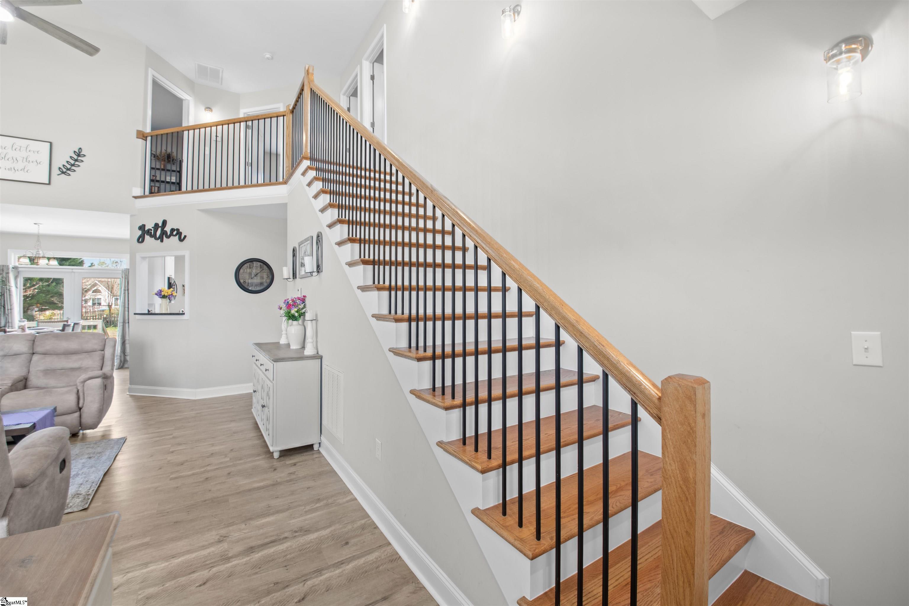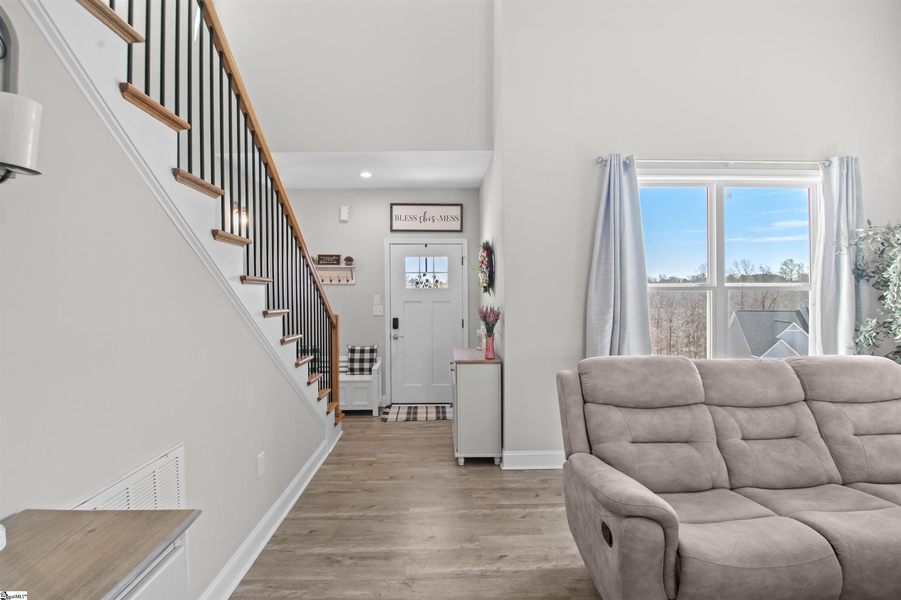 welcome home to this Beautiful home in a lovely neighborhood. This four bedroom two and half bath home has so many wonderful features. The Living room is open to dining room with an amazing fireplace with shiplap running all the way to the ceiling of the second floor with open cathedral ceiling and the open stairs and pretty railing lends this home to so many family picture settings. There is a large dining room that leads to the back deck and into the kitchen with a breakfast nook and bay window. The Kitchen has stainless appliances an island and plenty of storage for all you cooking needs. The Primary bedroom is around the corner and has lots of natural light and a wonderful bathroom with double sinks, granite countertops, garden tub, huge step in shower and a walk-in closet. The laundry is located on the main level and access to the garage is just steps away. Upstairs are three very nice size bedrooms and plenty of storage with large closets and additional easy access to attic areas. Another full bath tops off the upstairs with granite and tub shower combo. Stepping out onto the large back deck is a pretty winter mountain view and a great yard for hanging out and gardening. Location is prime just minutes to downtown Greenville, Travelers Rest and a short ride to the mountains and multiple state parks.