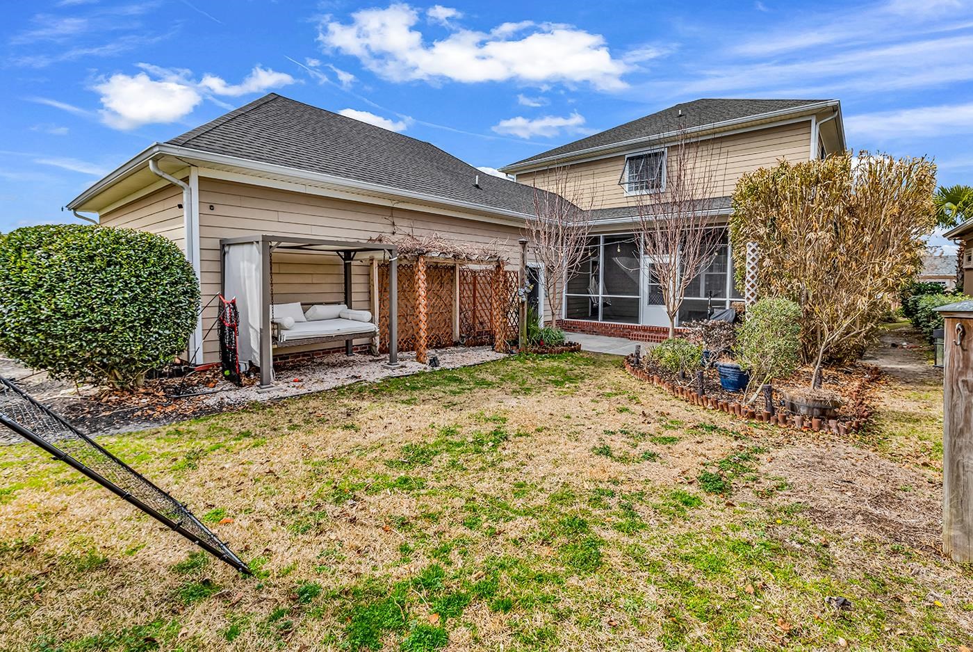 Welcome to this stunning 4-bedroom, 3.5-bath home featuring classic double front porches and timeless curb appeal. From the moment you arrive, the inviting columns, warm lighting, and manicured landscaping set the tone for what's inside. Step through the front door to find a thoughtfully designed layout that includes a private study, formal dining room, and spacious living area anchored by a cozy fireplace and custom built-in bookshelves. Freshly painted throughout, the home feels light, bright, and move-in ready. The kitchen and main living spaces flow beautifully for everyday living and entertaining, while upgraded lighting and renovated bathrooms add a modern touch. A bonus room with additional storage provides flexible space for a media room, playroom, or home gym. The three-car garage offers ample room for vehicles, golf carts, or workshop space. Out back, you'll find something truly special - a charming playhouse complete with electricity and cable, plus mature grapevines and apple trees creating your own private backyard retreat. A full home water filtration system adds comfort and peace of mind. With spacious living areas, thoughtful upgrades, and incredible outdoor features, this home offers the perfect blend of elegance, functionality, and Southern lifestyle. Located in the Bluffs, which is a sought-after gated Intracoastal Waterway community, residents enjoy an exceptional coastal lifestyle with private access to a boat ramp, day docks, and convenient on-site boat storage - making it effortless to spend the day on the water. The neighborhood also features a beautifully maintained pool and clubhouse, tennis courts, a playground, and scenic walking trails that wind throughout the community. Just minutes from fine dining, championship golf courses, and the beach, this location offers the perfect blend of security, recreation, and relaxed waterfront living.