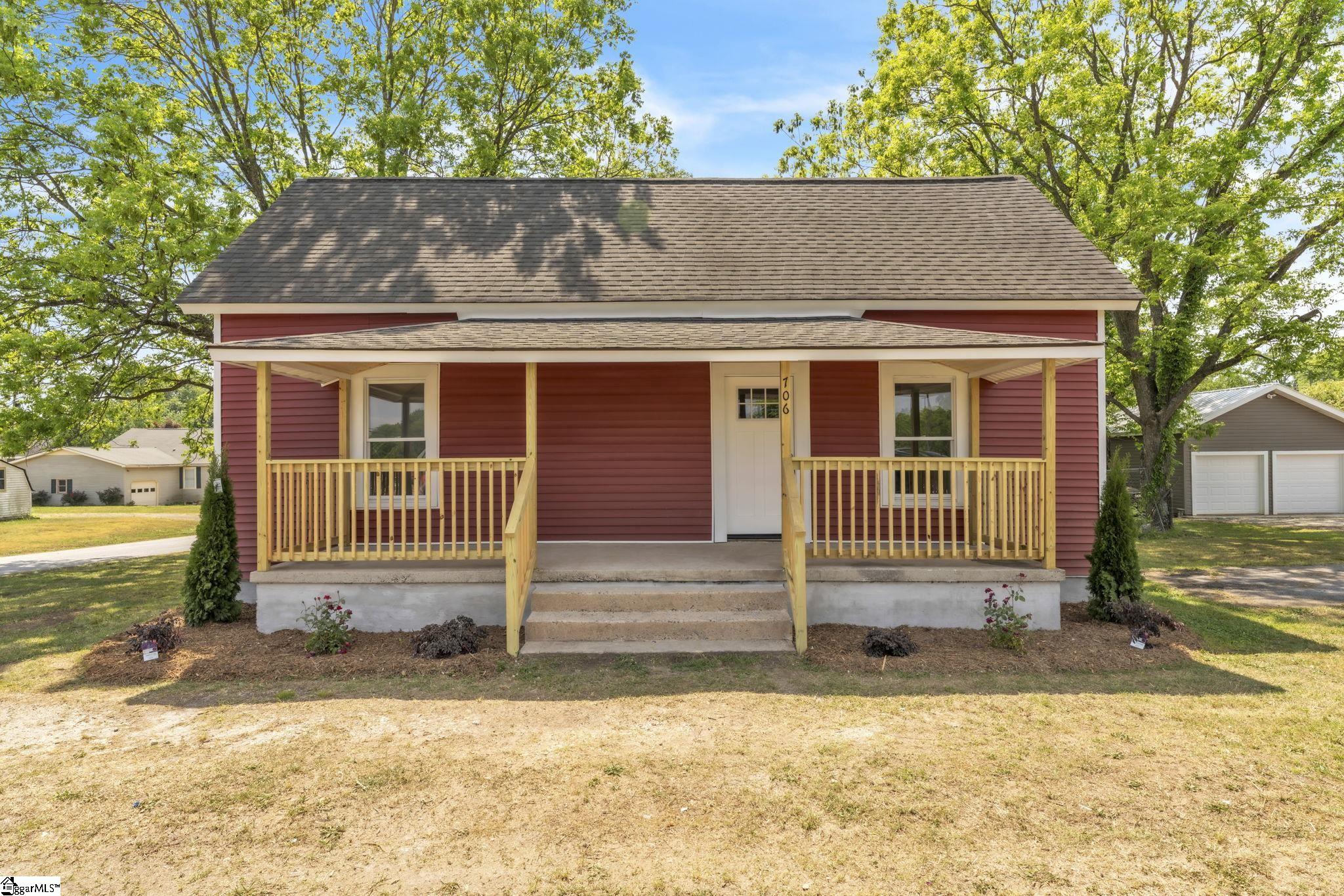 Location, location, location Welcome to 706 S 5th St. located in the heart of Easley in between Highway 123 and W. Main St. just 1/2 mile from the Silos. This home has been renovated and updated throughout. Lets start with the this unbelievable kitchen that is huge measuring 17x12 with an oversized island, granite countertops, tons of cabinets and SS appliances included. Seriously this kitchen is something you would only begin to expect in homes at least DOUBLE this price! The living room is spacious with a great layout and tall ceilings adding volume to the living space. Beautifully refinished hardwood floors t/o the home with tile in the bathrooms and laundry areas. The primary suite features a large closet and private ensuite bathroom with tiled shower and large vanity with drawer storage. The second bedroom also has a nice larger than expected walk in closet. Laundry room has generous space allowing for extra shelfs and storage space. This home looks and feels brand new with new siding, new HVAC, new water heater, new kitchen, new bathrooms, fresh paint and drywall, refinished hardwoods, new rear deck, newer roof (2022), new lighting, new plumbing fixtures, etc. Enjoy the outdoors by sitting on your front porch waving as neighbors walk by or enjoy the rear deck for cooking out and more privacy. Super convenient to schools, restaurants, shopping and the Silos schedule your showing to see this beauty today before it's gone.