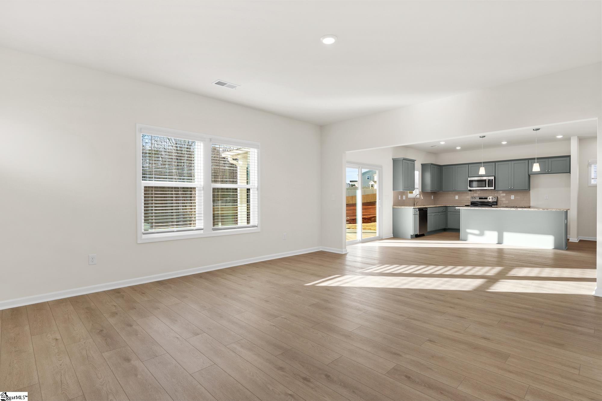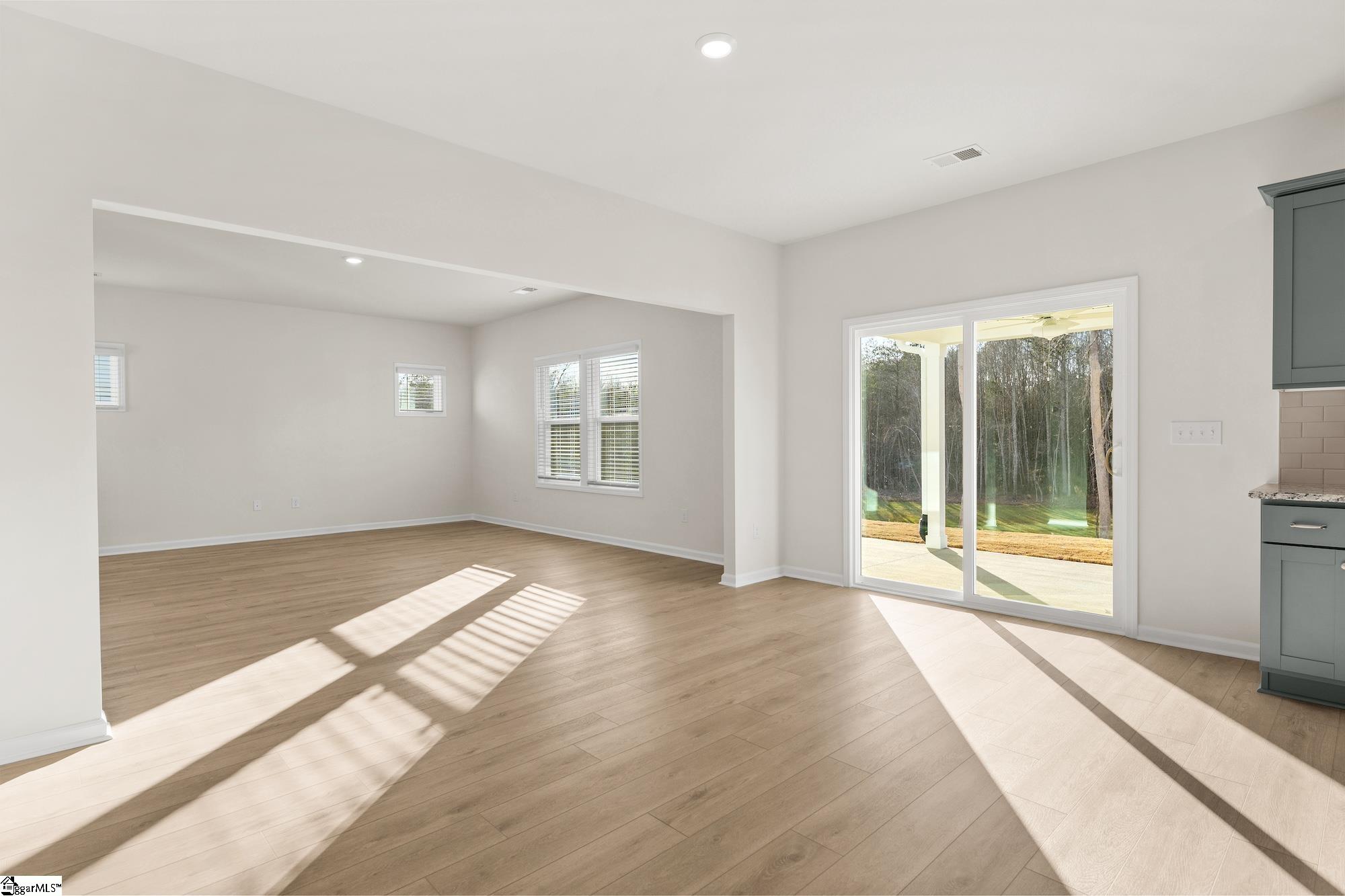 This stunning home has so much to offer! As you walk into the foyer, you'll notice the flex room, which fills with natural light. This versatile space is perfect for a dining room, office, or playroom. The open-concept design features a large great room that flows into the upgraded kitchen and eat-in area. The chef in the house will appreciate the shaker-style cabinetry, granite countertops, stainless steel appliances, and a sink that overlooks the serene, wooded half-acre backyard. Two secondary bedrooms include spacious walk-in closets and share a hallway bathroom. There's also a guest suite with a private bathroom that features a five-foot shower, making it ideal for hosting overnight guests. The laundry room is generously sized, complete with additional cabinetry for storage. You will be impressed as soon as you step into the primary suite, which boasts two large walk-in closets, quartz countertops with dual sinks, a five-foot shower, and ample storage space. Don't miss the opportunity to check out this beautiful home in Fairview Falls today!