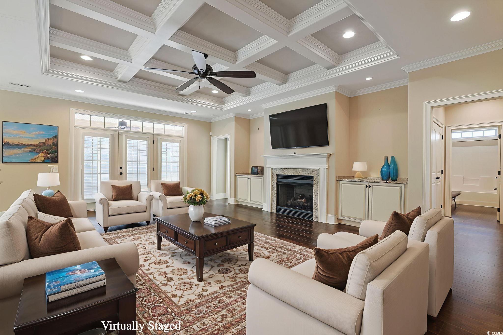 Introducing this upscale 3 bedroom 2.5 bath home located in the popular & gated Seaside Plantation community. As you enter this captivating home you take notice of the elegance of this bright open floor plan that features wood look tile & carpet flooring, plantation blinds, smooth flat ceilings with crown moulding, a guest powder room, a graceful formal dining area with a single step tray ceiling & wainscoting, a comfortable living room with a coffered ceiling along a cozy gas log fireplace, showcases a 3 panel patio door that opens up to the enchanting screened-in back porch. The modern kitchen is equipped with stainless steel appliance package with a gas range, granite counter tops, cabinets topped with crown moulding, tile back splash, a breakfast bar, a kitchen pantry, and a sunlit breakfast nook. The primary bedroom offers a single step tray veiling with a fan, a large walk-in closet, private access to the primary bath hosting vanity with dual sinks, a water closet, and a deluxe step-in shower. This delightful home is completed with two additional bedrooms, a full guest bath, a laundry room, and a two car side load attached garage. This home affords you easy access to the beach and golfing along with all of the other activities and happenings in North Myrtle Beach & Myrtle Beach including fun eateries, award winning off-Broadway shows, public fishing piers, and intriguing shopping adventures along the Grand Strand. Conveniently located to your everyday needs, including grocery stores, banks, post offices, medical centers, doctors’ offices, and pharmacies. Check out our state of the art 3-D Virtual Tour. Some photos have been virtually staged.