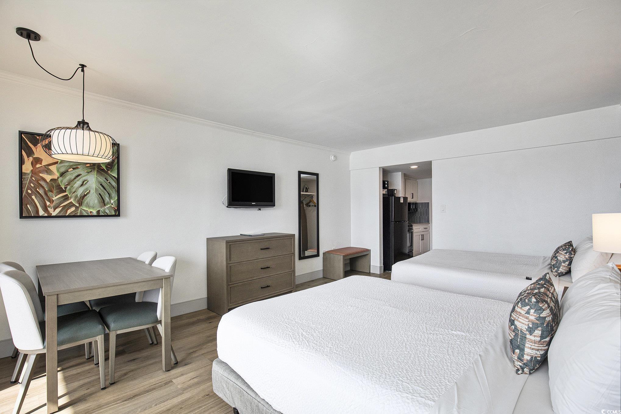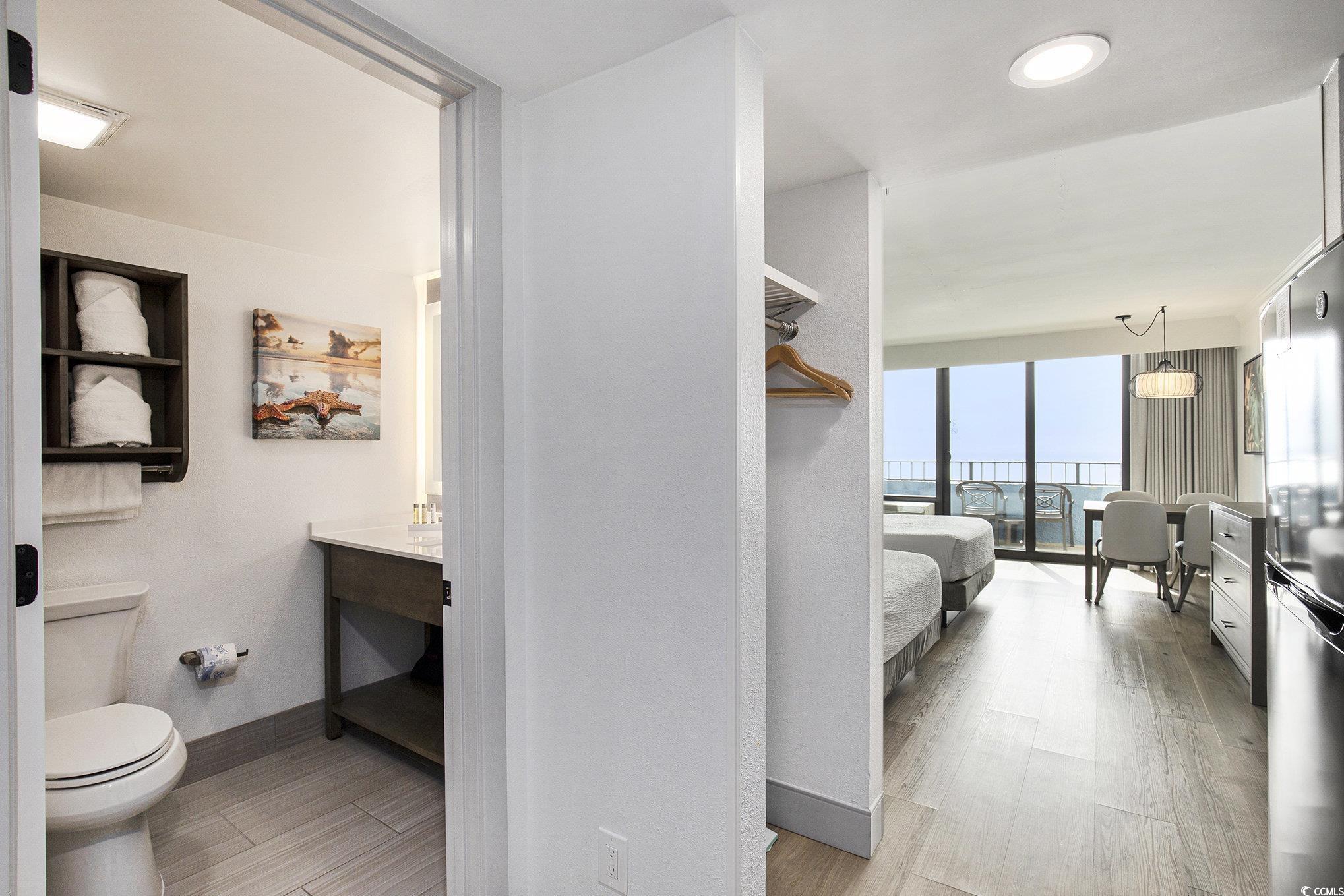 Incredible ocean views from this fully furnished DIRECT OCEANFRONT efficiency in the highly sought after Ocean Reef Resort! This wonderful unit includes two NEW queen beds, updated bathroom, full kitchenette with NEW appliances, NEW flooring, smooth ceilings and fantastic ocean and sunset views from the private balcony. It is also a lockout with its sister unit on the market, unit 1505. Ocean Reef Resort offers an incredible amenities including a large outdoor pool, hot tubs, fitness center, lazy river, indoor pool, kiddie pools, shuffle board, volleyball, arcade, water park and direct beach access. HOA fee covers unit electric, water, sewer, cable TV, internet, insurance. This resort simply has it all. Convenient to Broadway at the Beach, shopping, dining, championship golf, and the beautiful Atlantic Ocean. Perfect as a permanent residence, vacation getaway or investment opportunity!!!