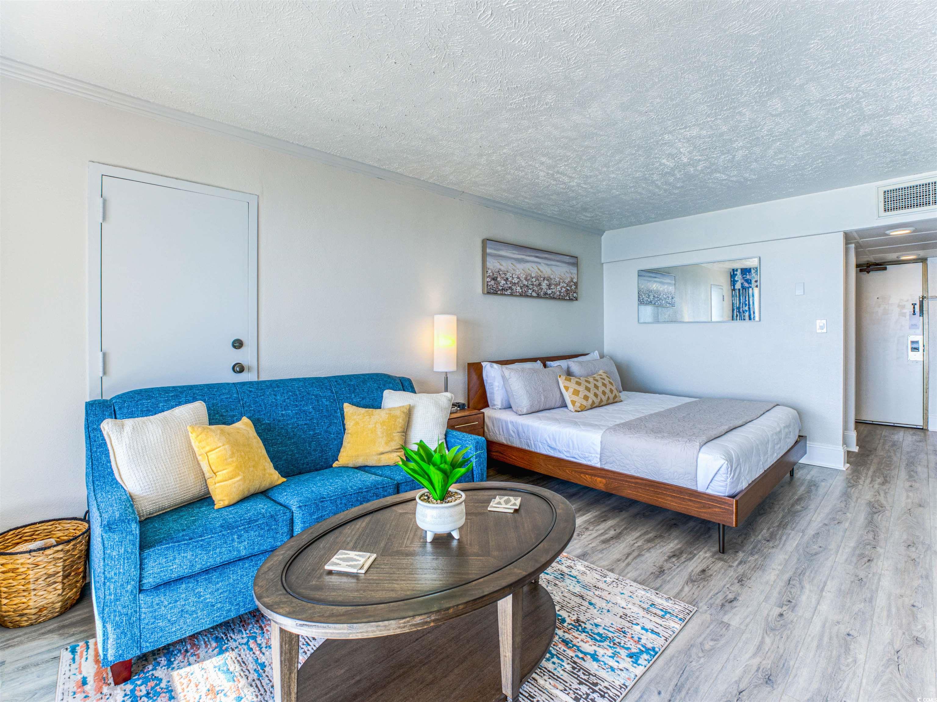 Direct oceanfront studio condo located on the 14th floor of Ocean Reef Resort in Myrtle Beach. This fully furnished property offers panoramic views of the Atlantic Ocean and a private oceanfront balcony. Interior features include new sliding door, newer flooring, mostly new furnishings, and a king-size bed layout (a rare alternative to the typical two-queen configuration). Kitchen area includes stove, refrigerator, and sink. New patio furniture conveys. Unit is clean, well maintained, and rental-ready with 5-star guest reviews for this unit. Important buyer benefit: This unit does not have renovation debt. It was not included in the resort’s bulk renovation financing program, providing a significant financial advantage compared to many other units. Resort amenities include indoor and outdoor pools, lazy river, hot tubs, kiddie water park, fitness center, arcade, on-site restaurant, seasonal pool bar, and direct beach access. Lobby and interior common areas have been recently renovated into a fresh modern feel throughout. Located on the quieter northern end of Myrtle Beach with convenient access to shopping, dining, golf, and attractions including Broadway at the Beach and Barefoot Landing. Ideal as a vacation home, primary residence, or short-term rental investment.