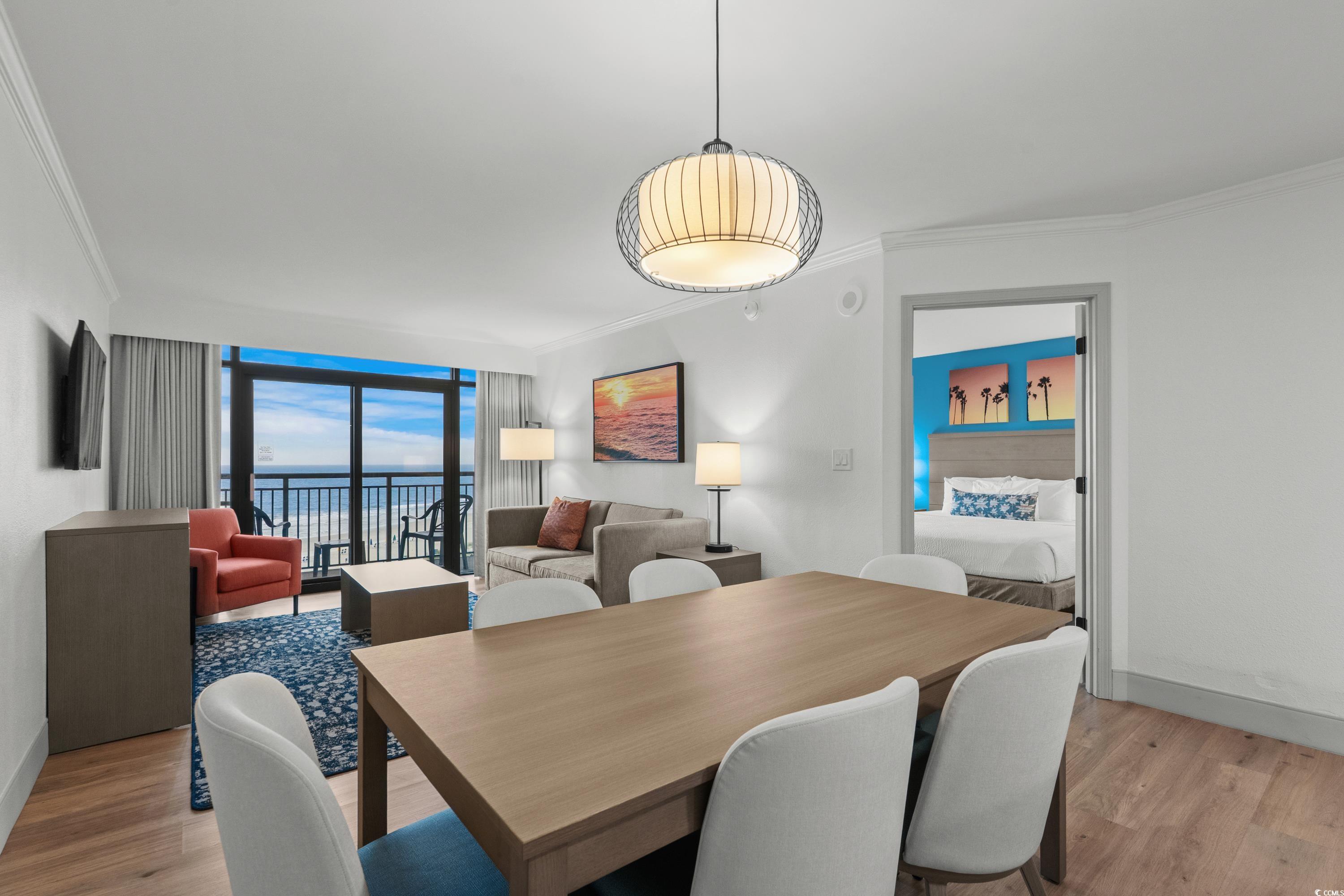 Perched on the 6th floor of the sought-after Ocean Reef Resort, this newly renovated 3-bedroom, 2-bathroom angled ocean view condo blends modern coastal charm with stylish comfort. Step into a bright, inviting space featuring luxury vinyl plank flooring throughout the living areas, bedrooms, dining room, and kitchen. The sleek, fully remodeled kitchen boasts shaker-style cabinets, stylish countertops, brand-new appliances, and contemporary fixtures.Both bathrooms have been thoughtfully upgraded with LED mirrors, undermount sinks, and elegant finishes. Every detail—from the fresh furnishings to the updated décor—has been designed to elevate your beachside living experience. As part of the Ocean Reef Resort, you will enjoy access to full front desk services, onsite rental management, and a fantastic array of amenities including a water slide, lazy river, indoor pool, and the oceanfront Banana Boat pool bar. Start your mornings with a breakfast buffet at Café du Port, then spend your afternoons soaking up the sun on the spacious pool deck or playing beach volleyball. Ideally located on the north end of Myrtle Beach, you’re just minutes from top-rated restaurants, shopping, and entertainment. Don’t miss your chance to own this stunning coastal retreat—come see it for yourself and make your beachfront dream a reality!