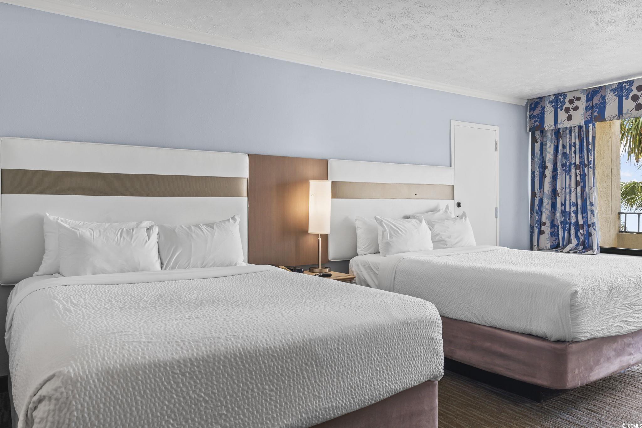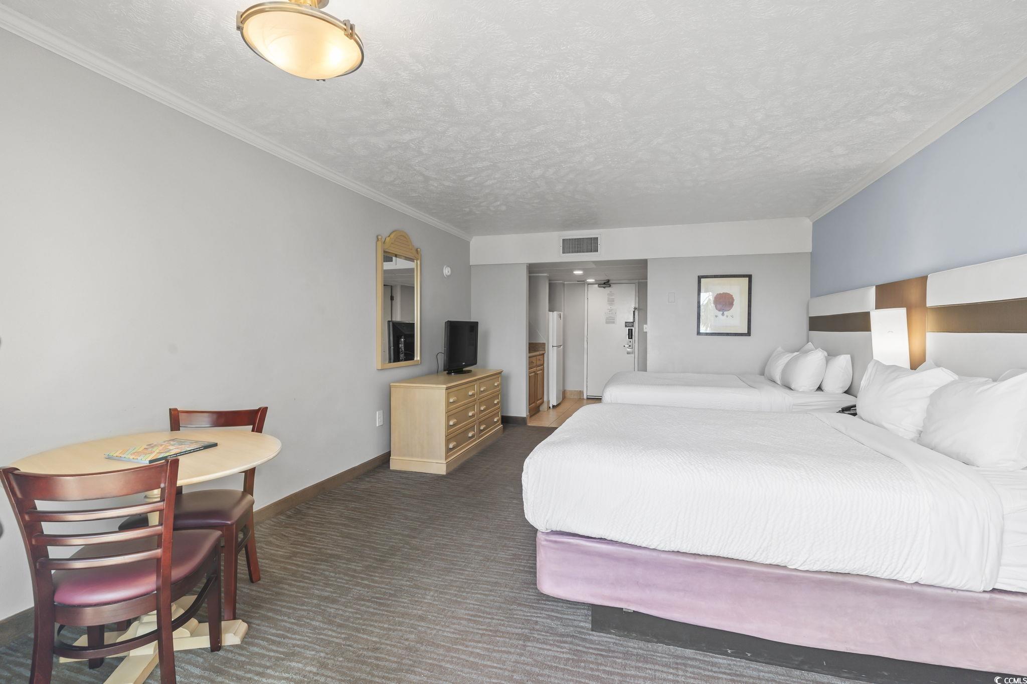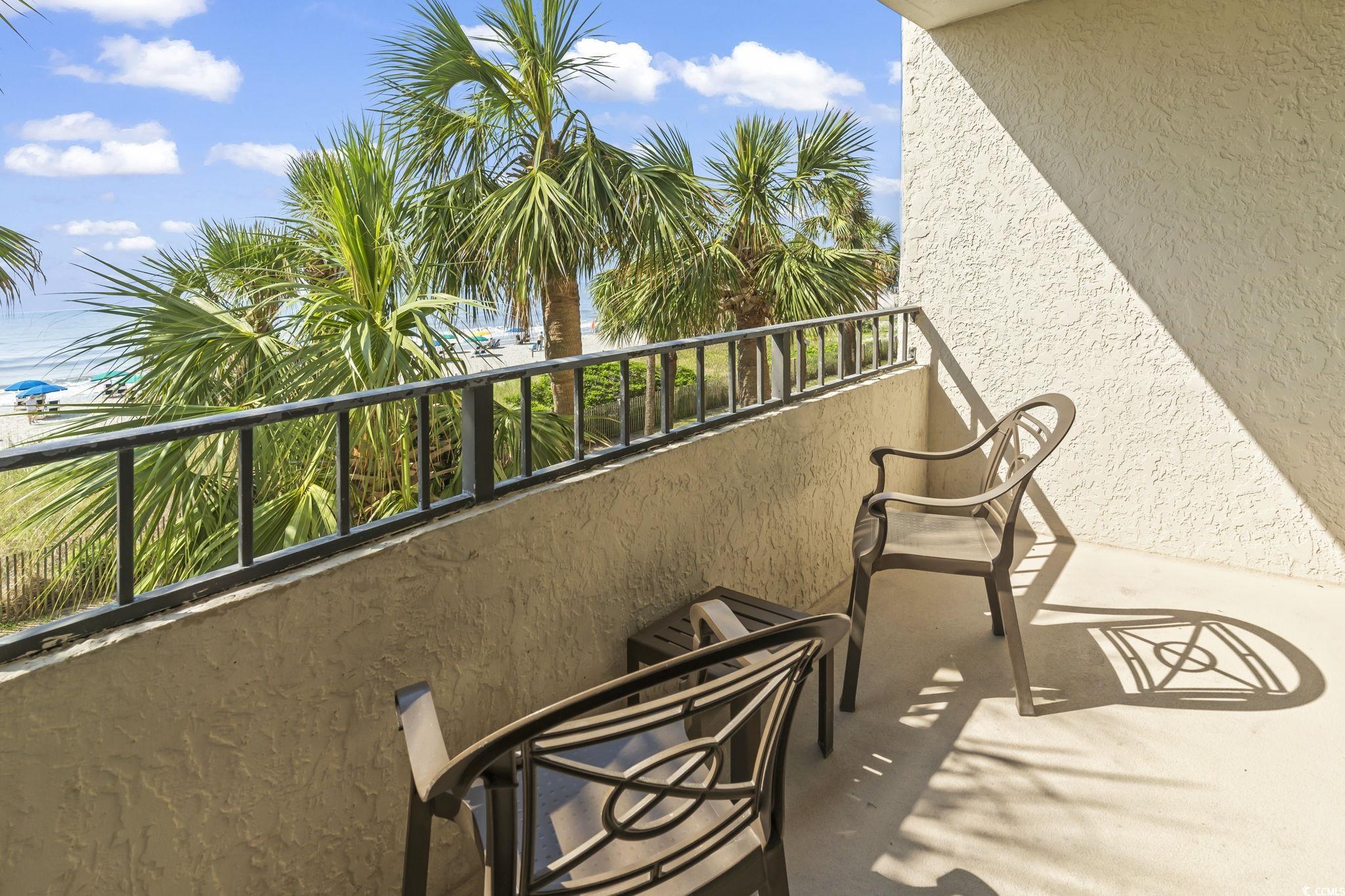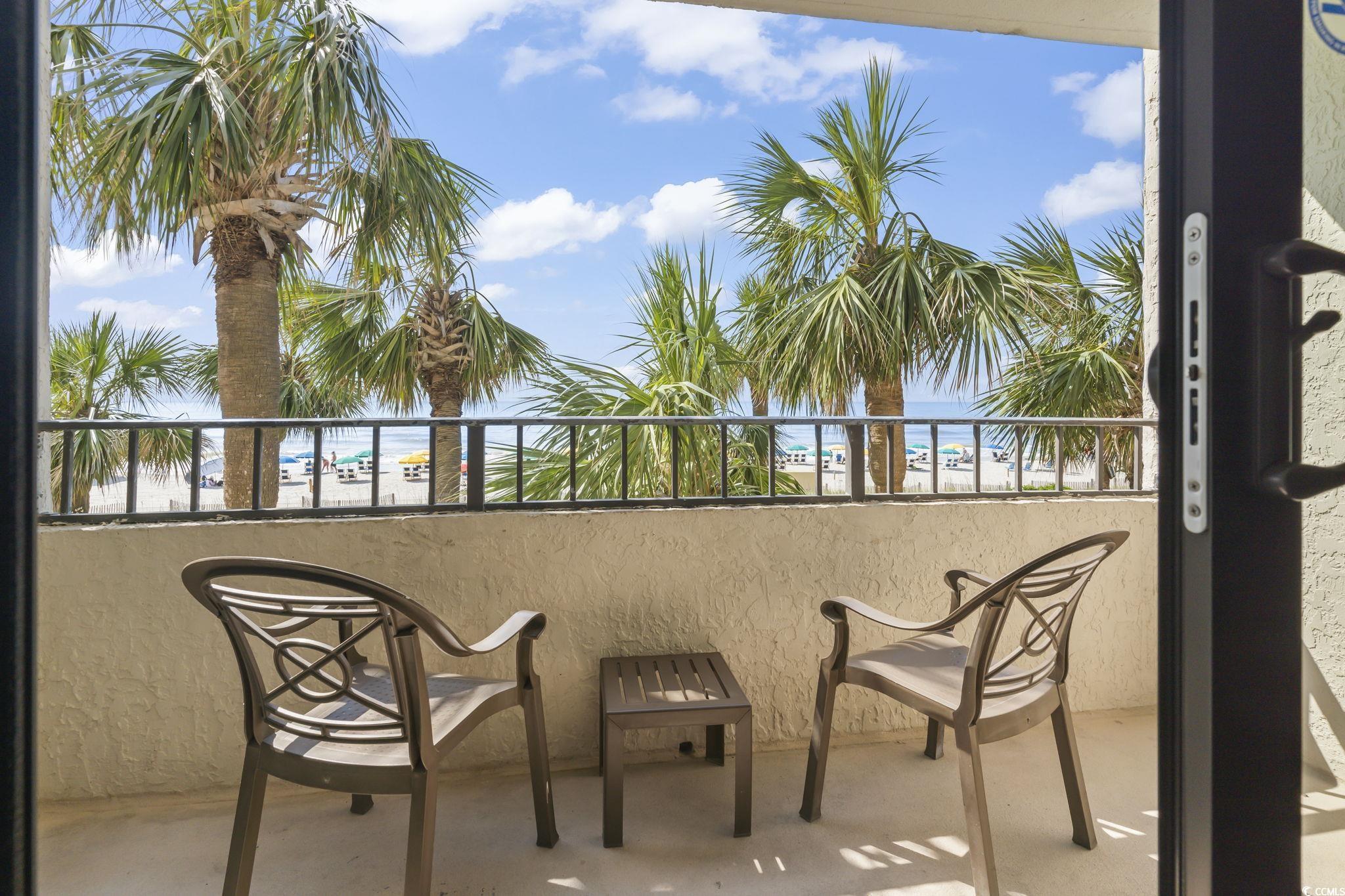 Enjoy the ultimate beachfront escape in this fully furnished, oceanfront condo located in the highly sought-after Ocean Reef Resort North Tower. Inside, you’ll find a thoughtfully arranged open layout with two queen beds, a cozy sitting area, and a dining nook. The kitchenette includes a full-size refrigerator, microwave, and coffee maker—everything you need for added comfort and convenience during your stay. The spacious bathroom offers a large vanity, full tub and shower combo, and tile flooring for easy upkeep. Step outside to your private balcony and take in stunning views of the Atlantic Ocean framed by swaying palm trees. It’s the perfect place to relax with your morning coffee or unwind after a day at the beach. Ocean Reef Resort offers a wide range of amenities including indoor and outdoor pools, a lazy river, waterpark, fitness center, game room, shuffleboard, on-site dining, and direct beach access. Located along the quieter northern end of Myrtle Beach, the resort is just minutes from popular attractions, golf, shopping, and restaurants. Whether you’re looking for a personal retreat or a turn-key investment property, this oceanfront condo delivers on both lifestyle and location. Schedule your showing today and start living the coastal dream.