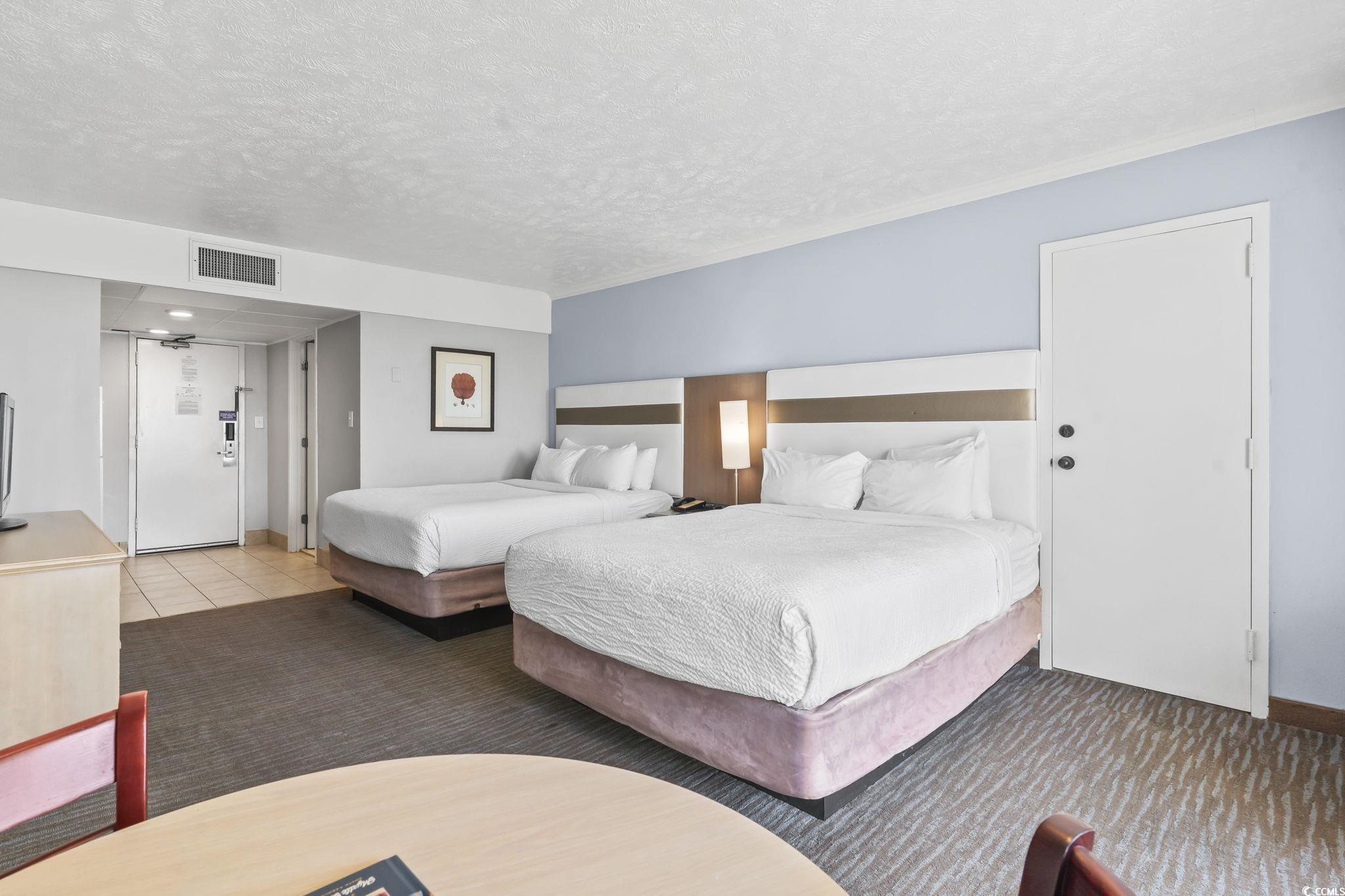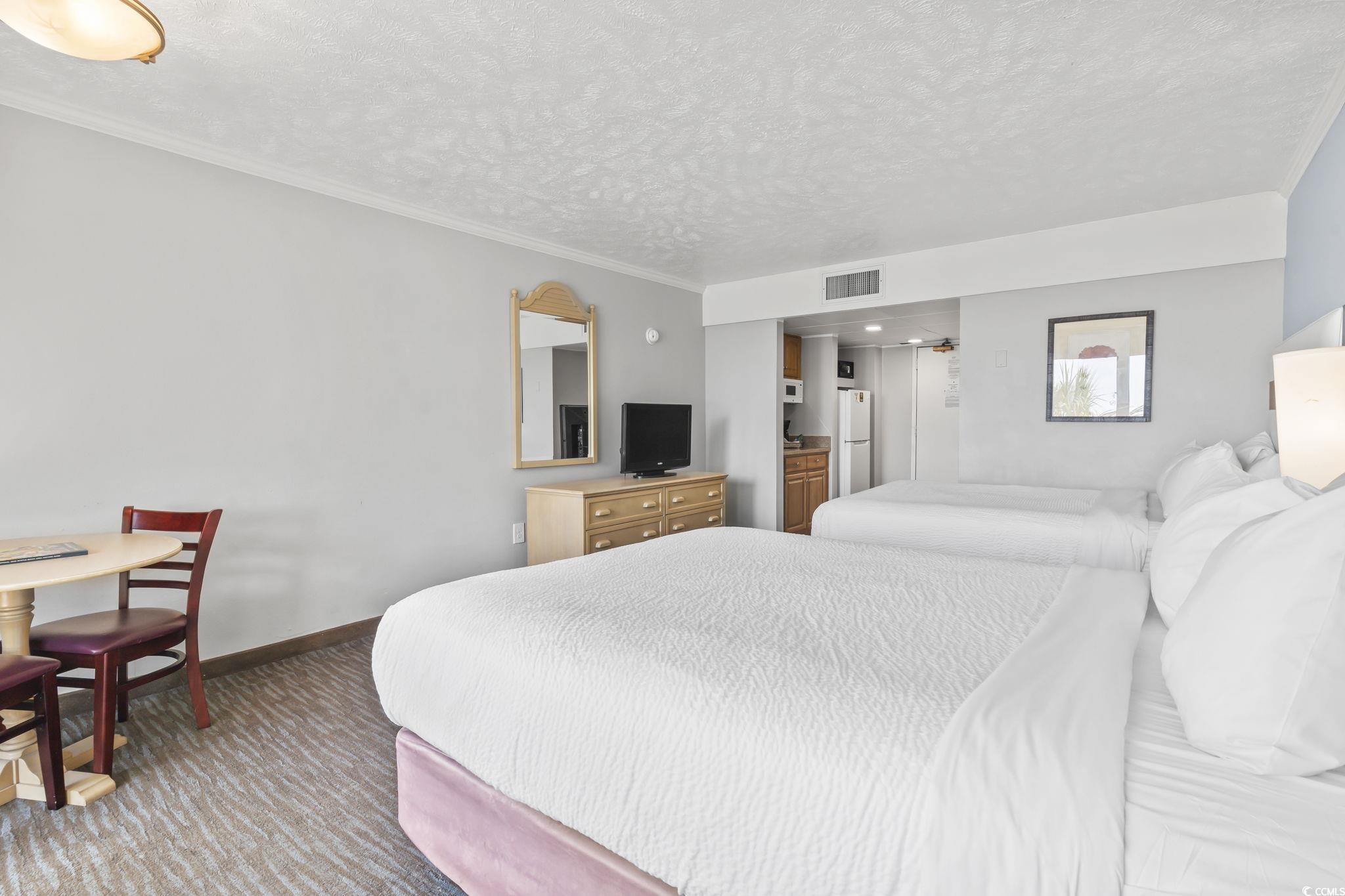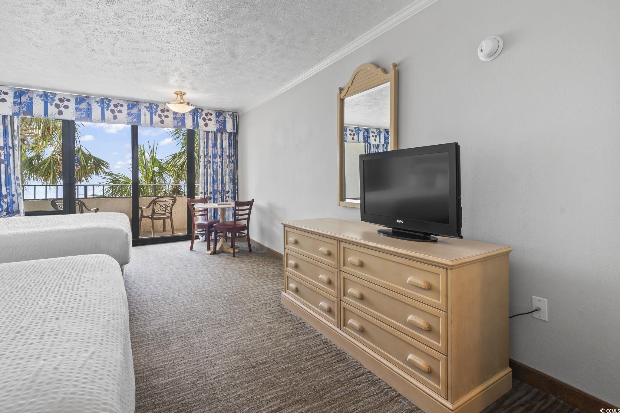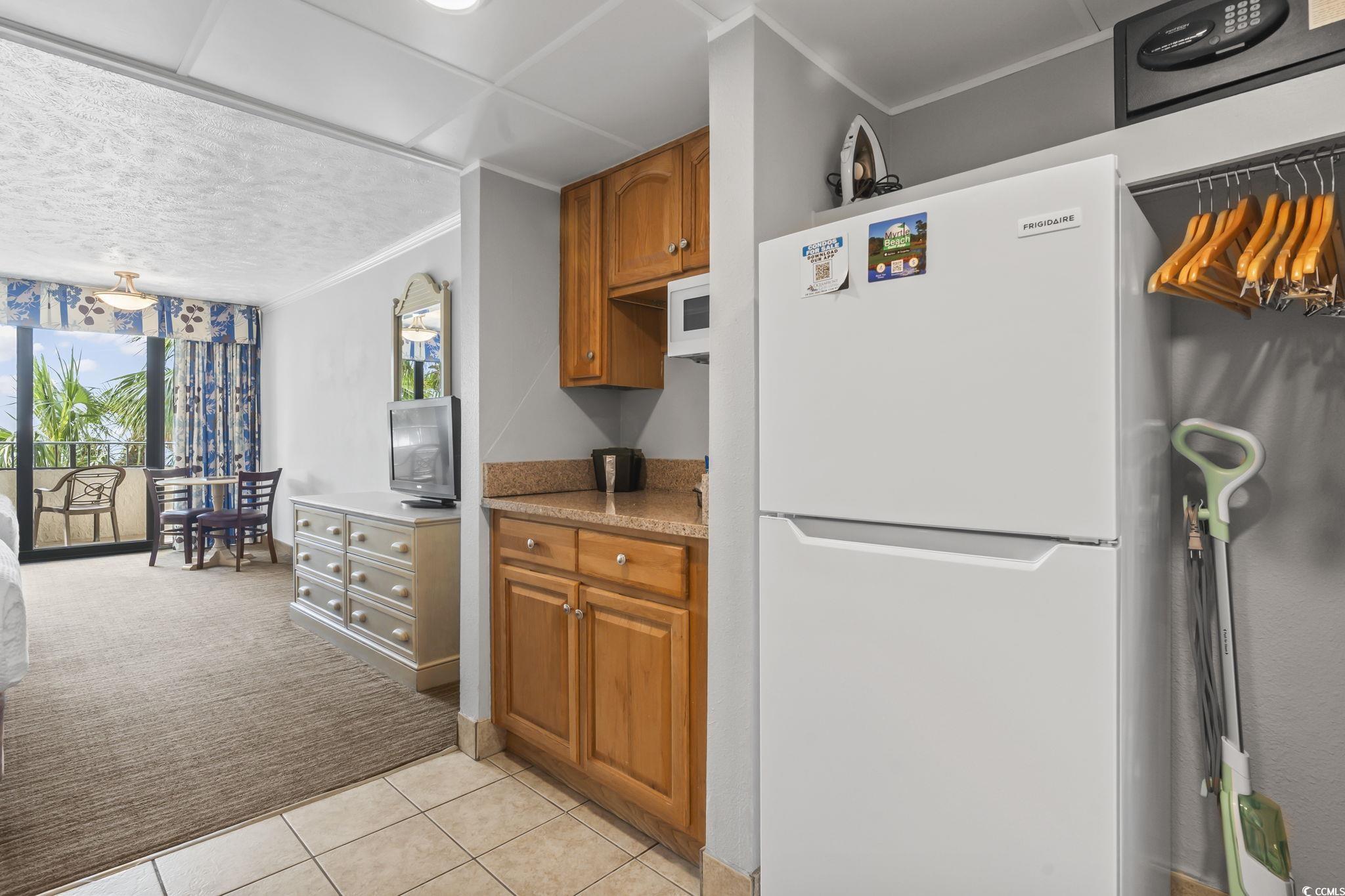 Enjoy the ultimate beachfront escape in this fully furnished, oceanfront condo located in the highly sought-after Ocean Reef Resort North Tower. Inside, you’ll find a thoughtfully arranged open layout with two queen beds, a cozy sitting area, and a dining nook. The kitchenette includes a full-size refrigerator, microwave, and coffee maker—everything you need for added comfort and convenience during your stay. The spacious bathroom offers a large vanity, full tub and shower combo, and tile flooring for easy upkeep. Step outside to your private balcony and take in stunning views of the Atlantic Ocean framed by swaying palm trees. It’s the perfect place to relax with your morning coffee or unwind after a day at the beach. Ocean Reef Resort offers a wide range of amenities including indoor and outdoor pools, a lazy river, waterpark, fitness center, game room, shuffleboard, on-site dining, and direct beach access. Located along the quieter northern end of Myrtle Beach, the resort is just minutes from popular attractions, golf, shopping, and restaurants. Whether you’re looking for a personal retreat or a turn-key investment property, this oceanfront condo delivers on both lifestyle and location. Schedule your showing today and start living the coastal dream.