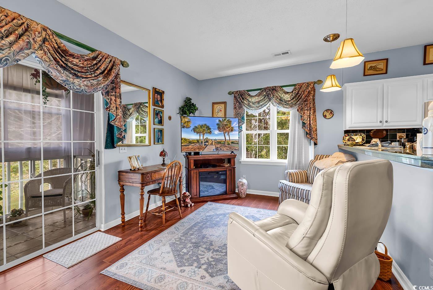 Discover a lifestyle where comfort meets coastal charm in this beautifully appointed second-floor condo in the Sweetwater Indian Wells community of Murrells Inlet. Tucked among mature trees and natural greenery, this inviting residence captures the easy rhythm of coastal living while offering a rare sense of privacy and belonging that’s hard to find. Uniquely positioned away from the busier highway, this building enjoys a peaceful setting that feels quietly removed, yet still close to everything the Inlet has to offer. This particular corner unit is embraced by natural foliage along its right side, adding both shade and seclusion. The generous width between neighboring buildings gives a true sense of breathing room, setting this home apart within the community. The upgraded enclosed porch expands the living space and invites you to relax year-round while overlooking the sparkling pool and lush surroundings - a perfect spot for morning coffee or quiet evenings unwinding in comfort. Inside, the spacious three-bedroom, two-bath layout immediately feels warm and welcoming. This condo radiates a warmth that reflects the pride and gentle touch of its owner. The open floor plan flows naturally from the kitchen to the living area, creating a space that feels connected yet calm. The kitchen shines with hard surface counters, newer appliances, and abundant cabinet space, ideal for both daily life and entertaining. Natural light fills the living spaces, highlighting the wood-tone floors and creating a cozy feel throughout. The primary suite offers privacy and comfort, set apart from the guest bedrooms for a restful retreat. Every detail speaks to care and pride of ownership, from the thoughtful design to the upgraded finishes. The position of this building ensures there’s no through traffic, enhancing the quiet, tucked-away feel that makes this home so special. Residents here enjoy access to community pools, pickleball and tennis courts, and even optional boat storage for an additional fee. Not to mention, this is a peaceful neighborhood protected from short-term rentals. Whether you’re swimming in your private courtyard pool, taking a short drive to the Marsh Walk for fresh seafood, or simply enjoying the calm of your enclosed porch, life here feels personal, grounded, and deeply relaxing. This isn’t just a condo, it’s a reflection of warmth, care, and belonging. It’s where life feels both simple and special, a private retreat that truly feels like home in the heart of Murrells Inlet! ~ Please note: The HOA dues include Exterior Insurance, exterior maintenance, internet, water, sewer, trash, pool, tennis court, common area landscape & maintenace, and Pest control.