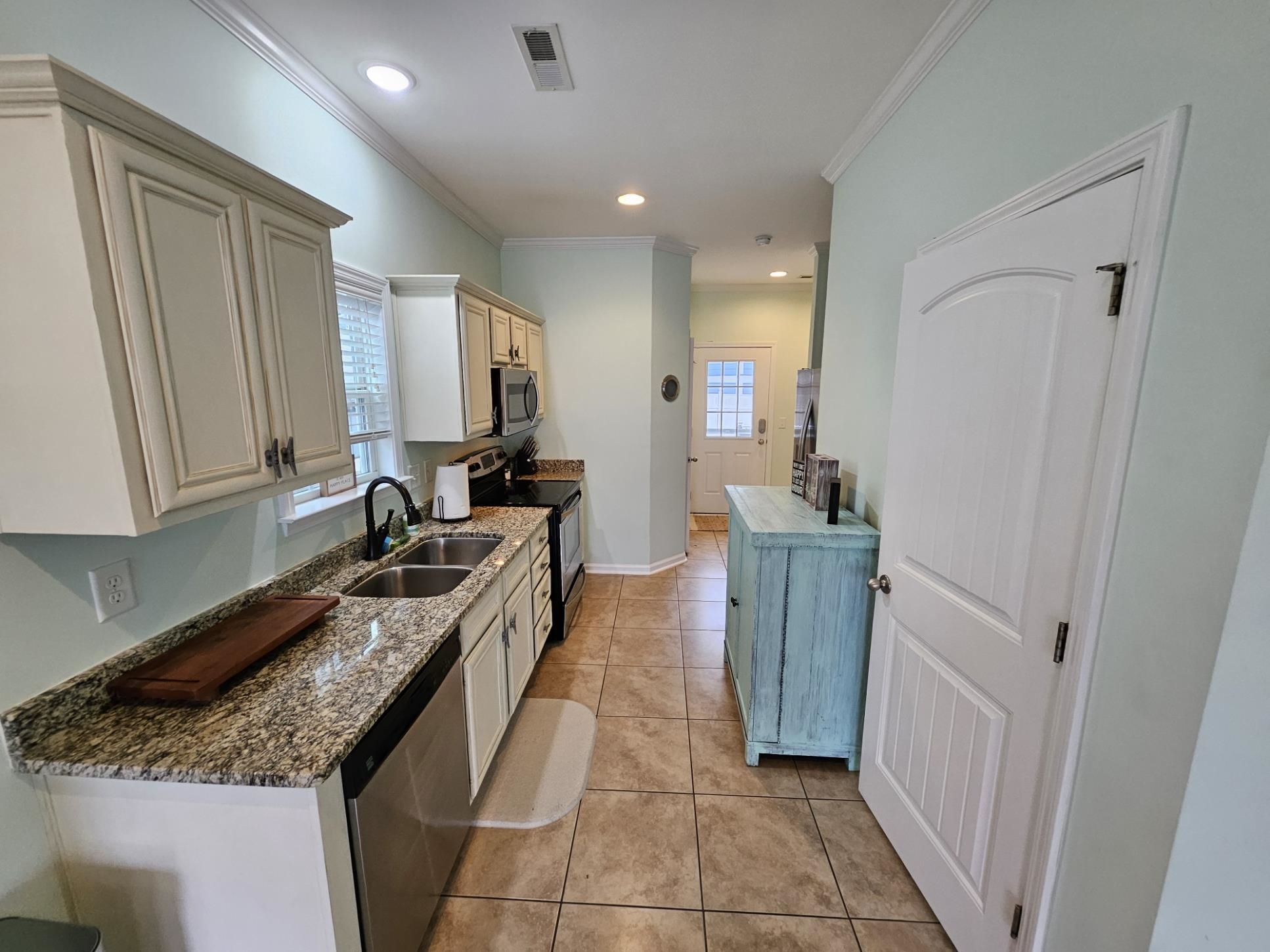 Nice touches in this desirable end townhome style beach retreat. This home features an electric fireplace and shiplap wall accent making the living room feel warm and welcoming. Walking through the home you will see details such as decorative knobs and lighting fixtures, built in cabinets, large paddle for stair rail, and built in bunks that kids would enjoy. Recessed lighting in living room and kitchen. Crown molding in living room, kitchen and primary bedroom. Golf cart garage stores your wheels to everything you need in the immediate area with shopping, groceries and of course the beach just a short ride away. Community pool area features a resort style pool and clubhouse with restrooms and large kitchen with plenty of outdoor entertaining and seating.