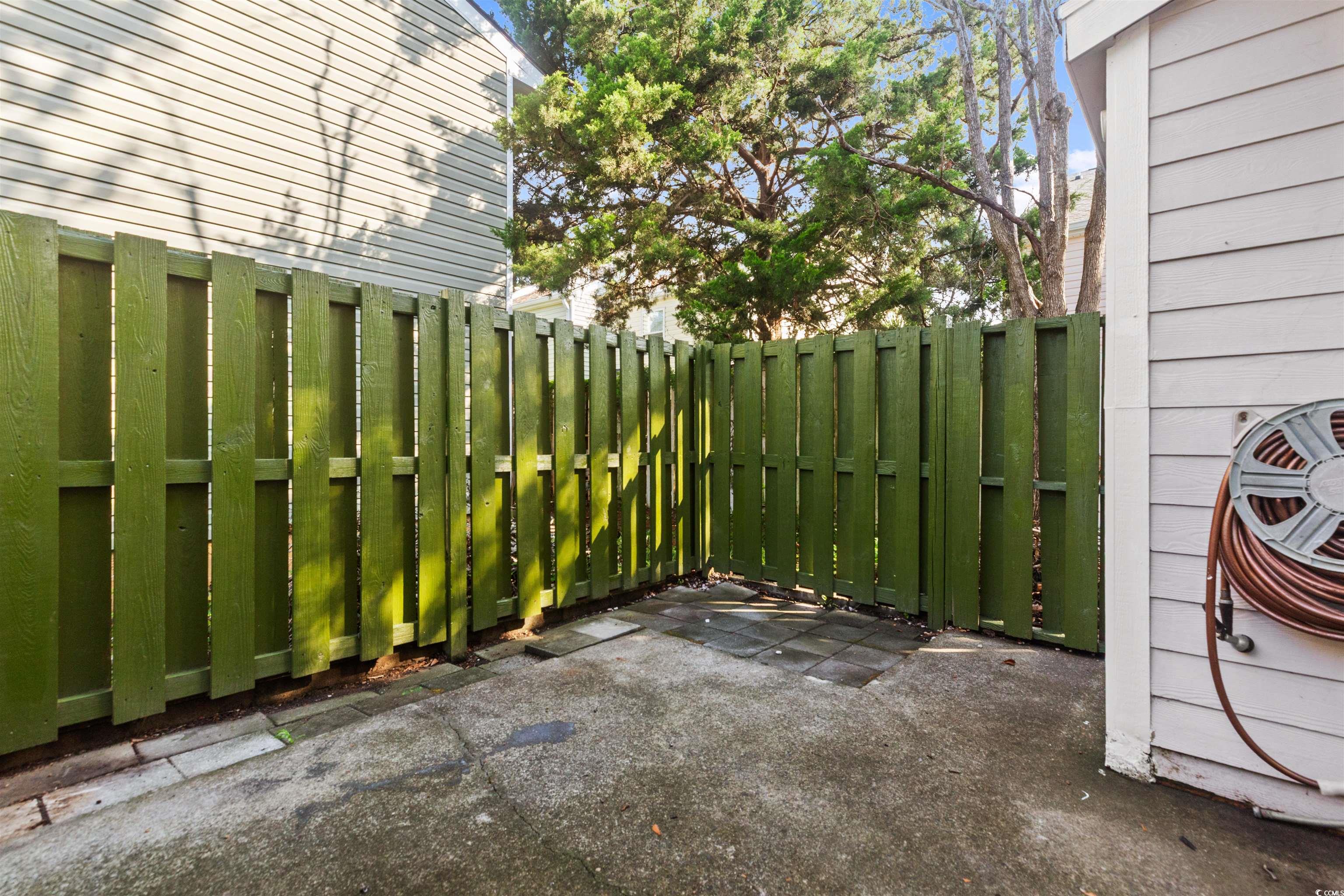 Discover coastal charm and everyday convenience in this beautifully maintained 2-bedroom, 2.5-bath end-unit townhome, located in a small boutique HPR community of just 10 homes in North-Central Myrtle Beach. Tucked away west of 17 Business and only one mile from the beach, this hidden gem offers the perfect blend of privacy, walkability, and low-maintenance living. Inside, you'll find a bright and functional layout featuring a cheerful kitchen with a breakfast bar and pantry, plus a flexible front room that can serve as a dining area, home office, or cozy den. The living room opens directly to your private, fenced courtyard, perfect for relaxing or entertaining outdoors with attached exterior storage for added convenience. Upstairs, both spacious bedrooms are thoughtfully placed alongside the laundry area, with washer and dryer connections located on the second floor for added ease. The primary suite includes a private balcony overlooking your courtyard, creating the perfect spot for morning coffee or quiet evenings. Enjoy a beautifully landscaped central entry corridor, long-term rental potential, and a location that puts you close to hospitals, golf courses, shopping, dining, entertainment, and even the local Post Office. Whether you bike or stroll to the beach, this boutique coastal retreat offers the best of Myrtle Beach living, all in one quiet, convenient location.