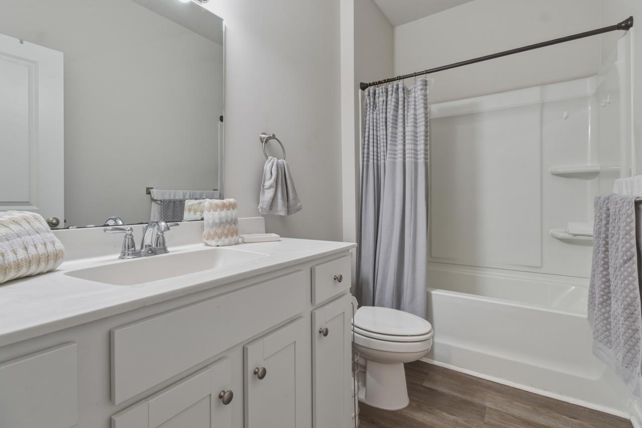 This home offers an array of wonderful features! The thoughtfully designed single-story floor plan includes 3 bedrooms and 2 full bathrooms, perfect for comfortable living. The spacious kitchen is ideal for cooking and entertaining, highlighted by a large island, granite countertops, and stainless steel appliances. The kitchen also provides easy access to the screened-in porch and patio, creating a great space for indoor-outdoor living. Luxury vinyl plank (LVP) flooring flows through the foyer, bathrooms, kitchen, dining area, and living room. The primary bedroom features a 5-foot walk-in shower, double vanity, and a walk-in closet. Additional conveniences include ceiling fan pre-wiring, a smart thermostat, door controls, and a garage door opener. Upgrades include gutters, extended backyard patio and epoxy floor covering in garage. Beach is less then 25 minutes away! Short drive to shops, restaurants and much more! Best of all, the backyard backs directly up to the golf course, offering beautiful views and a peaceful setting.