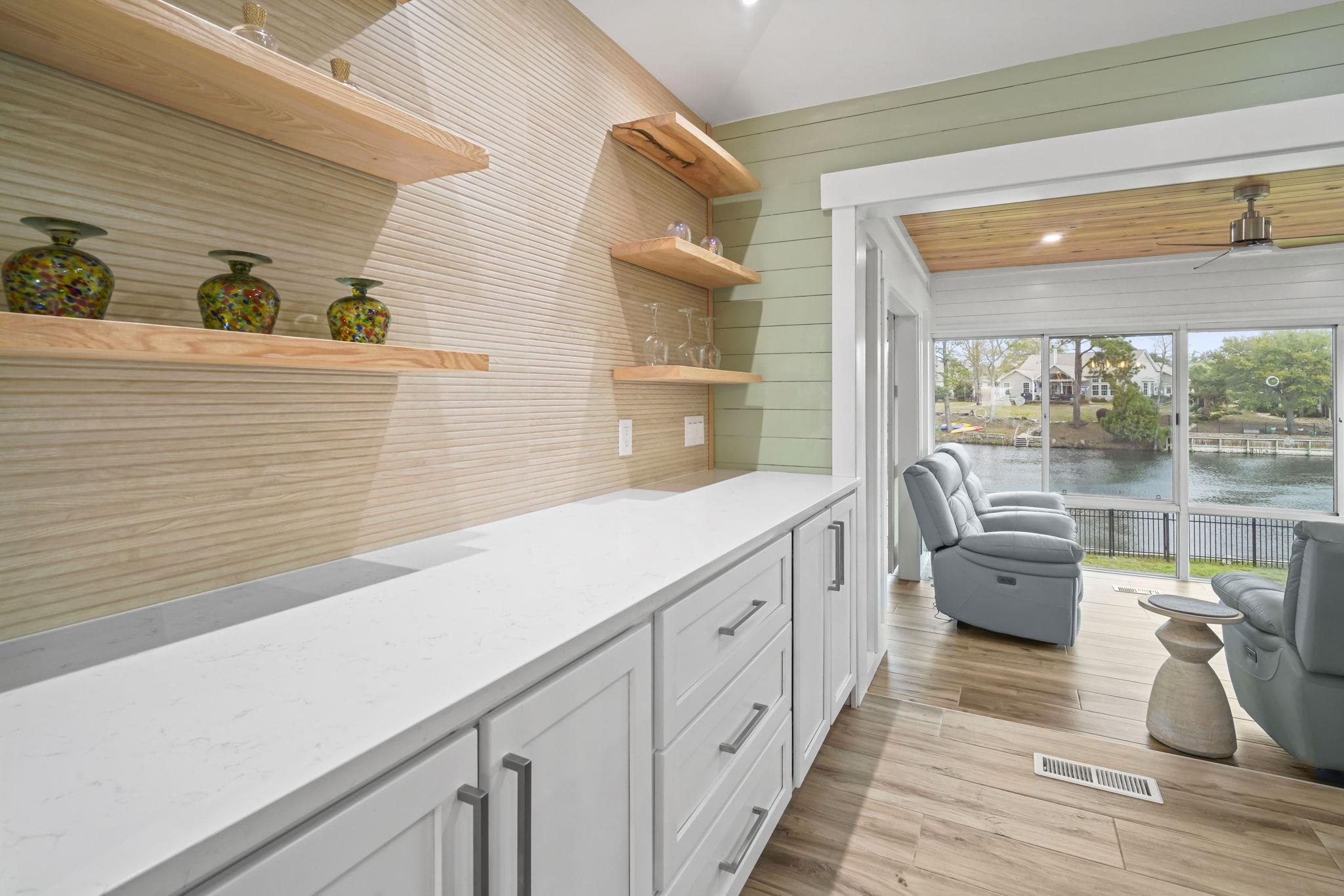 Welcome to this beautiful, updated three bedroom, two bath home, situated on Lake Elizabeth in the desirable Town of Surfside Beach. This single-family home sets on a 1/3 acre lot and is less than a mile to the beautiful beaches of Surfside. As you enter this lovely home, you are greeted with an open-concept living and kitchen area with amazing views of the lake. The kitchen has modern white cabinets, quartz countertops and backsplash, upgraded stainless steel appliances and a large island. Cozy up to the fireplace in the living room that has a cypress wood accent that adds a nice coastal touch. The owners suite is very spacious with a tile walk-in shower, double vanity and a walk-in closet. Enjoy spending your time in the 26 x 12 Carolina Room with panoramic views of Lake Elizabeth. This home has a two car garage, mudroom, a 26 x 12 basement for storage and a full fenced in backyard with plenty of room for entertaining. More upgrades include, a new hurricane grade garage door, reverse osmosis for drinking water, along with a water softener, a whole house water filtration system, solar tubes and an attic fan. This is your opportunity to own a wonderful home that has so many great features. Surfside Beach is a quaint coastal town that is conveniently located close to Huntington Beach and Myrtle Beach State Park, the Murrells Inlet Marsh-Walk, Market Common and all of the best shopping, dining and entertainment in the area. Just a short golf cart ride to the beach, grab your flip flops and beach chair and enjoy what coastal life is all about. Buyer is responsible for verification of square footage and zoning.