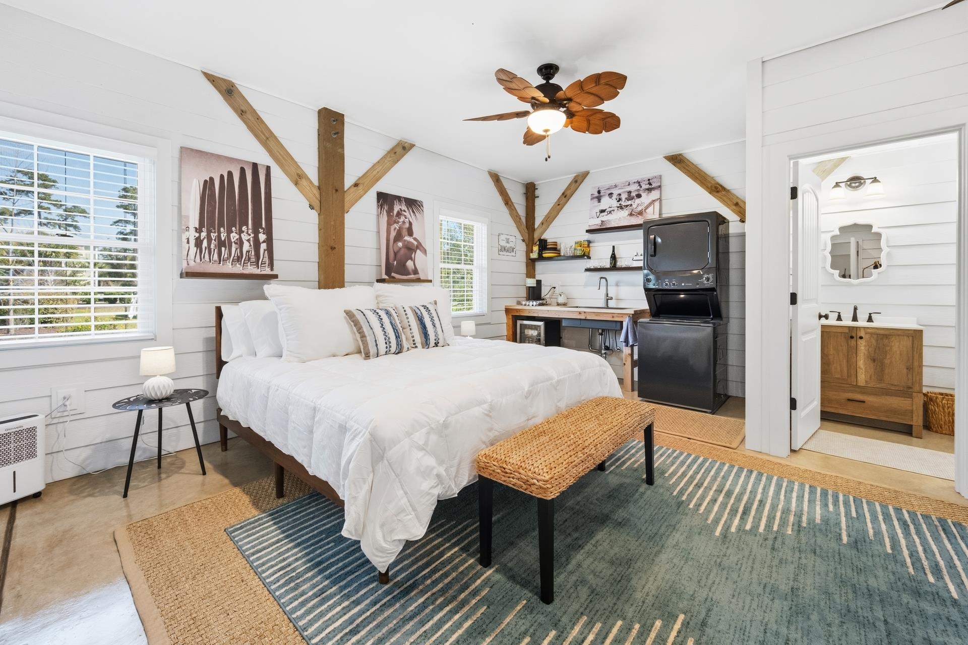 Located in the charming Magnolia Beach West community of Pawleys Island, 72 Weatherboard Court is a beautifully maintained raised beach-style home offering coastal charm, thoughtful updates, and low-maintenance living just minutes from the beaches of Litchfield. Being offered partially furnished, this 3-bedroom, 3-bath home built in 2012 features a versatile layout ideal for a primary residence, second home, or vacation getaway. The current owner has meticulously cared for the property, making extensive recent improvements that truly make it move-in ready. The main living level welcomes you with vaulted ceilings and an open-concept layout connecting the living, dining, and kitchen areas, creating a bright and inviting space for gathering and entertaining. The kitchen has been updated with granite countertops, brand-new stainless steel appliances, and both upper and under-cabinet lighting, adding style and functionality. The primary suite offers a comfortable retreat with two walk-in closets, a double-sink vanity, walk-in shower, and private access to the back deck. A second upstairs bedroom also enjoys its own private bathroom, making it perfect for guests. The home features laminate flooring throughout the main living areas and new carpeting in the upstairs bedrooms, along with fresh interior paint and updated lighting throughout, giving the entire home a clean, modern feel. One of the home’s standout features is the recently added third bedroom suite on the ground level, completed in February. This space includes a full bathroom, kitchenette, closet, and stackable washer and dryer, and is connected to the main living area by interior stairs while also functioning perfectly as a private guest suite or potential rental income as a lockout-style space. Additional recent upgrades include a new HVAC system installed in February, new gutters, Bahama shutters, an outdoor shower for rinsing off after beach days, and privacy panels added to the carport area. The home’s Hardie board siding and metal roof further enhance its durability and ease of maintenance. With its flexible layout, extensive recent updates, and close proximity to the sand, 72 Weatherboard Court offers a true turnkey coastal retreat in one of Pawleys Island’s most convenient locations.