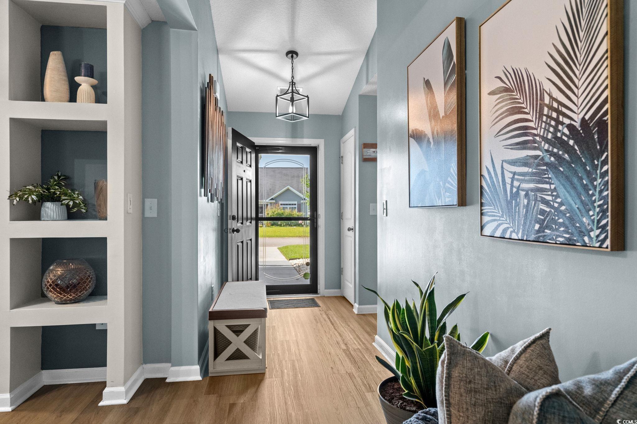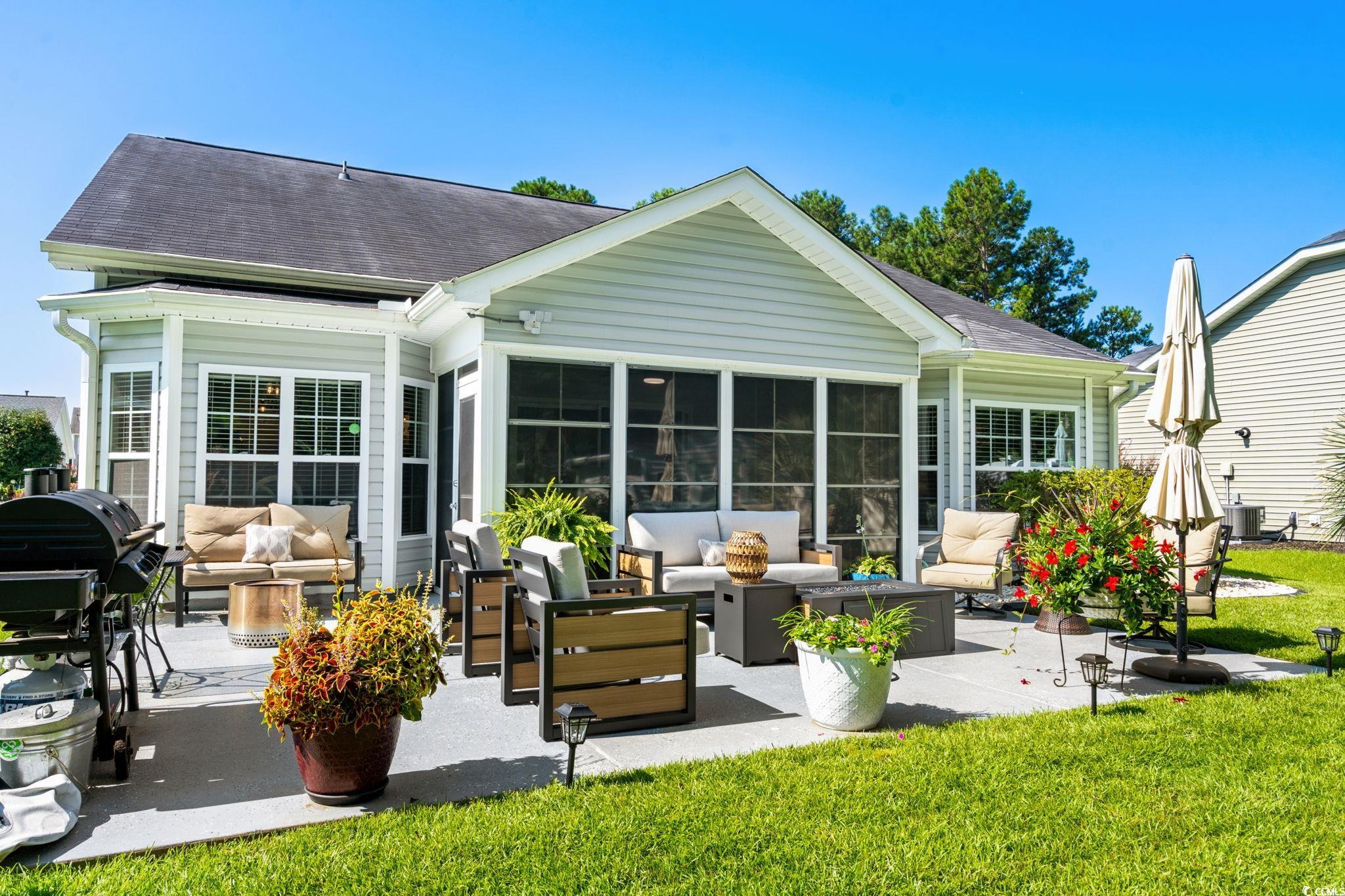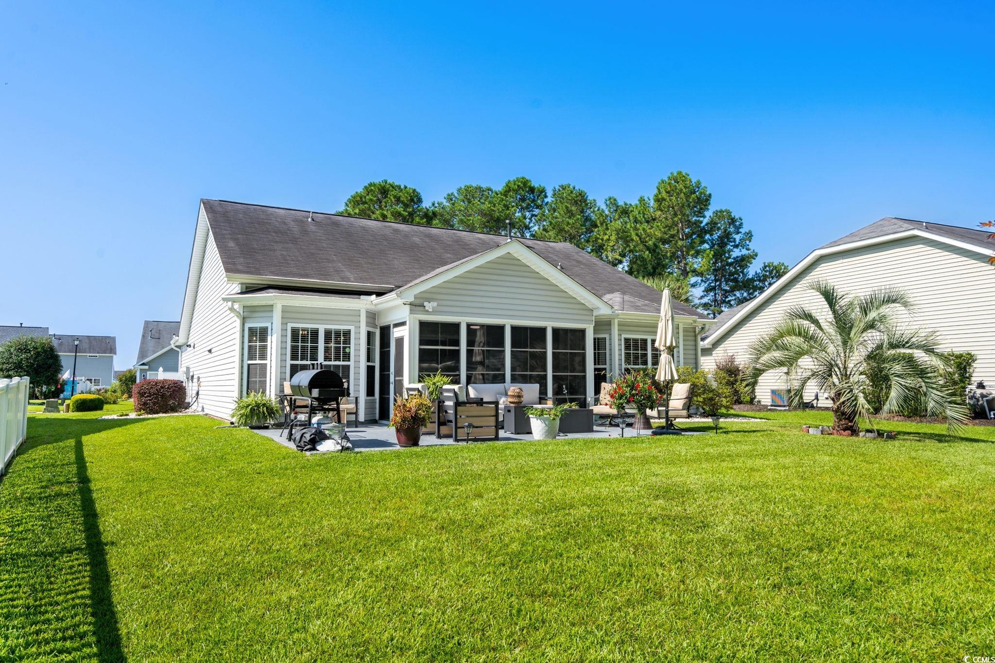 Back on the market at no fault of the seller. Beautifully maintained and thoughtfully upgraded, this home is designed to impress from the moment you arrive. The exterior showcases curb appeal with a manicured lawn, decorative curb scaping, widened driveway, and a garage screen that adds both style and function. Inside, the bright and airy layout features blonde flooring in the main living areas and soaring ceilings. The living room stands out with its custom fireplace wall and built-ins, ceiling fan, and direct access to the spacious Carolina room. The kitchen is a chef’s delight with beautiful cabinetry, granite countertops, a breakfast bar, gas range, stylish backsplash, and a pantry. Whether hosting or relaxing, the flow from the kitchen and living room to the Carolina room makes entertaining easy. With versatile panels, you can enjoy a screened porch in warm weather or close them for comfort during cooler months. This inviting space leads to an extended patio perfect for grilling and outdoor dining, while the backyard offers a private view of mature trees and includes a storage shed for added convenience. The primary suite is a true retreat with an accent wall, sitting area, ceiling fan, and a private en-suite bathroom featuring an upgraded shower with marble surround, transom window, double sinks, and a walk-in closet. Two additional bedrooms are generously sized and share hallway access to the second full bathroom with a tub/shower combination and transom window. The garage is another highlight with pull-down storage, a utility sink, epoxy-coated floor, painted walls, and a screen that transforms the space into a comfortable area for relaxing, working, or entertaining. Other upgrades include a tankless water heater and a new irrigation system. This home combines upgrades, functionality, and timeless style, creating a move-in-ready option that buyers will love. Summerlyn community is located in the highly desirable Carolina Forest area of Myrtle Beach, affording its residents easy access to Robert Grissom Parkway, Highway 17 Bypass, and Highway 31. Residents of Summerlyn enjoy the beautiful community pond view from the amenity center that includes a clubhouse, outdoor pool, kid pool in a fenced area, and a playground. Enjoy the lifestyle this location provides with close proximity to area restaurants, shopping, entertainment, award-winning schools, and the ocean. This community is located across the street from an Horry County public library and recreation center. Carolina Forest Blvd is also bordered by a paved multipurpose path that is miles long for walking or cycling. Rest easy knowing you are only a short drive from medical centers, doctors' offices, pharmacies, banks, post offices, and grocery stores. HOA information has been provided to the best of our ability. All information should be verified and approved by buyer. Square footage is approximate and not guaranteed. Buyer is responsible for verification.