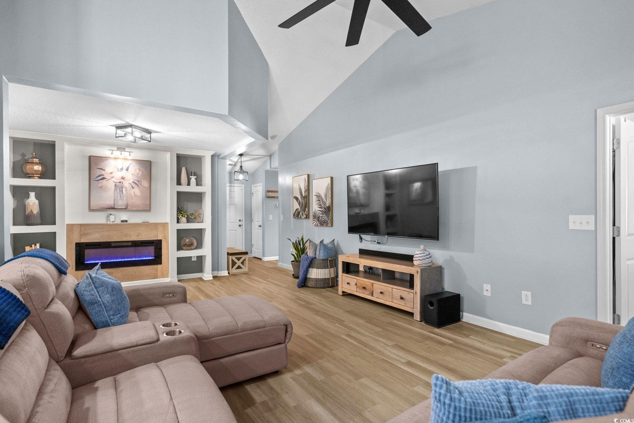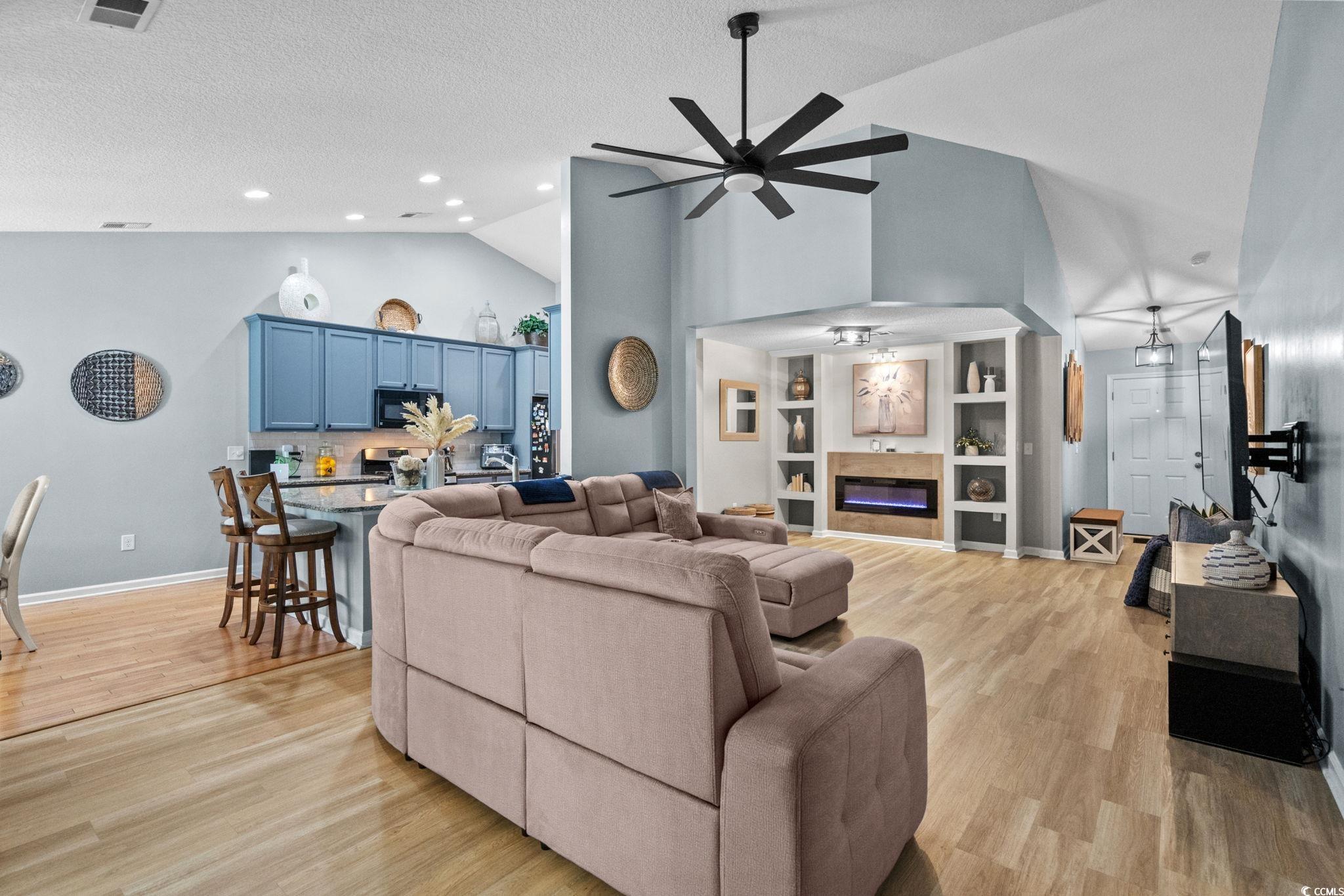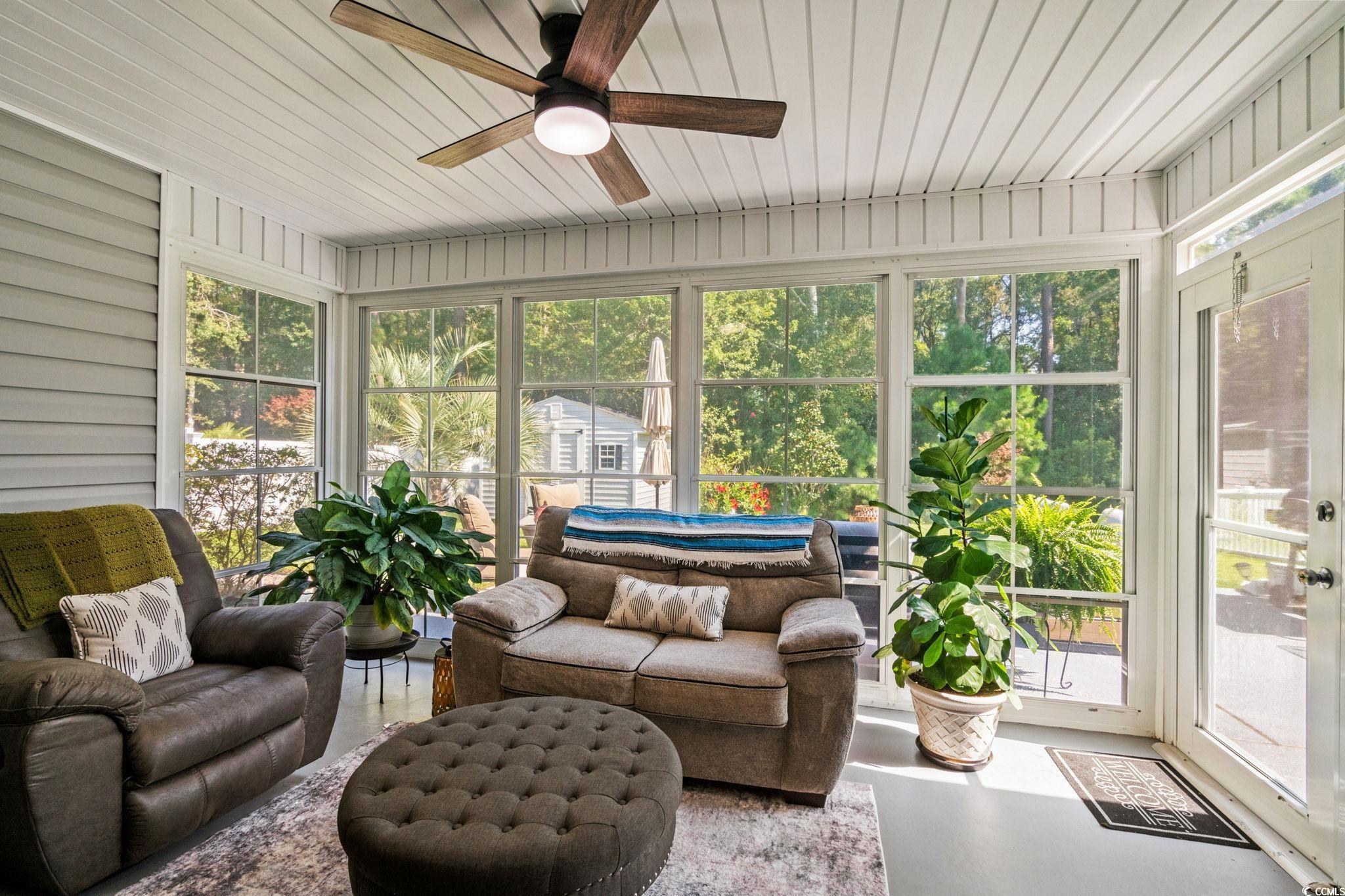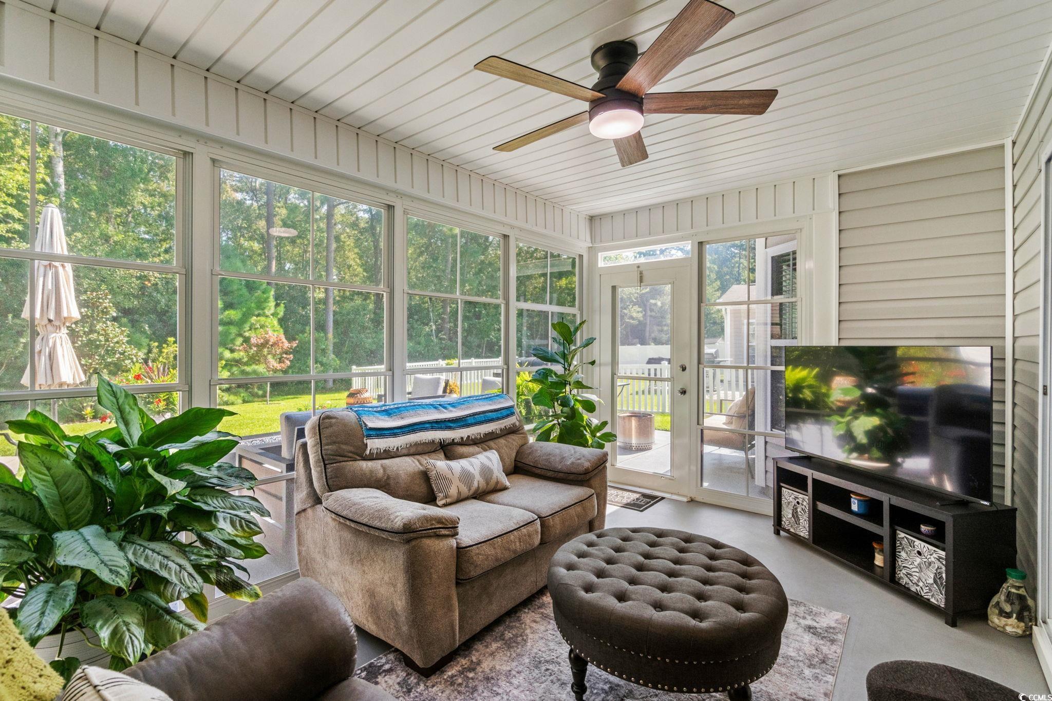 Back on the market at no fault of the seller. Beautifully maintained and thoughtfully upgraded, this home is designed to impress from the moment you arrive. The exterior showcases curb appeal with a manicured lawn, decorative curb scaping, widened driveway, and a garage screen that adds both style and function. Inside, the bright and airy layout features blonde flooring in the main living areas and soaring ceilings. The living room stands out with its custom fireplace wall and built-ins, ceiling fan, and direct access to the spacious Carolina room. The kitchen is a chef’s delight with beautiful cabinetry, granite countertops, a breakfast bar, gas range, stylish backsplash, and a pantry. Whether hosting or relaxing, the flow from the kitchen and living room to the Carolina room makes entertaining easy. With versatile panels, you can enjoy a screened porch in warm weather or close them for comfort during cooler months. This inviting space leads to an extended patio perfect for grilling and outdoor dining, while the backyard offers a private view of mature trees and includes a storage shed for added convenience. The primary suite is a true retreat with an accent wall, sitting area, ceiling fan, and a private en-suite bathroom featuring an upgraded shower with marble surround, transom window, double sinks, and a walk-in closet. Two additional bedrooms are generously sized and share hallway access to the second full bathroom with a tub/shower combination and transom window. The garage is another highlight with pull-down storage, a utility sink, epoxy-coated floor, painted walls, and a screen that transforms the space into a comfortable area for relaxing, working, or entertaining. Other upgrades include a tankless water heater and a new irrigation system. This home combines upgrades, functionality, and timeless style, creating a move-in-ready option that buyers will love. Summerlyn community is located in the highly desirable Carolina Forest area of Myrtle Beach, affording its residents easy access to Robert Grissom Parkway, Highway 17 Bypass, and Highway 31. Residents of Summerlyn enjoy the beautiful community pond view from the amenity center that includes a clubhouse, outdoor pool, kid pool in a fenced area, and a playground. Enjoy the lifestyle this location provides with close proximity to area restaurants, shopping, entertainment, award-winning schools, and the ocean. This community is located across the street from an Horry County public library and recreation center. Carolina Forest Blvd is also bordered by a paved multipurpose path that is miles long for walking or cycling. Rest easy knowing you are only a short drive from medical centers, doctors' offices, pharmacies, banks, post offices, and grocery stores. HOA information has been provided to the best of our ability. All information should be verified and approved by buyer. Square footage is approximate and not guaranteed. Buyer is responsible for verification.