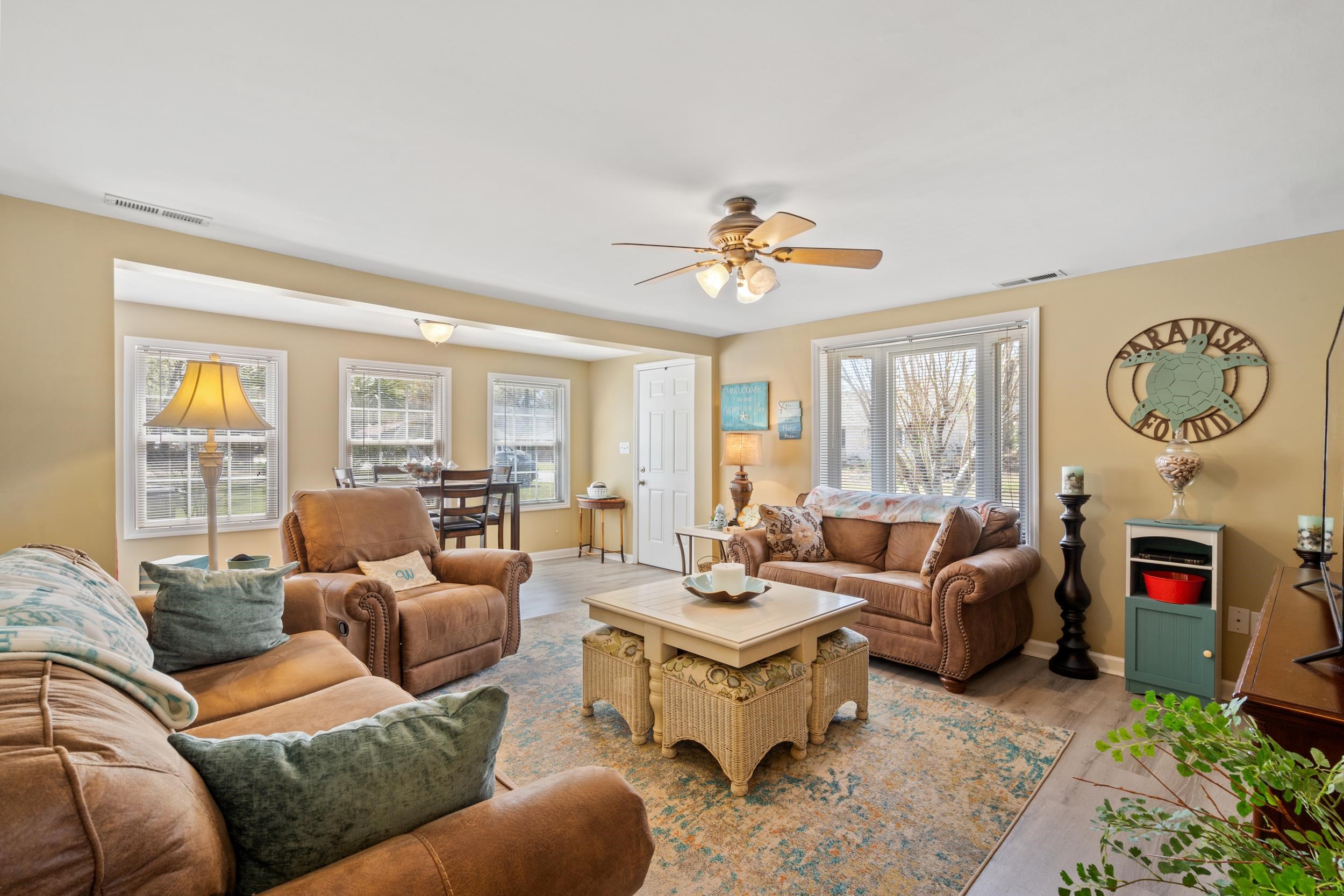 Charming 3-bedroom, 1.5-bath coastal home located east of Hwy 17, just a short golf cart ride to the beach. This beautifully maintained, single-level property offers the perfect blend of comfort, convenience, and beachside appeal—ideal as a primary residence or second home. Thoughtfully updated, the home features remodeled kitchen and living spaces with new cabinets, flooring, and countertops (2020). Major system upgrades provide peace of mind, including a new roof (2022), HVAC system (2023), and washer and dryer (2019). Outdoor living is just as inviting with a welcoming front porch, screened-in back porch, and new Trex decking installed in 2025—perfect for relaxing or entertaining. The large, fenced-in backyard offers plenty of space for gatherings, pets, or play, while the spacious storage building provides ample room for a golf cart, beach gear, and yard tools. The outdoor shower is great for washing the sand off after a day at the beach. Being sold furnished and move-in ready, this home captures true coastal charm in a highly desirable location close to dining, shopping, and the beach. Don’t miss your opportunity to own a slice of the beach lifestyle!