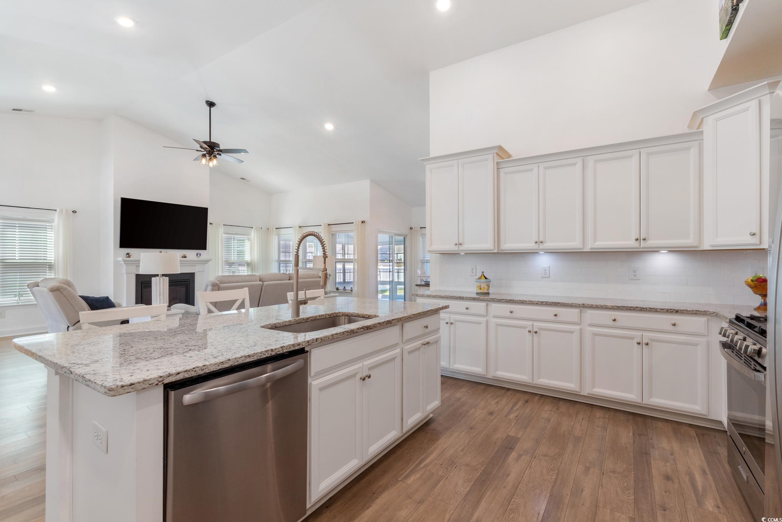 Welcome to this beautifully updated & maintained Smart Home in the highly desirable Forestbrook Estates Community. This 3bd/2bath Muirwood Model is a Natural Gas Home. As you step inside you will be greeted by a Bright & Airy Interior that interfaces with the Dining Room, a Living Room with high vaulted ceilings and cozy fireplace with a Kitchen that is a chef's dream, with an 8' Granite Counter Space perfect for Entertaining and a Breakfast Nook looking out to the Private Backyard area. The Kitchen is equipped with 36" and 42" Staggered Cabinets, Stainless Appliances, and a Huge Pantry. The Main Living Area of this home has Luxury Vinyl Planked Flooring throughout. Walking towards the bedrooms you will see the Laundry Room and 2 Guest Bedrooms with a shared Hall Bathroom. The Large Primary Bedroom includes an ensuite designed with a Double Vanity , a Tiled Walk-in Shower, WC, Linen Closet and a Large Walk-in Closet. The Large Updated Rear Patio has been outfitted with EZ Breeze Windows for year round use. This Spacious Patio promises to be a favorite place to take in the Gorgeous Southern Skies and to enjoy your peaceful and scenic backyard vews. This Muirwood Model has a painted 3-car Garage with an Epoxied Floor and Extra Space for you to use as you like ie: (Workspace, Fitness Area, Golf Cart) and a Pull Down Ladder to extra storage above. The Owner is leaving a generator as well. Forestbrook Estates has 2 Pools, a community garden, playground, and a quick drive to beautiful beaches, top- tier golf destinations, broadway on the beach, great restaurants and entertainement. Here you will meet warm and friendly neighbors making this the perfect place to call home. Schedule your showing today! All window treatments convey except the valance and side panels in Primary Bedroom. The generator convey.