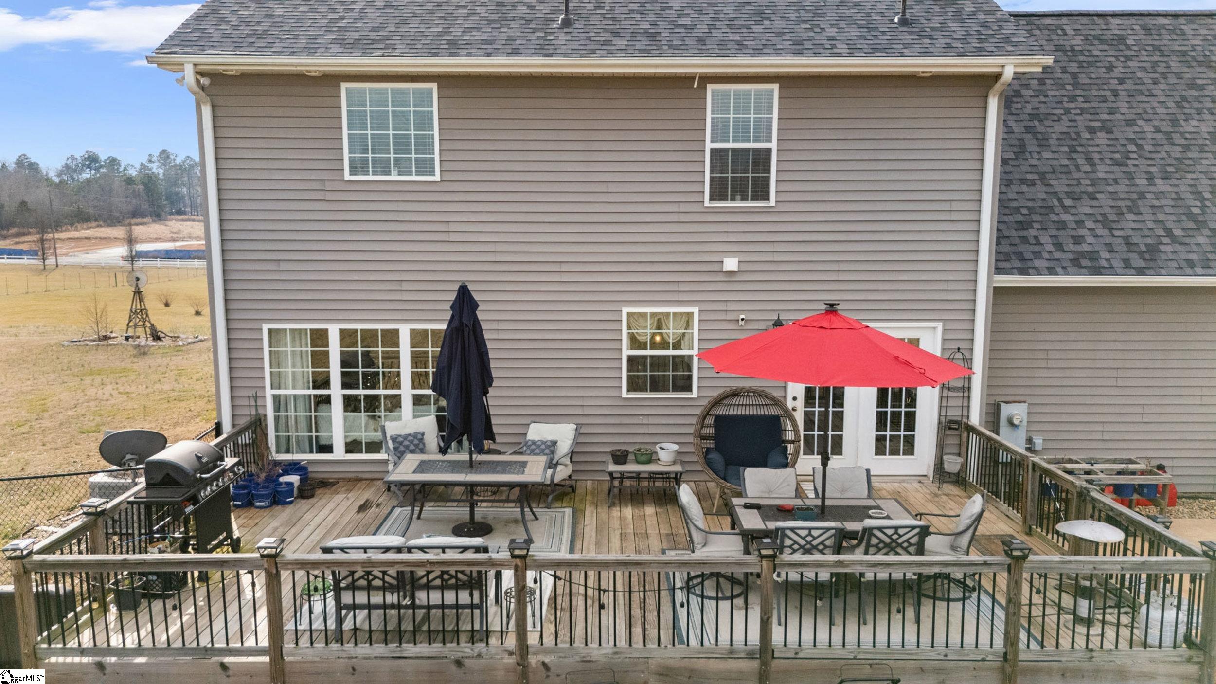 Nestled on nearly 8 acres in Woodruff, South Carolina, this charming Craftsman-style home offers the perfect blend of space, comfort, and functionality — with NO HOA. Located in the desirable Upstate SC area of Spartanburg County, this property provides peaceful country living with convenient access to Greenville and major highways. A welcoming covered front porch with elegant double doors sets the tone as you enter. The main level features a formal dining room, spacious living room with fireplace, half bath, and a well-appointed kitchen complete with stainless steel appliances, center island, and walk-in pantry. Luxury vinyl plank flooring was installed throughout the main floor in 2024, and the roof was replaced the same year. A 16x24 deck addition completed in 2022 enhances indoor-outdoor living and includes a gas line connection for grilling. Upstairs, you’ll find four generously sized bedrooms, including a spacious primary suite with double vanities, soaking tub, walk-in shower, and two walk-in closets. Two full bathrooms serve the upper level, and a versatile flex room offers options for a home office, nursery, playroom, or additional bedroom. The 2-car garage provides ample storage and workspace. Enjoy the expansive acreage, fenced area for pets, and room for gardening, recreation, or future possibilities. Zoned for Woodruff Elementary, Woodruff Middle, and Woodruff High School, and conveniently located near I-26, Hwy 101, and Hwy 221, this home offers easy access to Greenville, Spartanburg, BMW, and GSP Airport. If you’re searching for acreage, NO HOA, updated features, and a convenient Woodruff location — 725 Allendale Rd delivers