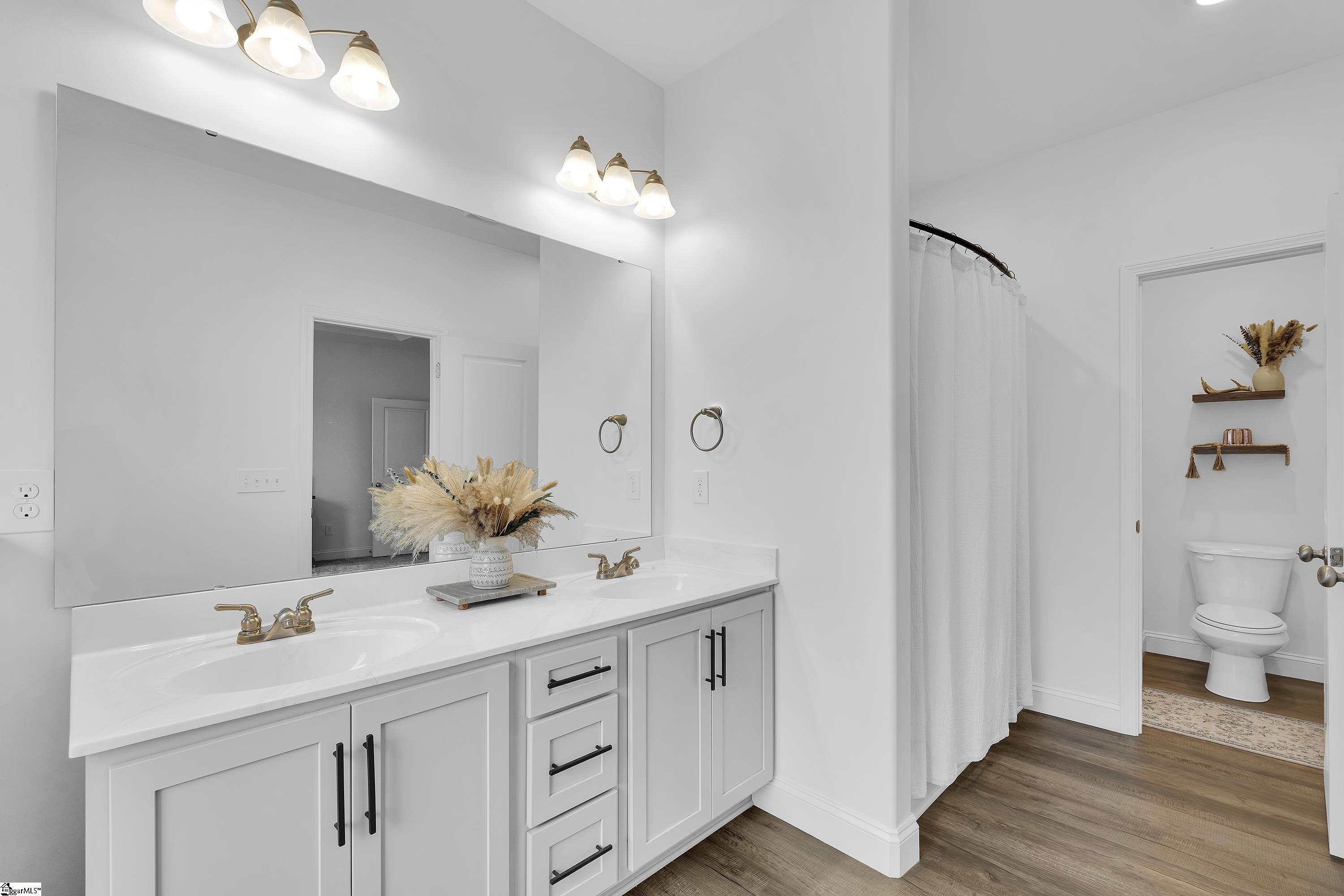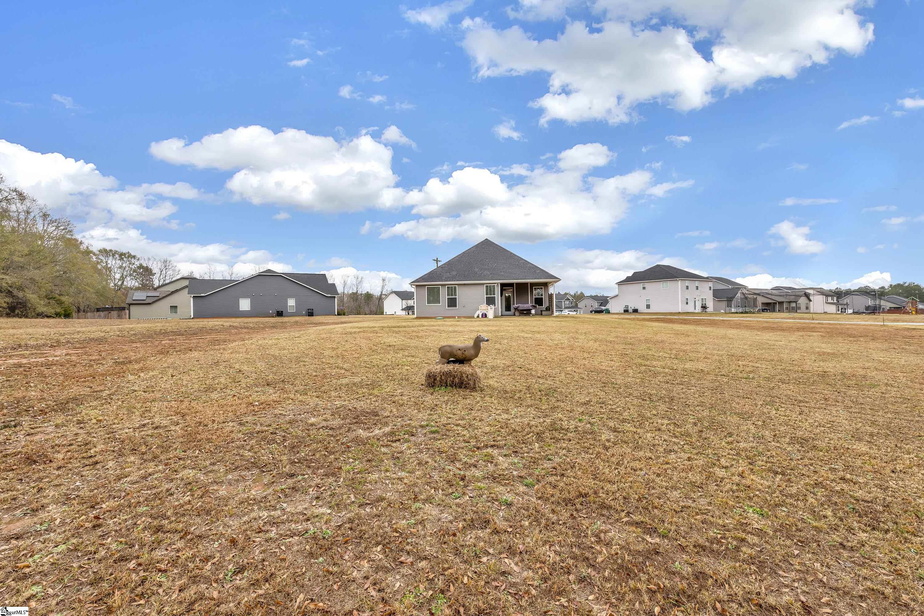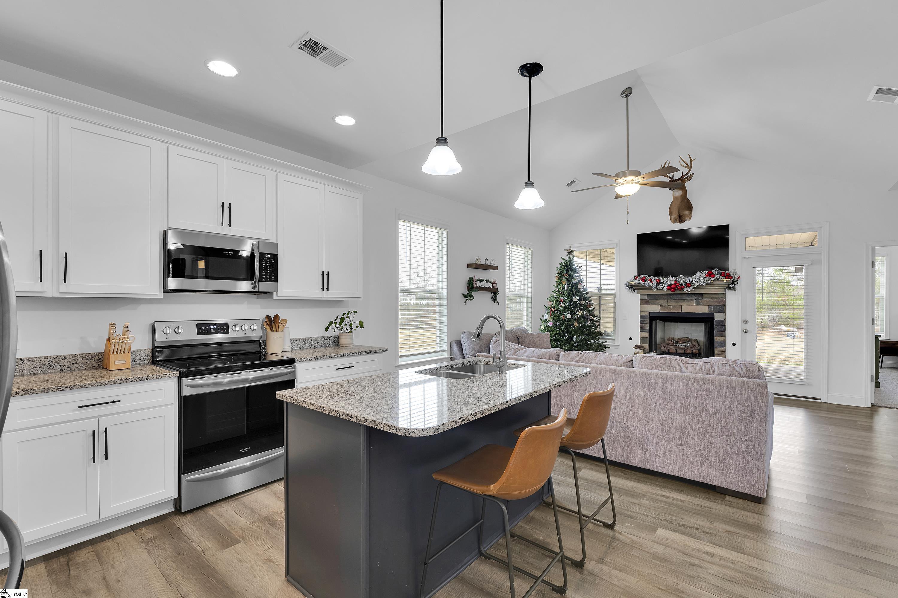 Welcome to Hawk Ridge, a peaceful, small neighborhood in Cowpens. This home is perfectly positioned at the end of a cul-de-sac on a spacious lot, featuring a private backyard retreat. With almost 1,600 sqft of living space this 3-bedroom, 2-bath home features an open-concept kitchen and vaulted living area, plus an additional flex space ideal for a dedicated dining room or home office. Many thoughtful upgrades were added during the build, including two additional living room windows for enhanced natural light, a beautiful, raised stone hearth with ventless propane gas logs, luxury vinyl plank flooring throughout the main living areas, and upgraded kitchen cabinets, pulls, and granite countertops. The entire home was also finished with an upgraded washable paint for durability and a fresh, clean look. The large primary suite includes a trey ceiling, walk in closet and the bathroom boasts a double vanity and soaking tub. A covered back porch and two-car garage with attic pull down access for additional storage round out the home's practical conveniences. Zoned for District 2 schools, the location provides easy access to interstates and Spartanburg while still having the privacy and generous lot size buyers love.