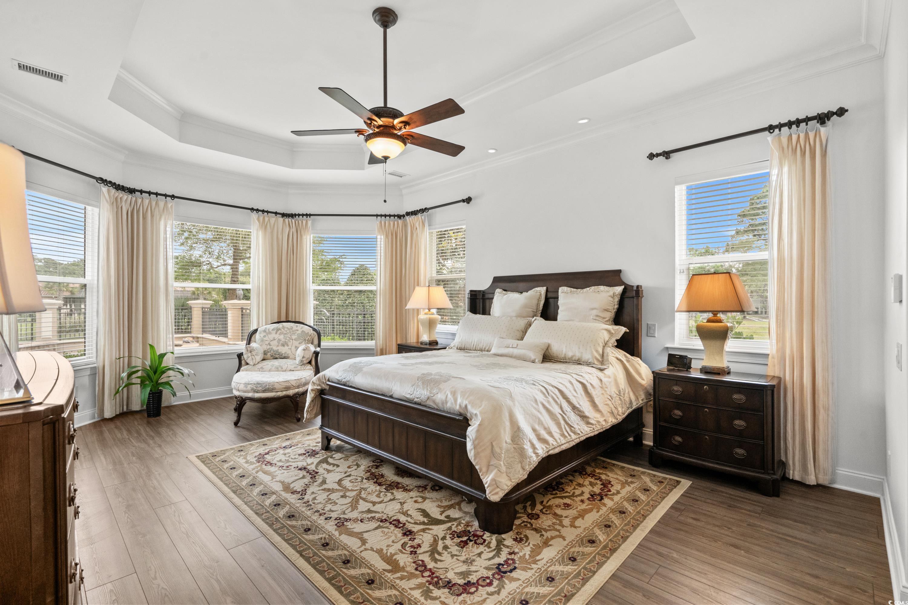 Luxury Mediterranean Home in Seville at Grande Dunes. Very Private backyard positioned on a premium lot in the gated Seville community. Located on the water, with breathtaking waterfront views and fountain, this home provides a serene, island-like ambiance. Very Peaceful Placement of home on the Lot... Freshly Painted Interior Ready for New Buyers!!! This home brings the outside in and welcomes you to a 4-bedroom, 3-bath home with a 3 car garage all on one floor! The garage is temperature controlled and can be a true three car garage with some modification... but has 3 garage doors perfect for a small car, motorcycles,lawn equipment. This Home offers luxurious living with breathtaking lake views from two sides. The home was built "fortified" for exceptional durability and energy efficiency-- helping you save on insurance.... Step through the inviting entry foyer into an elegant formal dining room with a tray ceiling, setting the stage for refined entertaining. The spacious living area, also featuring a tray ceiling, flows seamlessly into the beautifully designed kitchen, complete with a work island, breakfast bar, stainless steel appliances, granite countertops, gas cooktop, and a tile backsplash. Lots of custom cabinetry. A spacious breakfast area or den overlooks the loggia area, with a view. The tri-fold expansion of sliders opens up the wall overlooking the fireplace, TV and pool area. A beautiful master suite boasts a serene sitting area, a gorgeous tray ceiling, his and hers closets, and direct access to the patio and pool area. The spa-like master bath includes separate his-and-hers vanities, a garden tub, and a large walk-in shower. Two additional guest bedrooms, two guest bathrooms, and a versatile office/4th bedroom/flex room provide ample space for family and visitors. A convenient laundry room adds to the home's practicality. Remote blinds on picture window in living room, front door and master bathroom. Outside, a private paradise awaits with a Loggia area and plenty of patio space - the sliders slide back and completely open the home up to the screened in Loggia area. Great for Entertaining and features a fireplace and TV overlooking the patio and pool. The pool is salt water and heated with a beach level and built in benches in the pool for relaxing. A full bath is located off the screened Cabana area for pool use. A fenced yard offers added privacy. Side loading 2 car garage plus a golf cart garage. Built to Certified Gold Standard Fortified construction, this home ensures strength and energy efficiency. As a resident of Grande Dunes, you'll enjoy access to the exclusive 25,000 sq. ft. Ocean Club, which offers fine dining, oceanfront pools with food and beverage service, meeting spaces, and year-round activities. Additionally, the Grande Dunes community boasts two championship 18-hole golf courses, a top-tier tennis facility, and scenic biking and walking trails, making this the ultimate coastal retreat! This Home is truly a Gem come see for yourself. It is Loved and in immaculate condition.