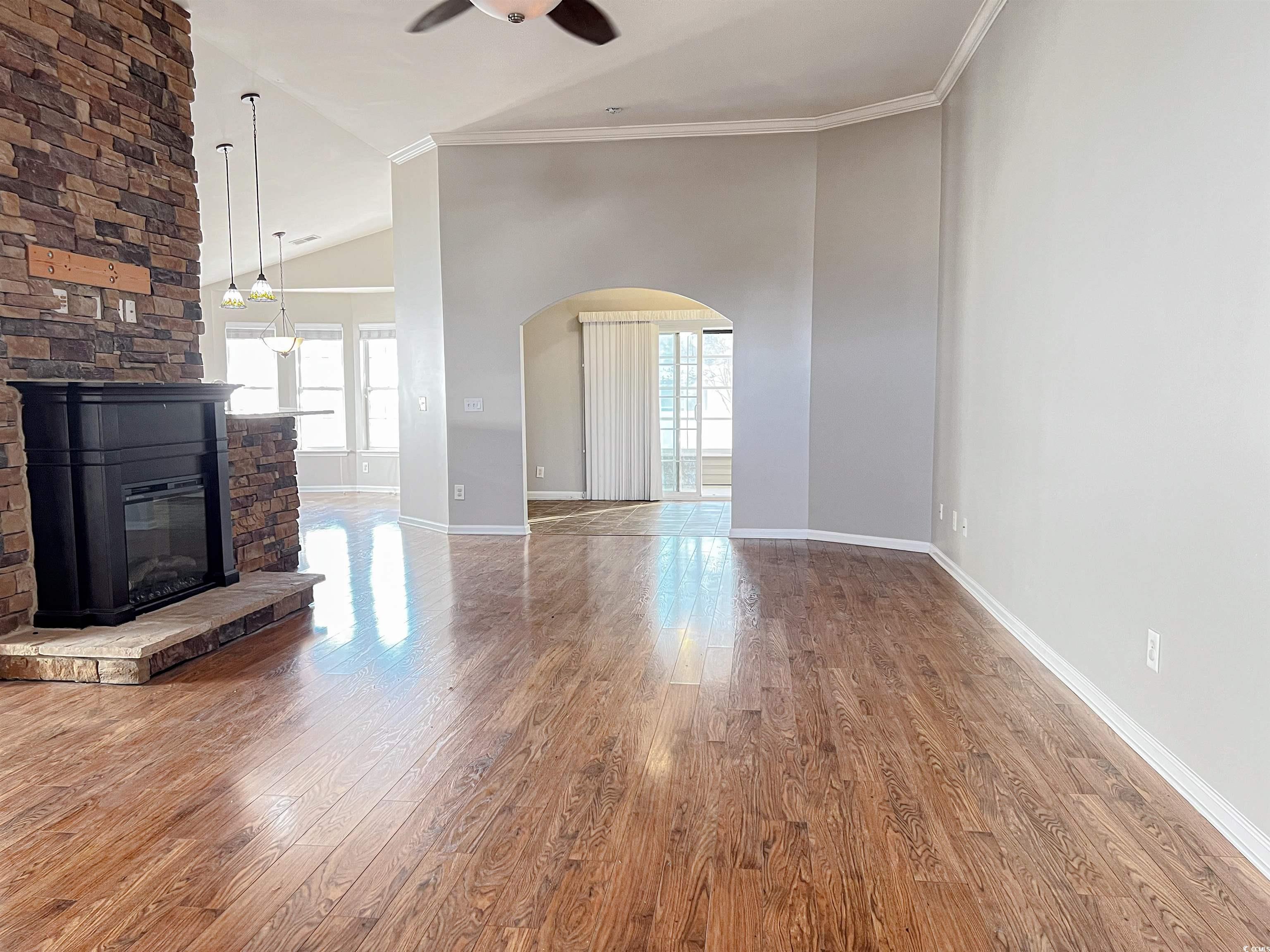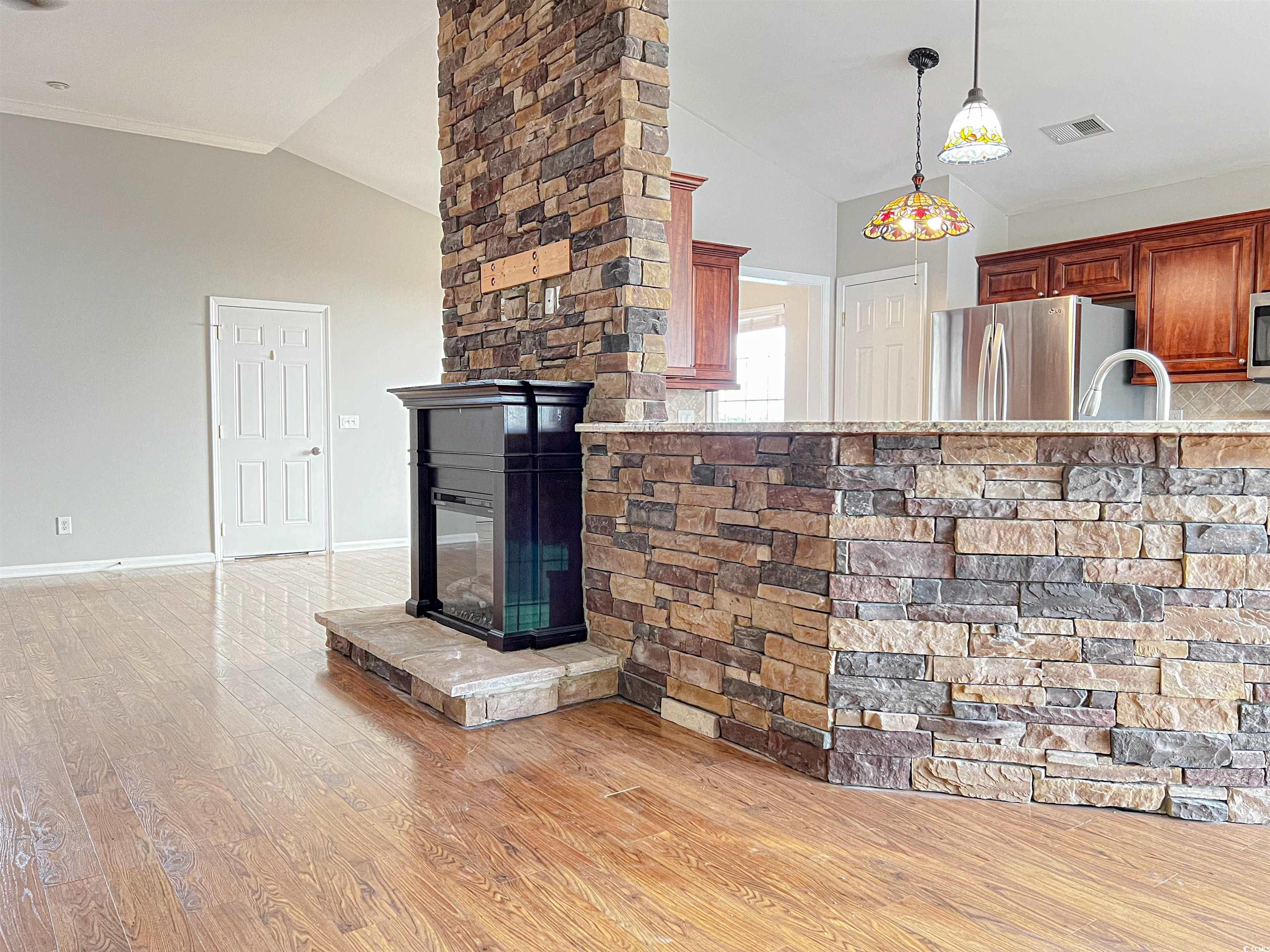 Welcome to the popular Camelot development inside the gated community of Myrtle Beach Golf and Yacht Club. This beautiful 3 bedroom, 2 bath home offers a thoughtful layout with all rooms located on the first floor. Featuring 1,825 heated sq. ft. and 2,400 total sq. ft., this home combines comfort and functionality. Step inside to a spacious living room with a lovely stone fireplace, perfect for cozy evenings. The kitchen is well-appointed with stainless steel appliances, solid surface countertops, and abundant cupboard space, easily serving both the dining area and the breakfast nook. A flex space and a bright sun porch provide extra versatility for work, hobbies, or relaxation. The primary bedroom is thoughtfully positioned on the back side of the home, offering privacy away from the two additional bedrooms located in the front. A 2-car attached garage adds convenience and storage. Enjoy the security and amenities of this gated community while living just minutes from all Myrtle Beach and the entire Grand Strand has to offer.
