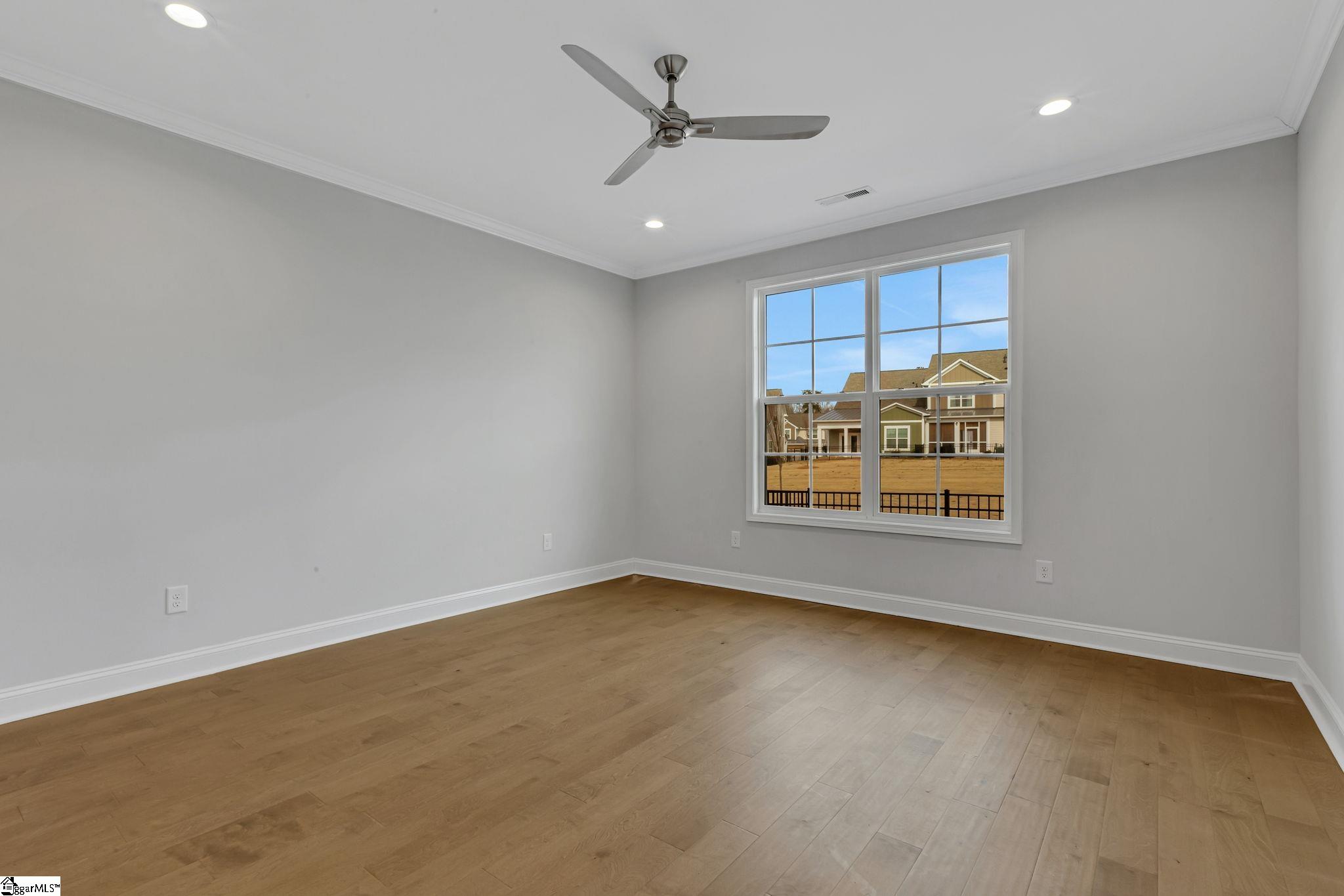 Welcome to Hamilton Townes, part of the sought-after 1,100-acre Verdae master-planned community. This 3-bedroom, 2.5-bath townhome move-in ready January 2026 offers over 2,200 sq. ft. of thoughtfully designed living space with a main-level primary suite, loft/flex room, home office, walk-out attic, and two-car garage. The open-concept main level showcases 5" birch hardwoods throughout, extending into the primary suite and closet. The gourmet kitchen features quartz countertops, a large island, stainless steel appliances with a gas range, and soft-close cabinetry. This open floor plan allows all main-level spaces to flow seamlessly from the kitchen to the dining and living areas. The kitchen transitions into the dining and living rooms, where the home is framed to include custom built-in bookshelves and wiring for a future fireplace. A trio of glass doors, with the center operable, extends the living space to the covered porch and fenced backyard maintained by the hoa. The main-level primary suite is a true retreat, with an ensuite offering dual vanities, a private water closet, and an upgraded walk-in tile shower with a frameless glass door. Upstairs, two additional bedrooms with walk-in closets share a full bath with double sinks. Versatility shines on this level with a spacious 21x13 bonus room, large enough for a media room, second living area, or combination space with room for both a home office and game area. A separate 7x13 office provides additional dedicated work-from-home space, while a walk-out attic offers valuable storage. Enjoy outdoor living with a covered porch and fenced backyard, maintained by the HOA for true low-maintenance living. Life at Hamilton Townes includes direct access to the Swamp Rabbit Trail via Verdae Blvd, convenient proximity to medical offices, hospitals, and GSP Airport, plus quick access to I-85, I-385, and Woodruff Road shopping and dining all less than 10 minutes from Downtown Greenville. Schedule your private showing today and ask about the below-market interest rates available on this property!