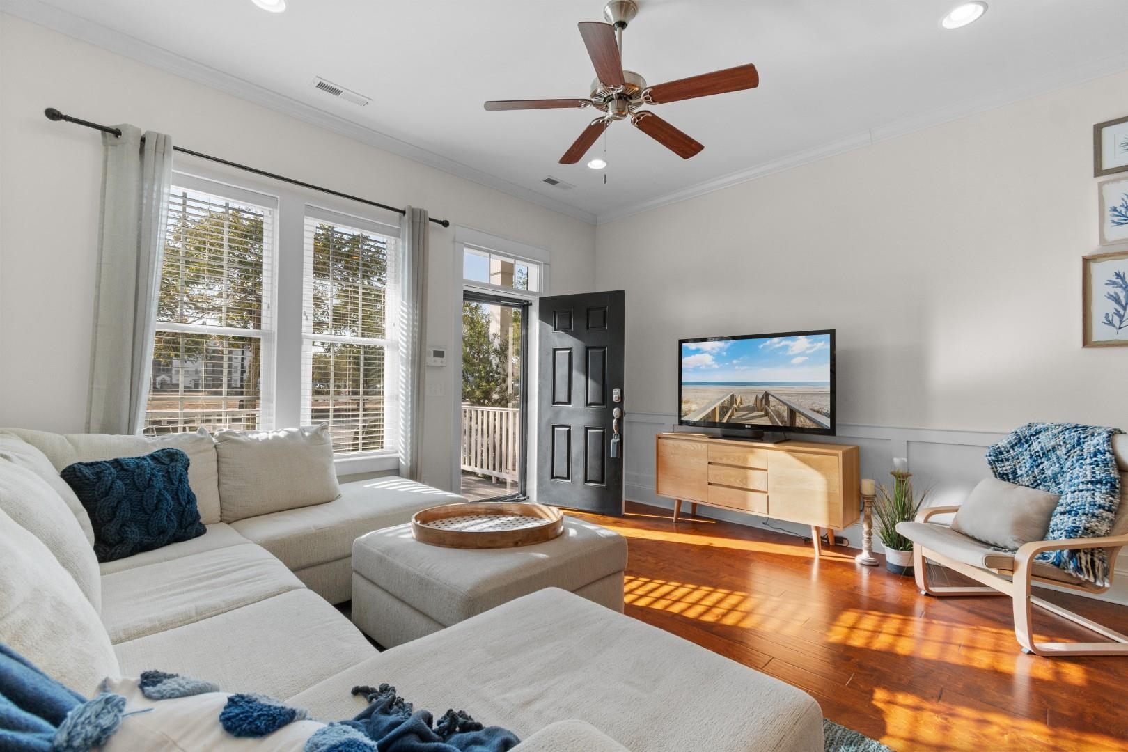 Welcome to easy, walkable living in the heart of The Market Common where your favorite shops, restaurants, and year-round events are just steps from your front door. This beautifully maintained 2-bedroom, 2.5-bath townhome feels inviting from the moment you enter, with rich wood flooring and elegant crown and decorative molding that add warmth and character throughout the main living areas. The kitchen truly anchors the home and was designed with both everyday living and entertaining in mind. Granite countertops, a tile backsplash, stainless steel appliances, and a breakfast bar create a space where conversations linger. Upstairs, both bedrooms offer their own sense of privacy. The spacious primary suite features a ceiling fan, an oversized walk-in closet, and a well-appointed bathroom with dual sinks, a tiled walk-in shower, and a linen closet. The second bedroom includes its own full bath, making it ideal for guests, family, or a quiet personal retreat. Laundry is conveniently located upstairs as well. An attached oversized one-car garage provides secure parking with easy access to additional parking on both sides of the home. Step outside and enjoy a lifestyle that truly sets this location apart---walk to dining, shopping, parks, movie theaters, and community events, or take a short drive to Myrtle Beach State Park, the ocean, golf courses, and Coastal Grand Mall. The largest dog park in South Carolina is just a two-minute walk away. Whether you're looking for a full-time residence, a beach getaway, or a smart investment, this townhome delivers the lifestyle The Market Common is known for. Come see it in person---you'll feel right at home!
