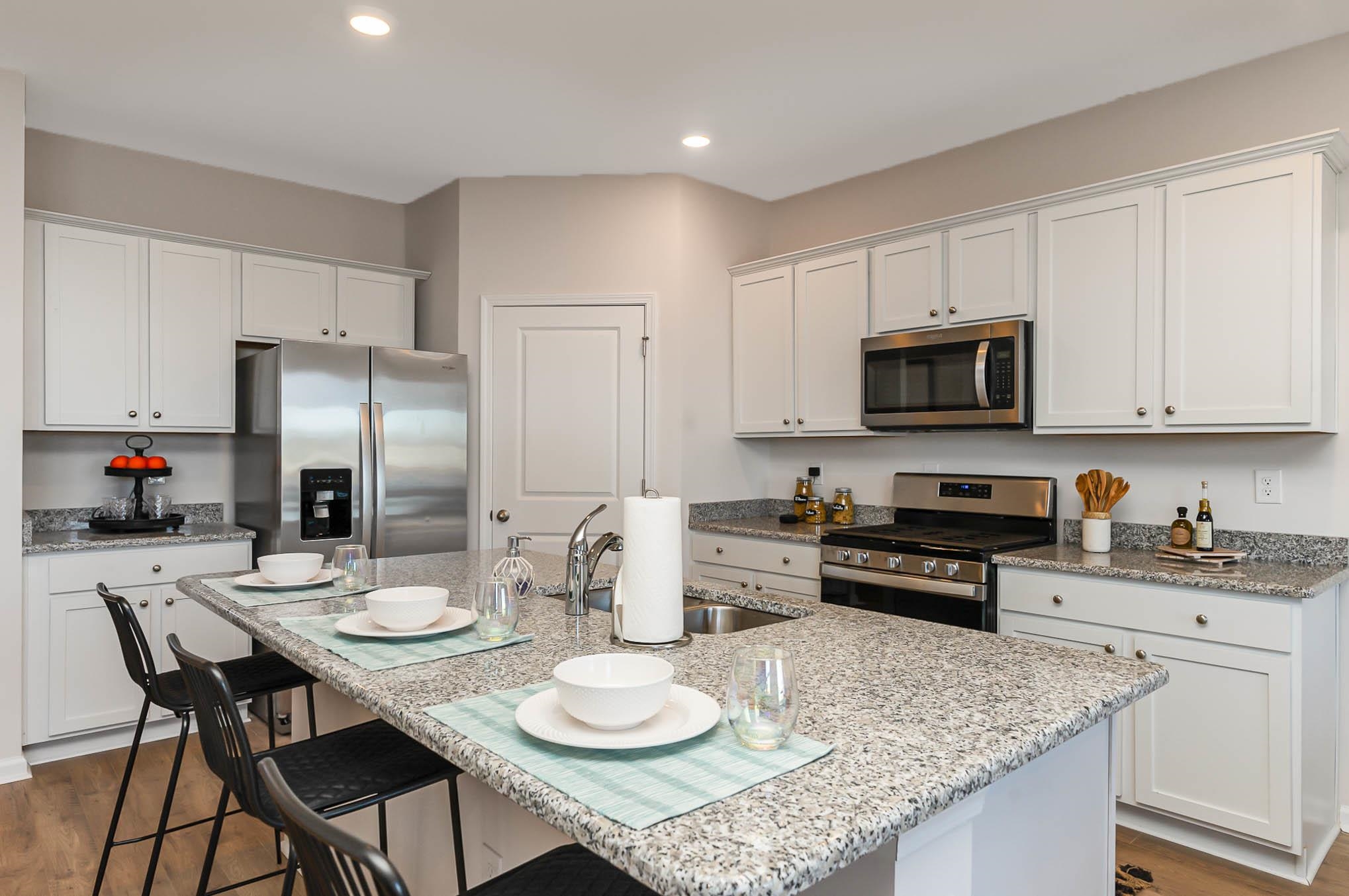 *5 bedroom, 3.5 bath *9 ft ceilings primary floor *Open layout kitchen, dining room and living room *Flex room that could be used as a den, study or formal dining room *Upstairs living area/loft *First floor primary suite with walk in closet, separate linen closet, double vanity, and 5' shower *Kitchen features granite countertops, a tiled backsplash, a large island, stainless steel appliances including a refrigerator, and a large corner walk in pantry *4 secondary bedrooms and 2 full bathrooms on second level. *Covered back porch *Home is Connected *Quicktie Framing System *Deako Lighting Switches *Builder Warranty *This is America's Smart Home! Each of our homes comes with an industry leading smart home technology package that will allow you to control the thermostat, front door light and lock, and video doorbell from your smartphone. *Photos are of a similar Elle home. Pictures, photographs, colors, features, and sizes are for illustration purposes only and will vary from the homes as built. Home and community information, including pricing, included features, terms, availability and amenities, are subject to change and prior sale at any time without notice or obligation. Square footage dimensions are approximate. Equal housing opportunity builder.